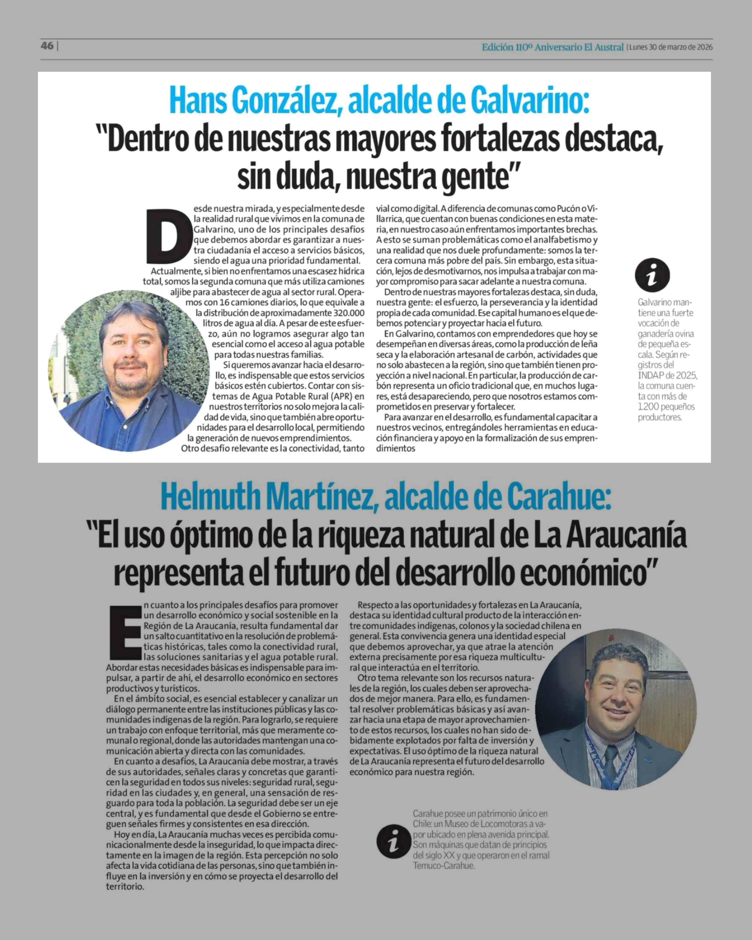 Título: Columnas de Opinión: Hans González, alcalde de Galvarino: "Dentro de nuestras mayores fortalezas destaca, sin duda, nuestra gente"