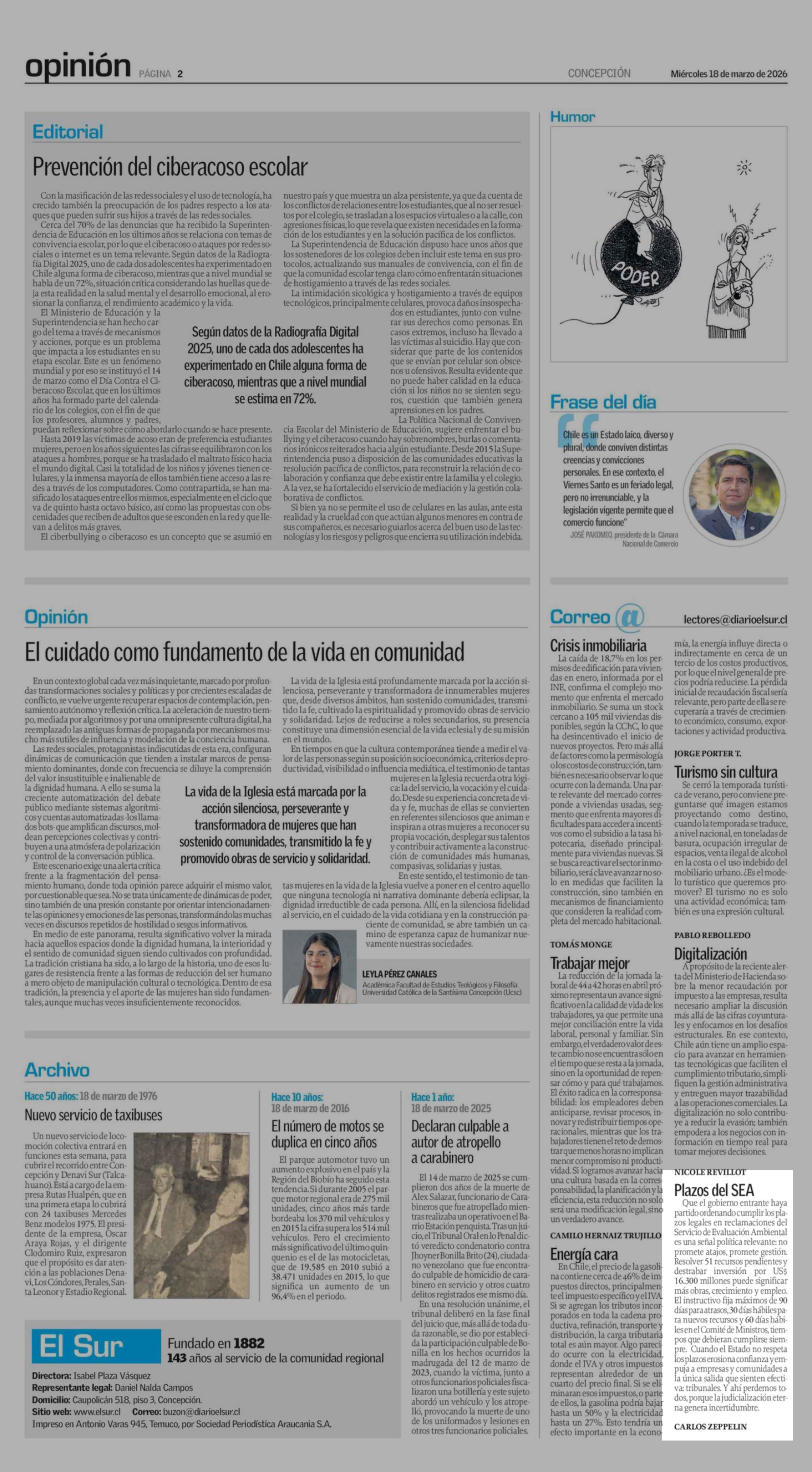 Cartas: Plazos del SEA 18-03-2026 El Sur |