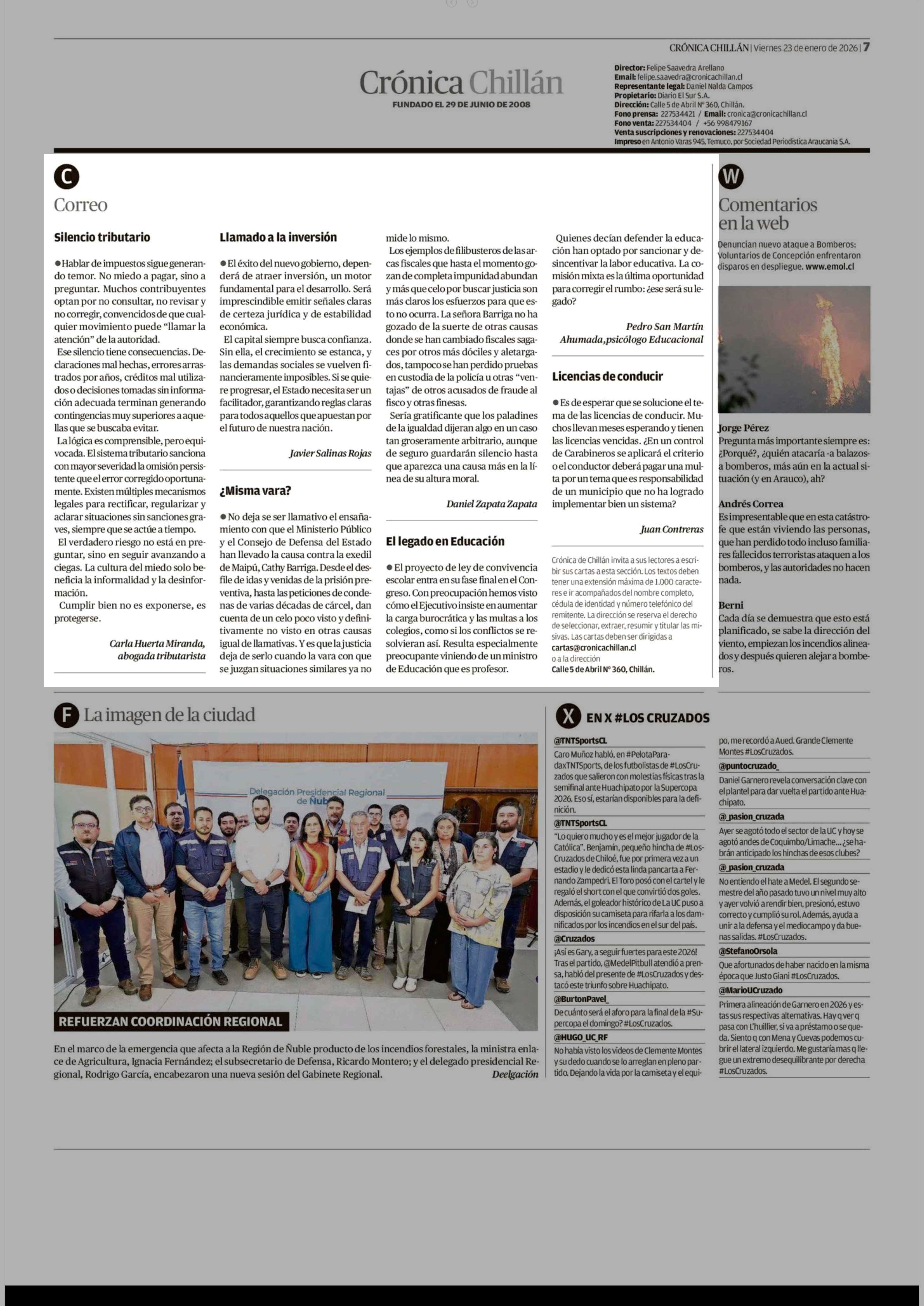 Silencio tributario 23-01-2026 Crónica de Chillán |