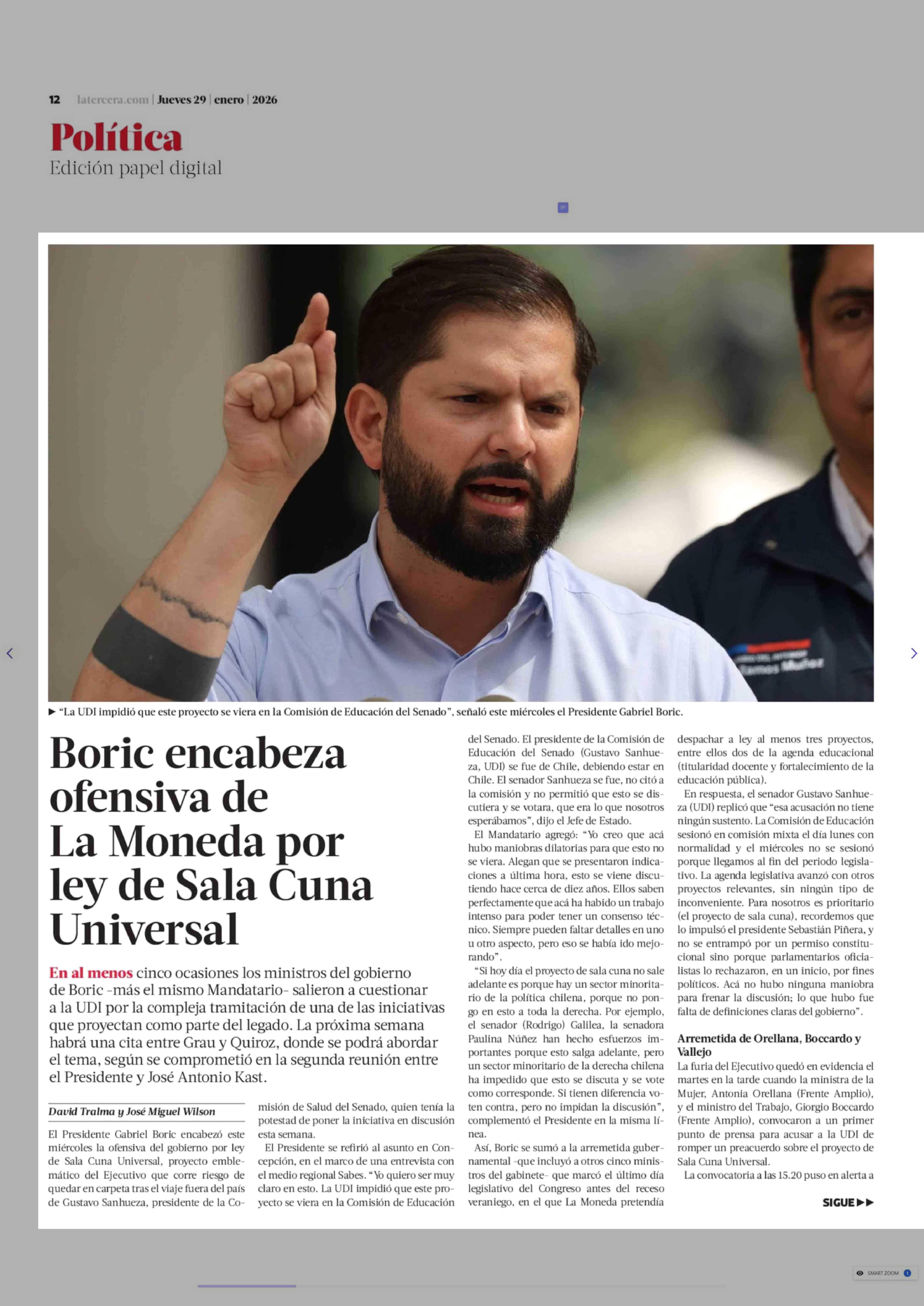 Título: Boric encabeza ofensiva de La Moneda por ley de Sala Cuna Universal