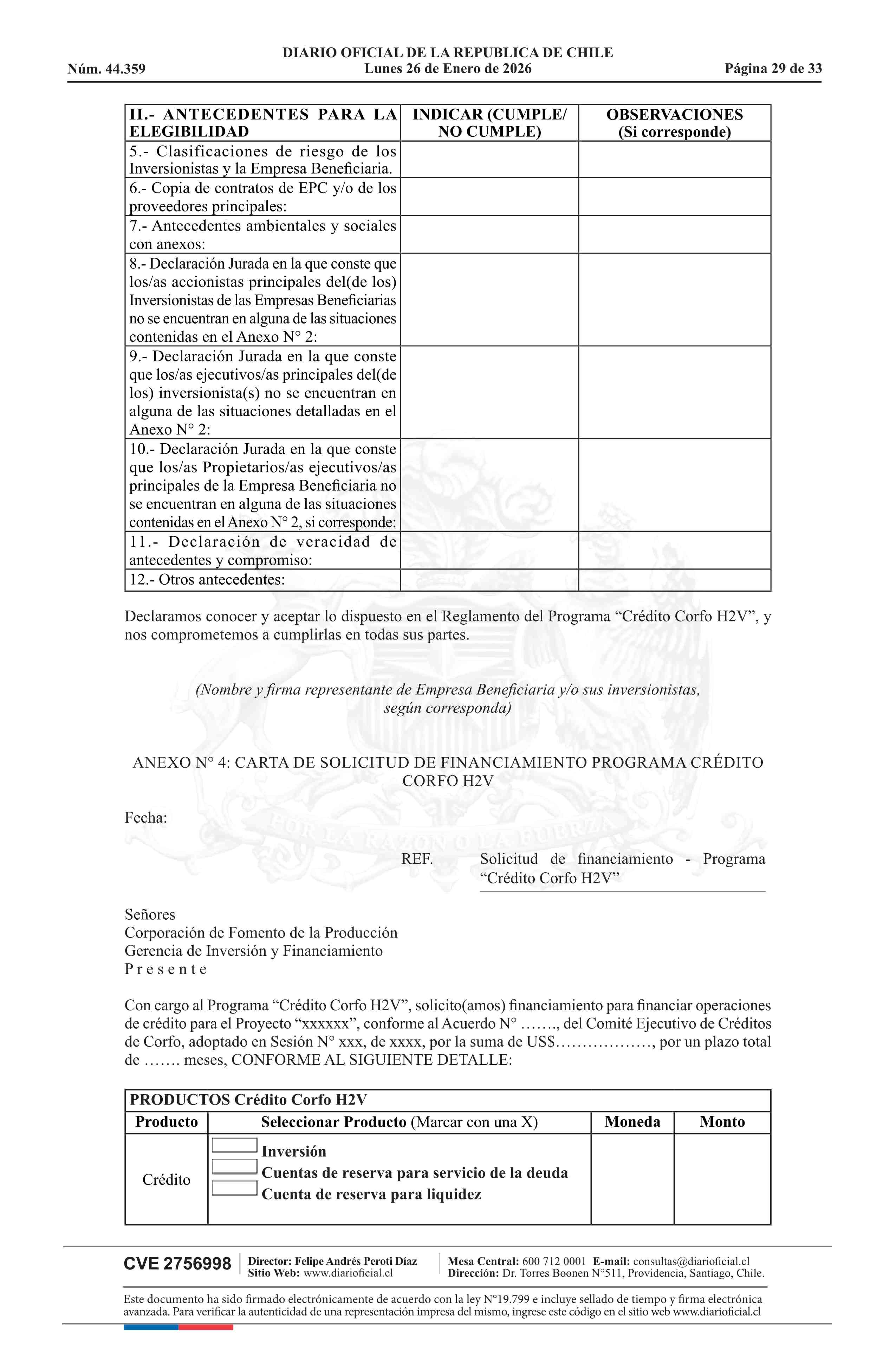 | Título: | Resolución número 71, de 2025.- Ejecuta Acuerdo N° 29.467, del Comité Ejecutivo de Créditos de Corfo, adoptado en Sesión N° 10-2025, que aprueba la creación del programa denominado Programa Crédito Corfo H2V y aprueba reglamento de dicho programa |