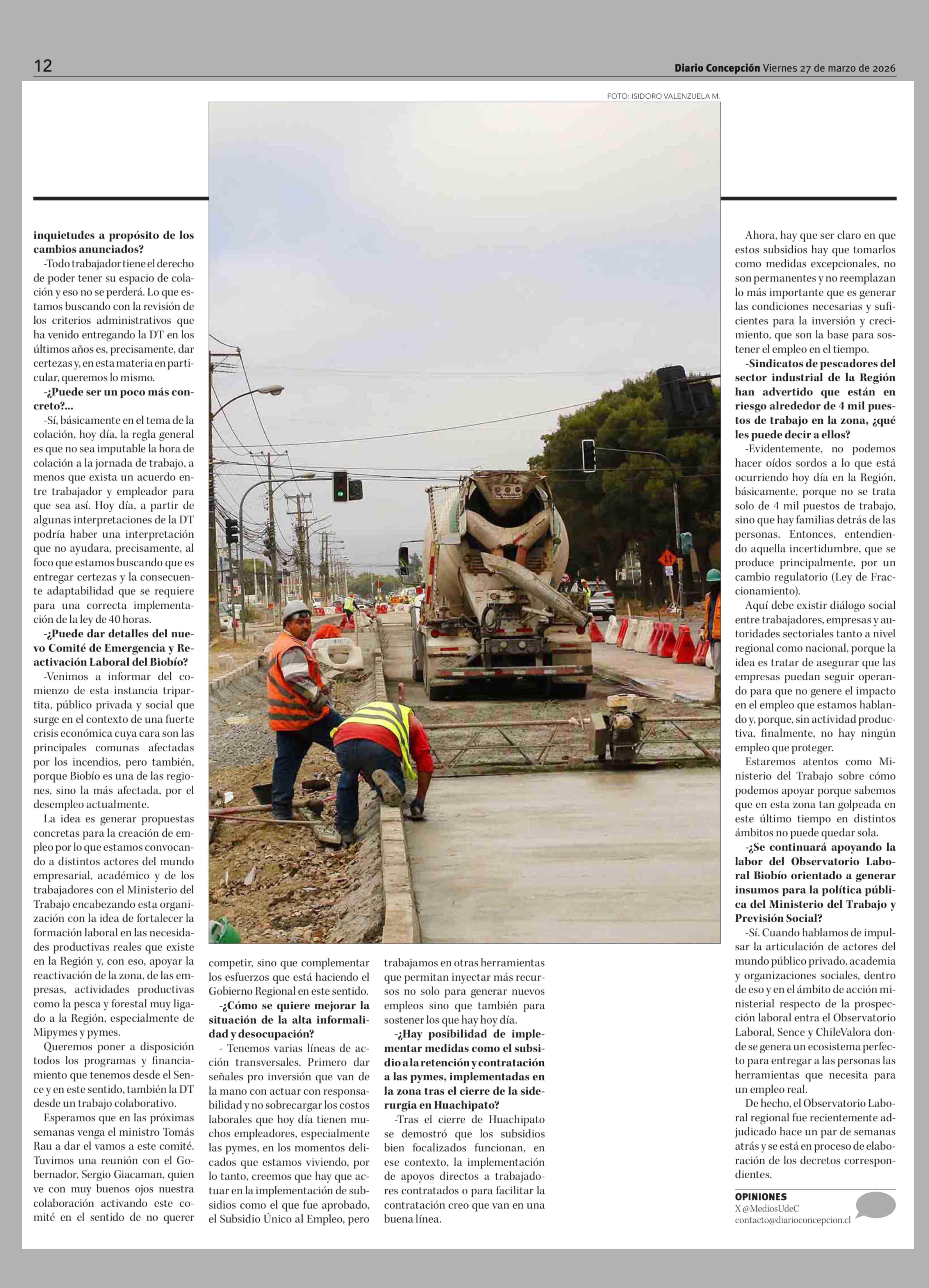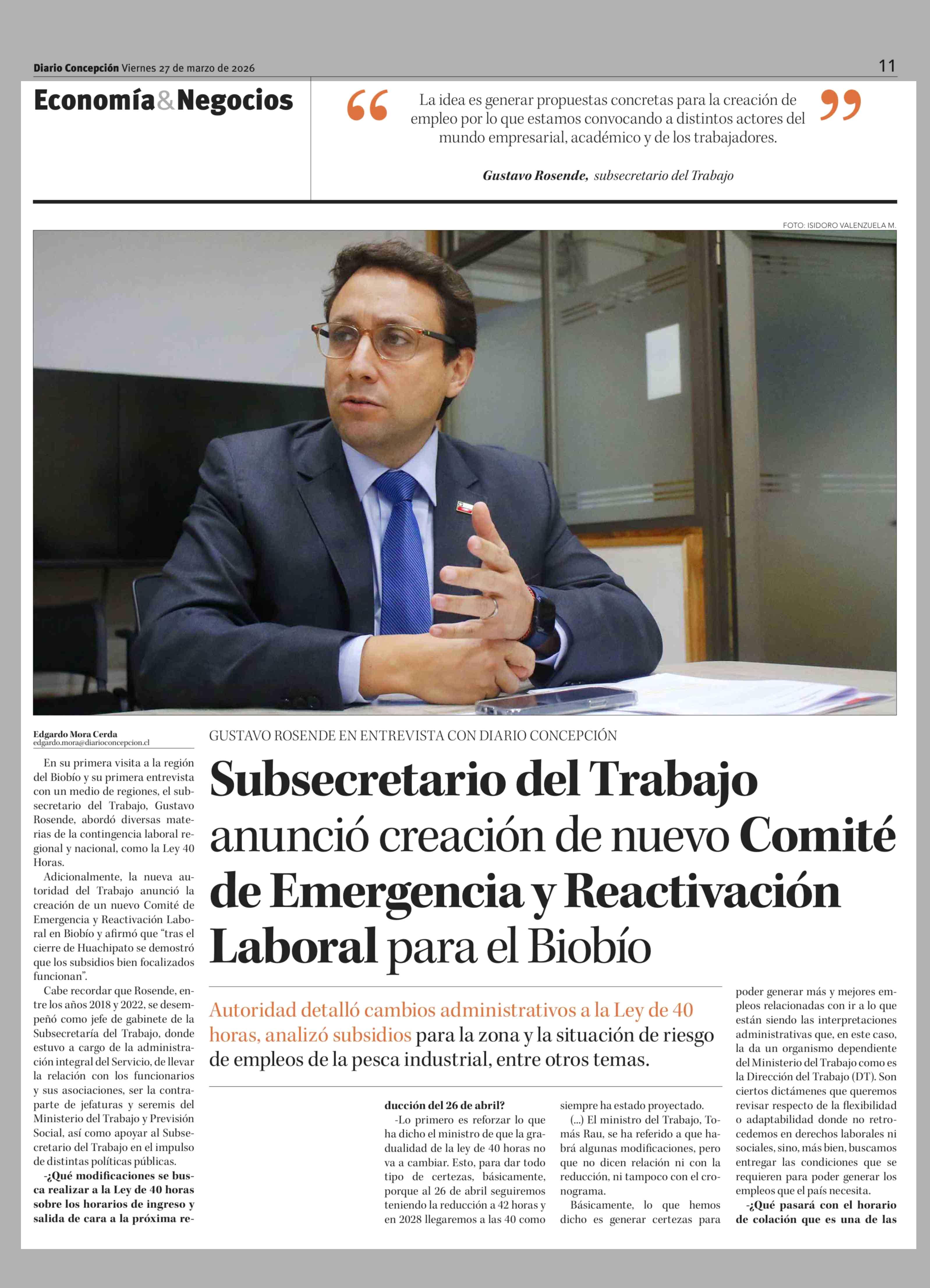 Subsecretario del Trabajo anunció creación de nuevo Comité de Emergencia y Reactivación Laboral para el Biobío 27-03-2026 Diario Concepción |