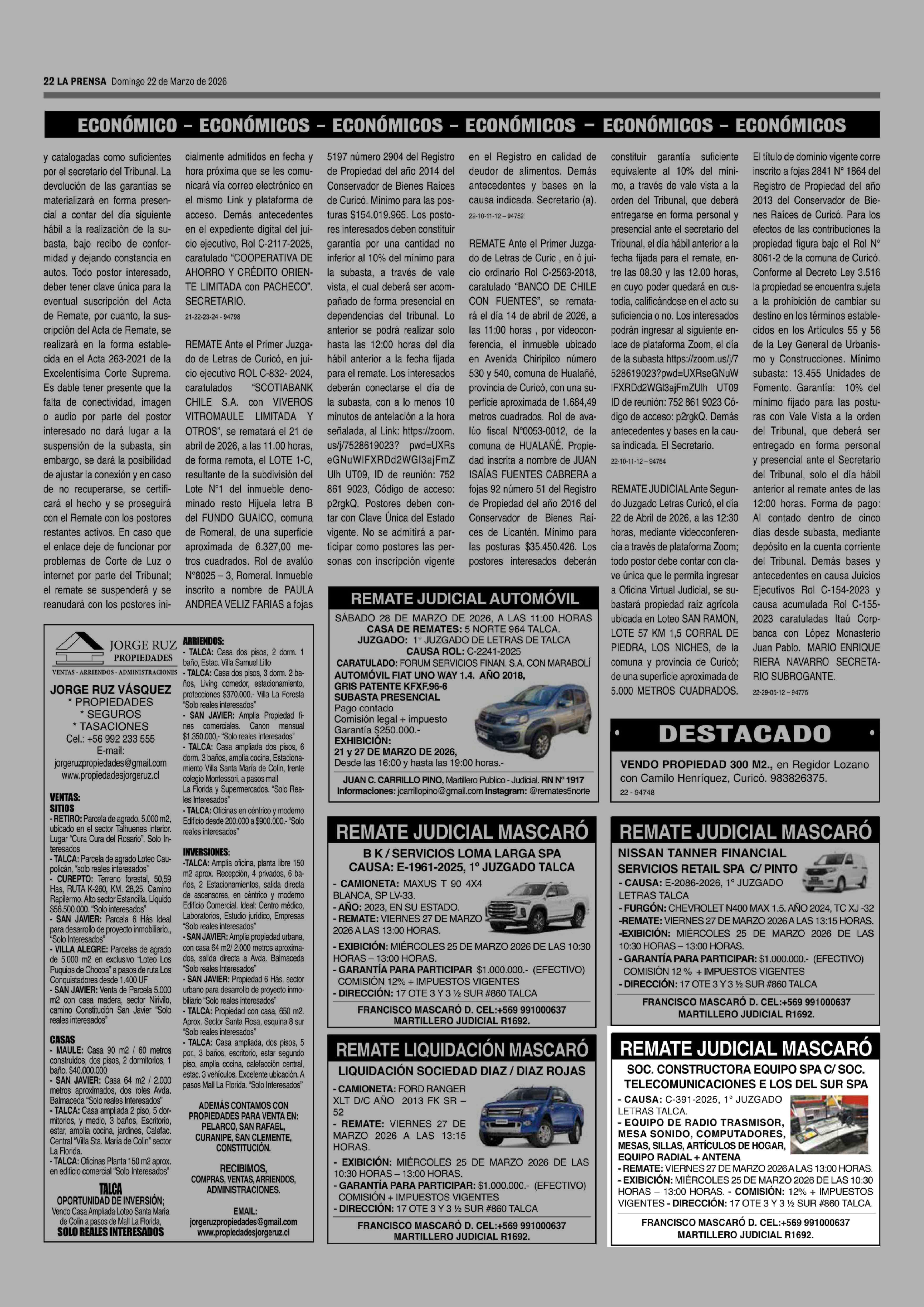 Fecha: 22-03-2026 Sector: Remates Región: Región del Maule