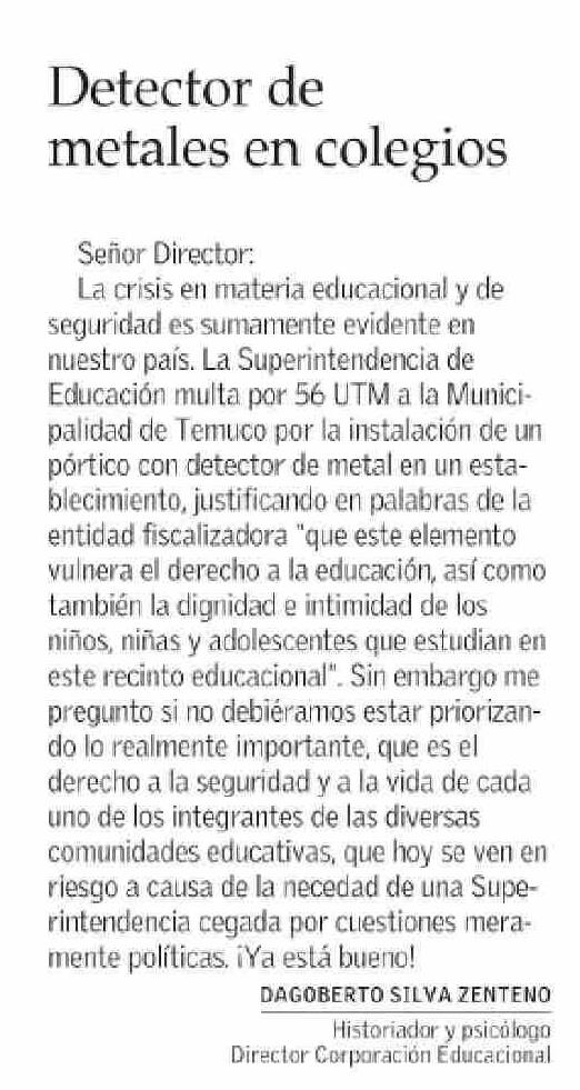 Detector de metales en colegios 01-06-2025 El Mercurio |