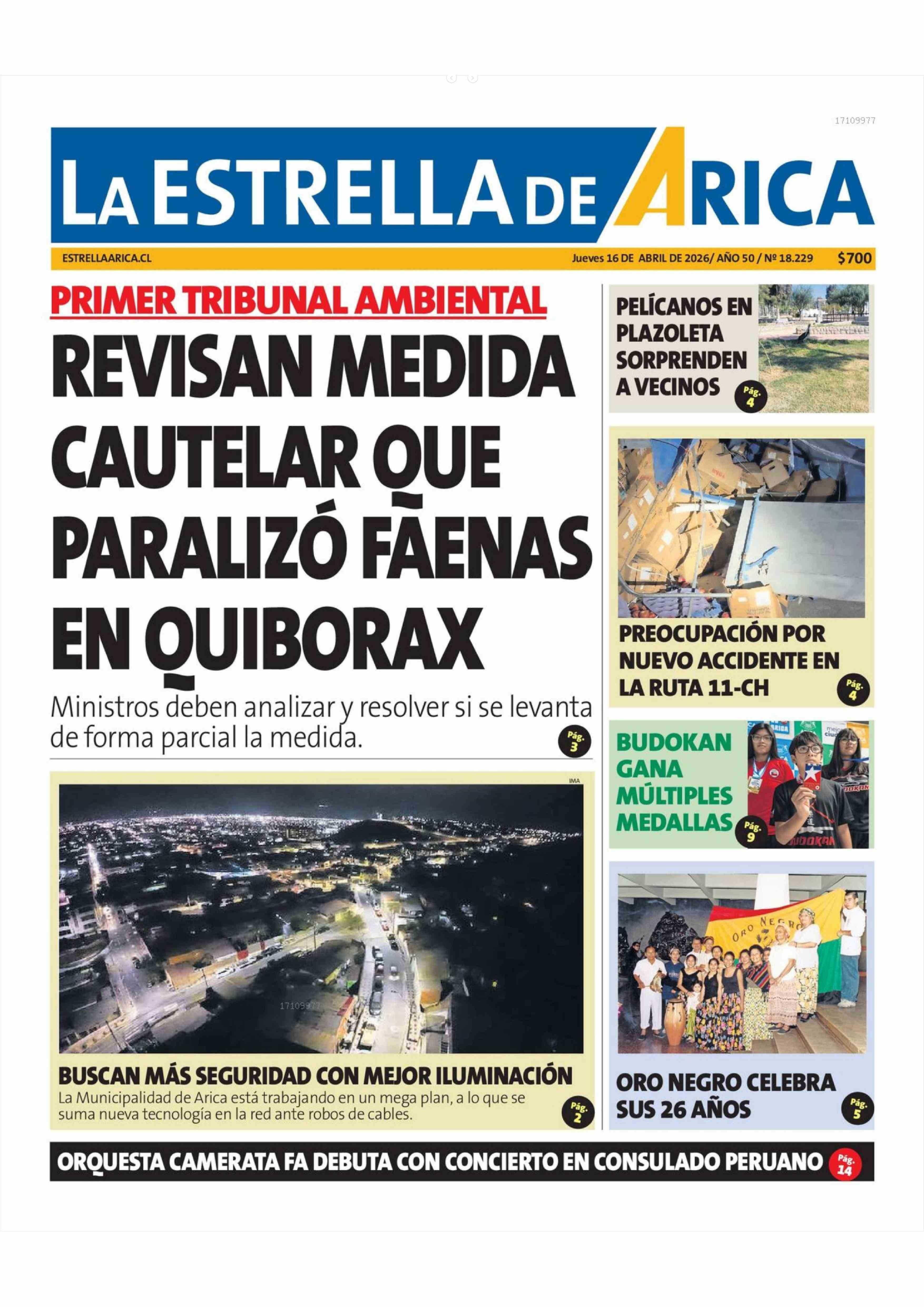 | Fecha: | 16-04-2026 | Sector: | Portada | Región: | Región de Arica y Parinacota |