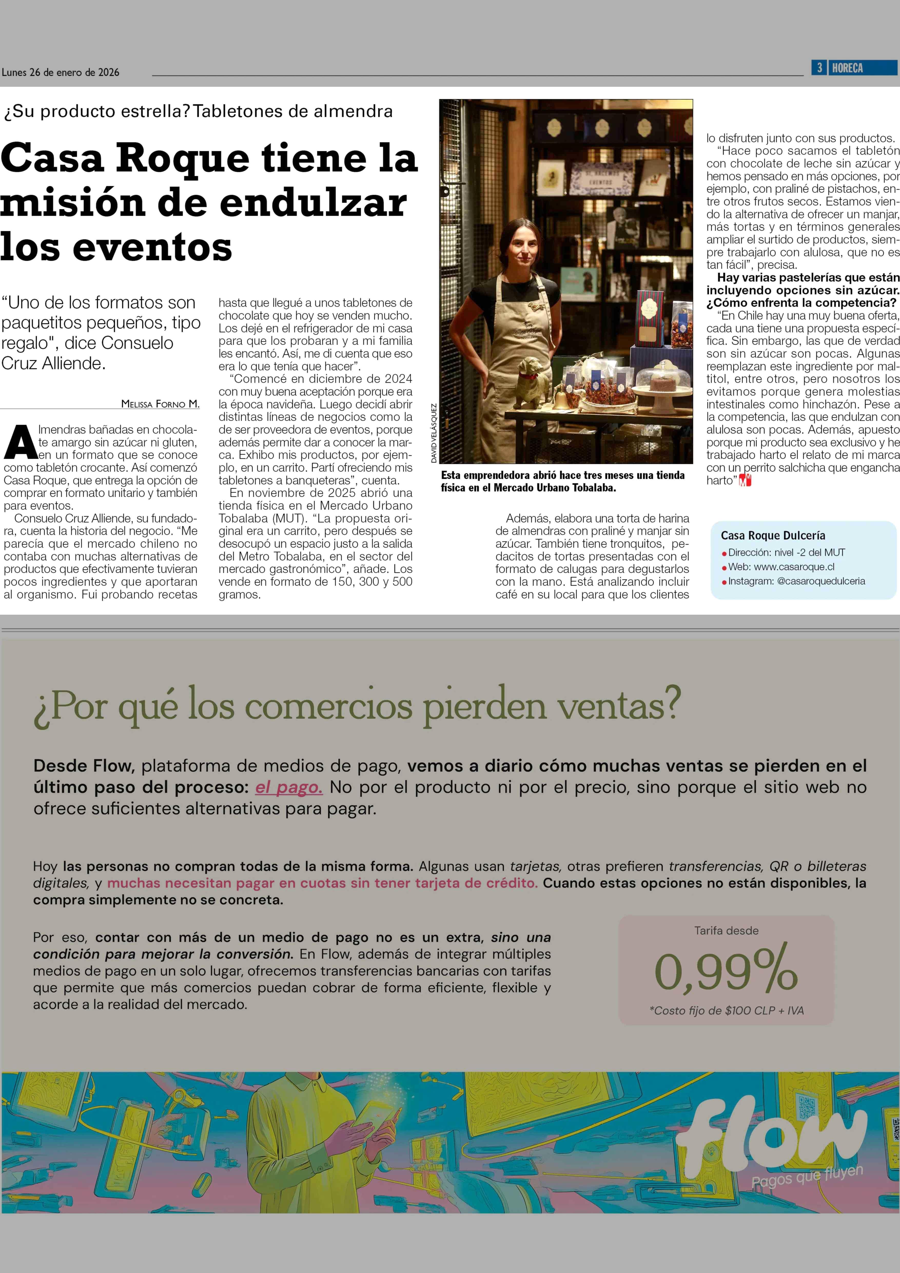 Imendras bañadas en chocolate amargo sin azúcar ni gluten, en un formato que se conoce como tabletón crocante. Así comenzó Casa Roque, que entrega la opción de comprar en formato unitario y también para eventos. Consuelo Cruz Alliende, su fundadora, cuenta la historia del negocio. "Me parecía que el
