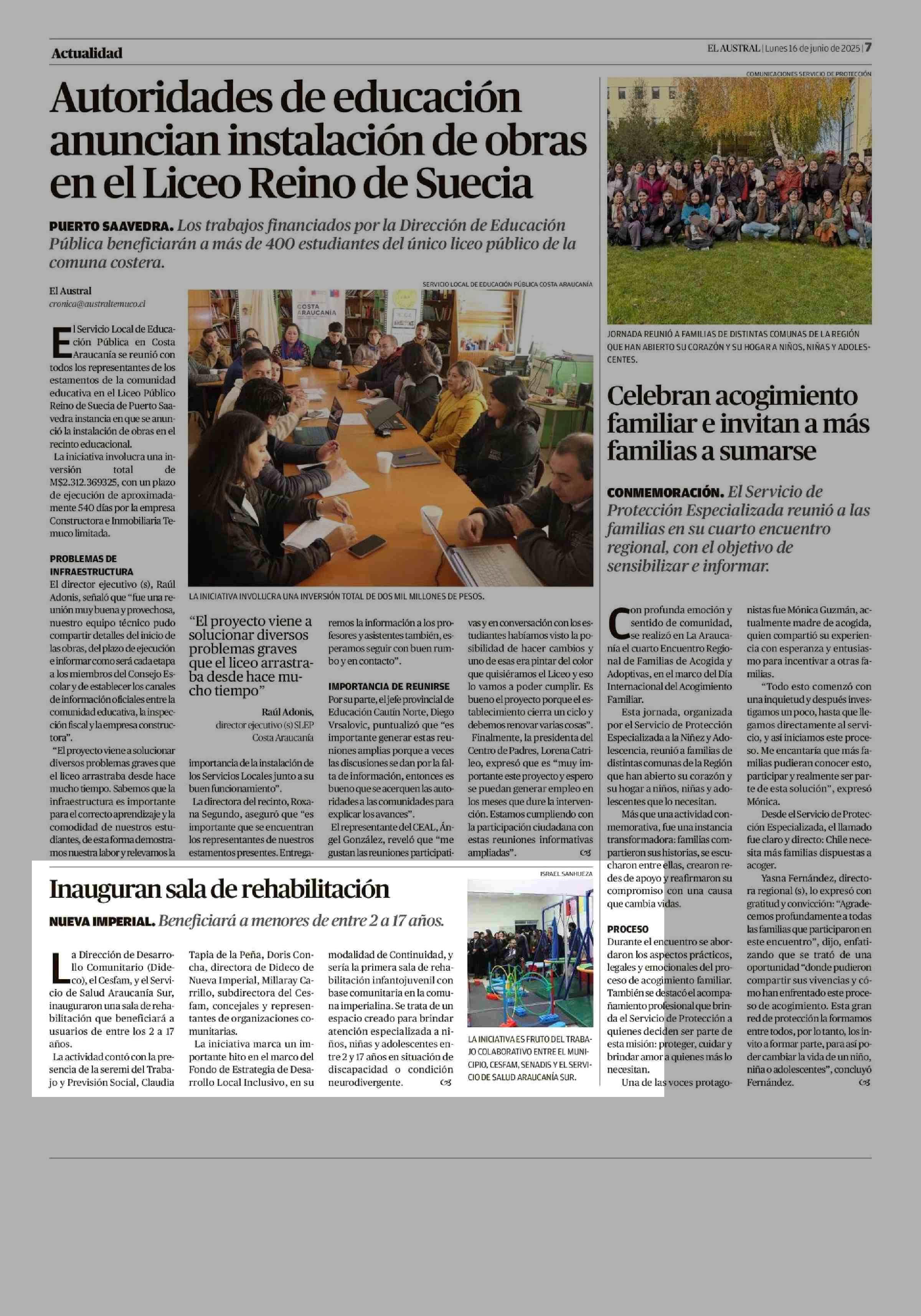 | Fecha: | 16-06-2025 | Sector: | Noticia general | Región: | Región de la Araucanía |