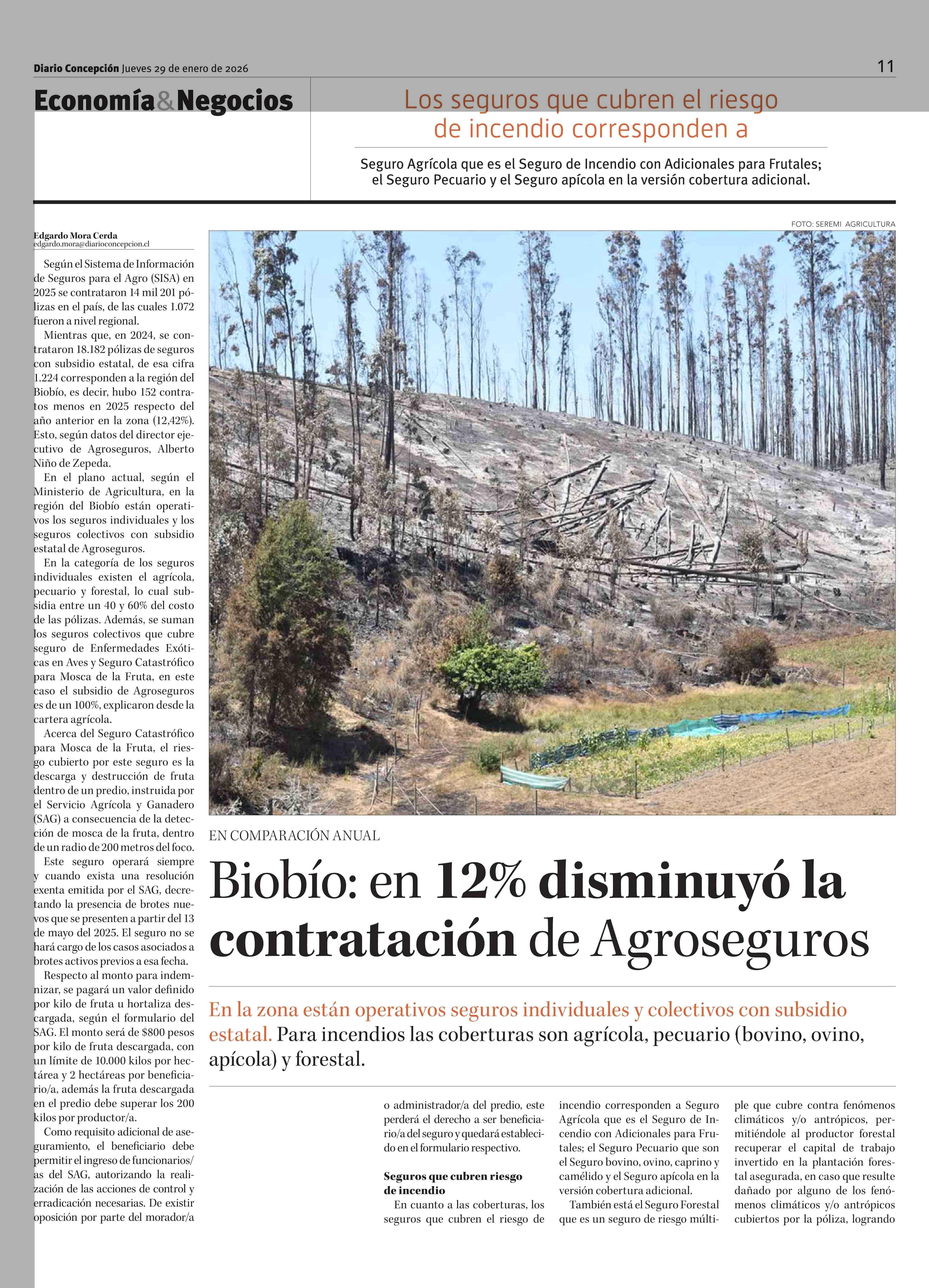 Biobío: en 12% disminuyó la contratación de Agroseguros 29-01-2026 Diario Concepción |