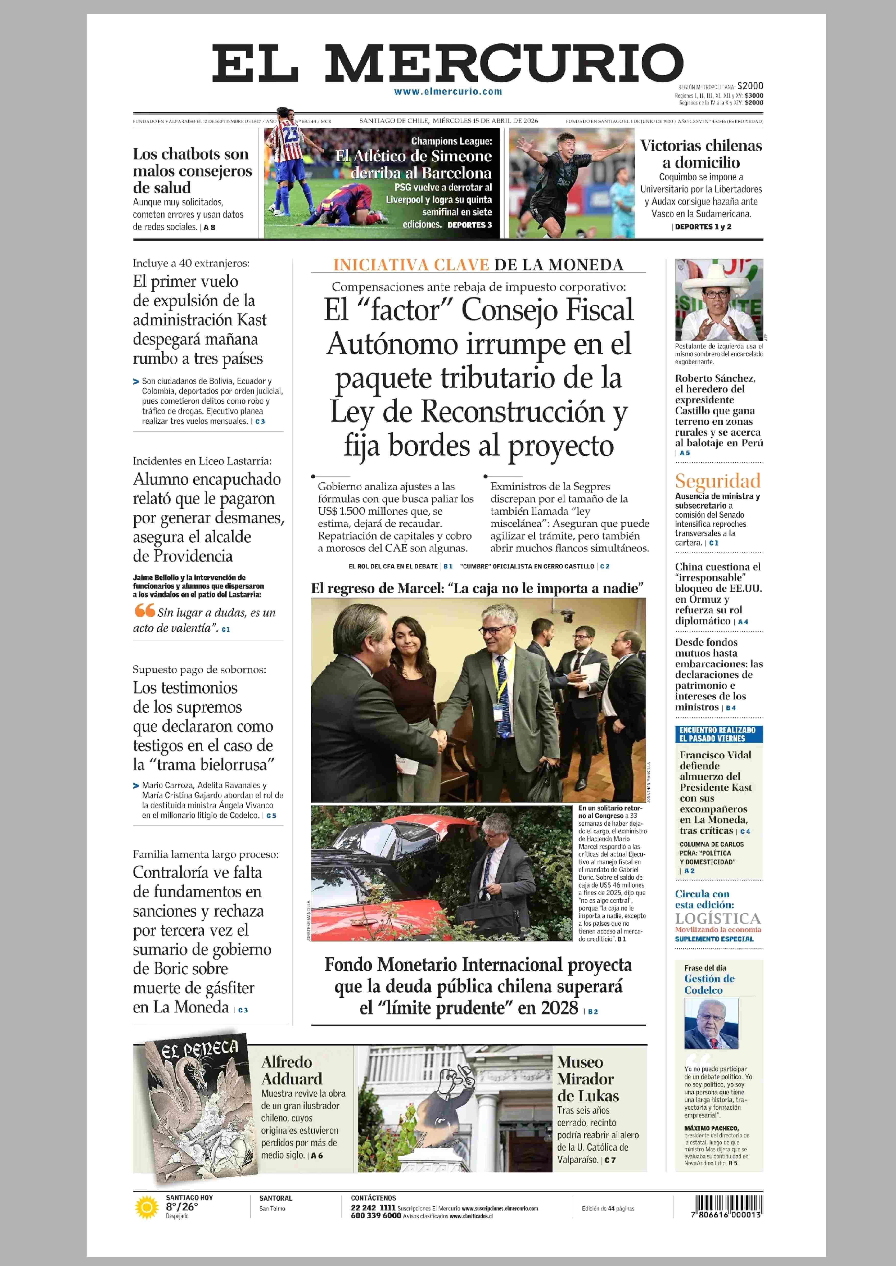 Fecha: 15-04-2026 Sector: Portada Región: Región Metropolitana de Santiago