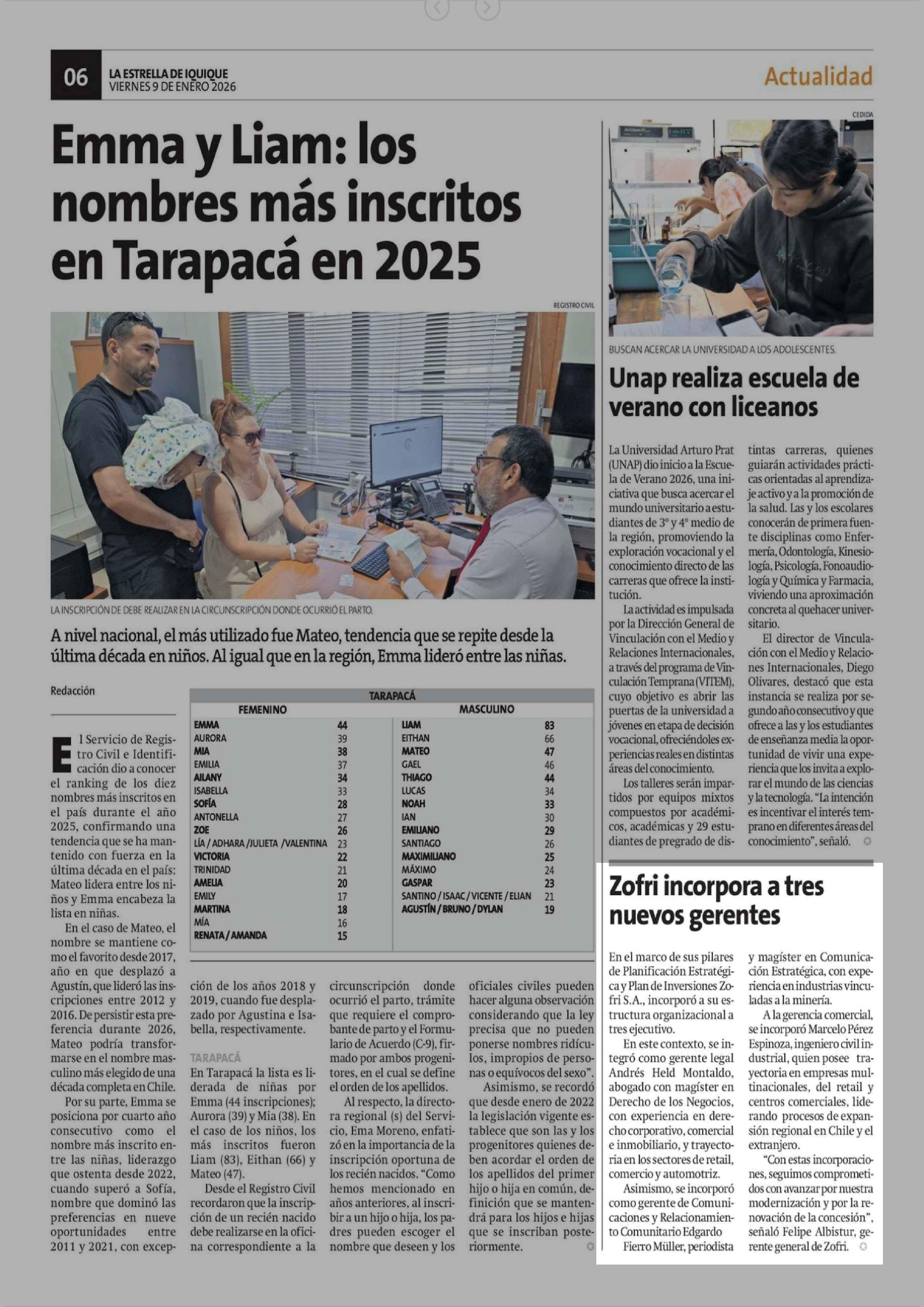 Zofri incorpora a tres nuevos gerentes 09-01-2026 La Estrella de Iquique |