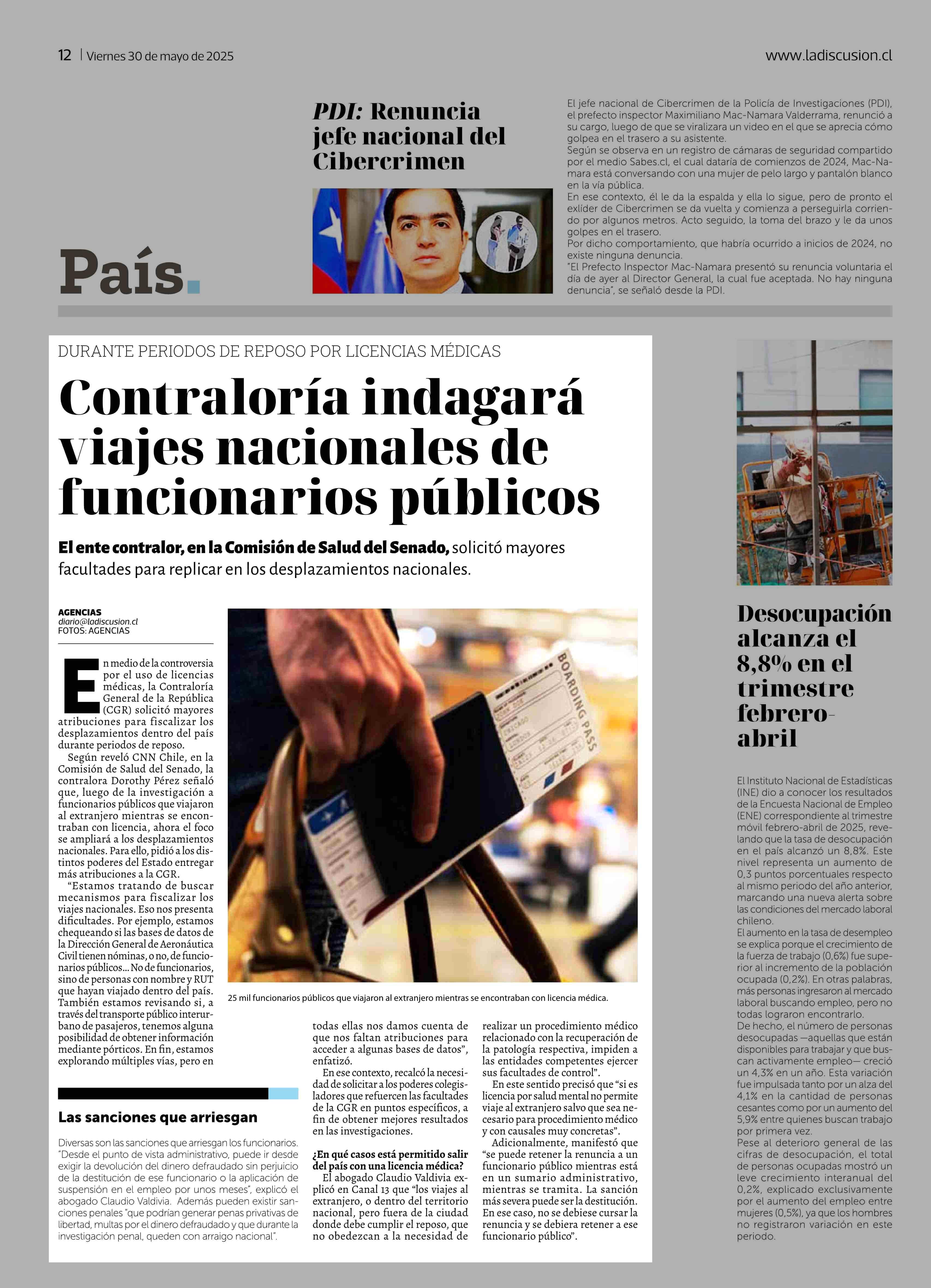 Contraloría indagará viajes nacionales de funcionarios públicos 30-05-2025 La Discusión |