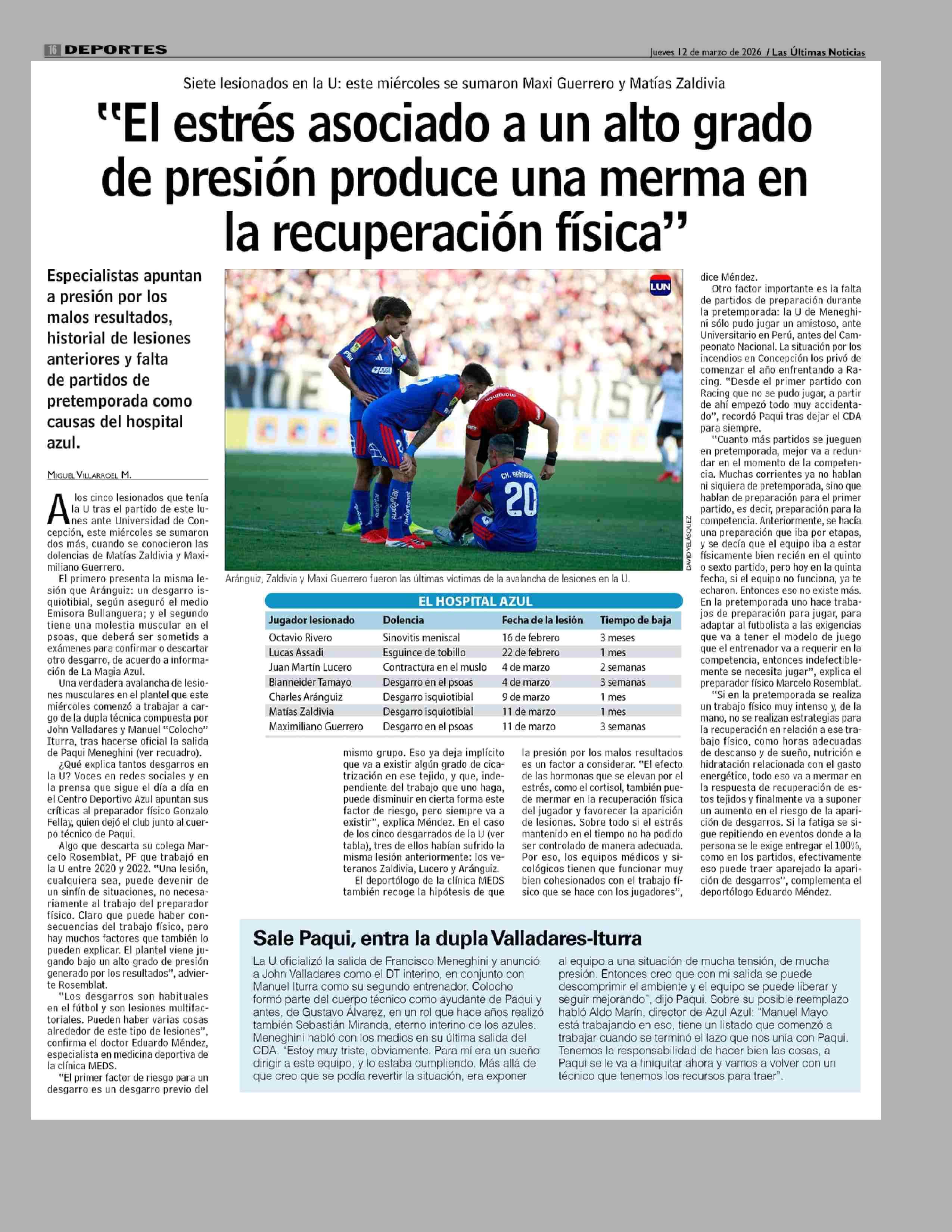 Título: "El estrés asociado a un alto grado de presión produce una merma en la recuperación física"