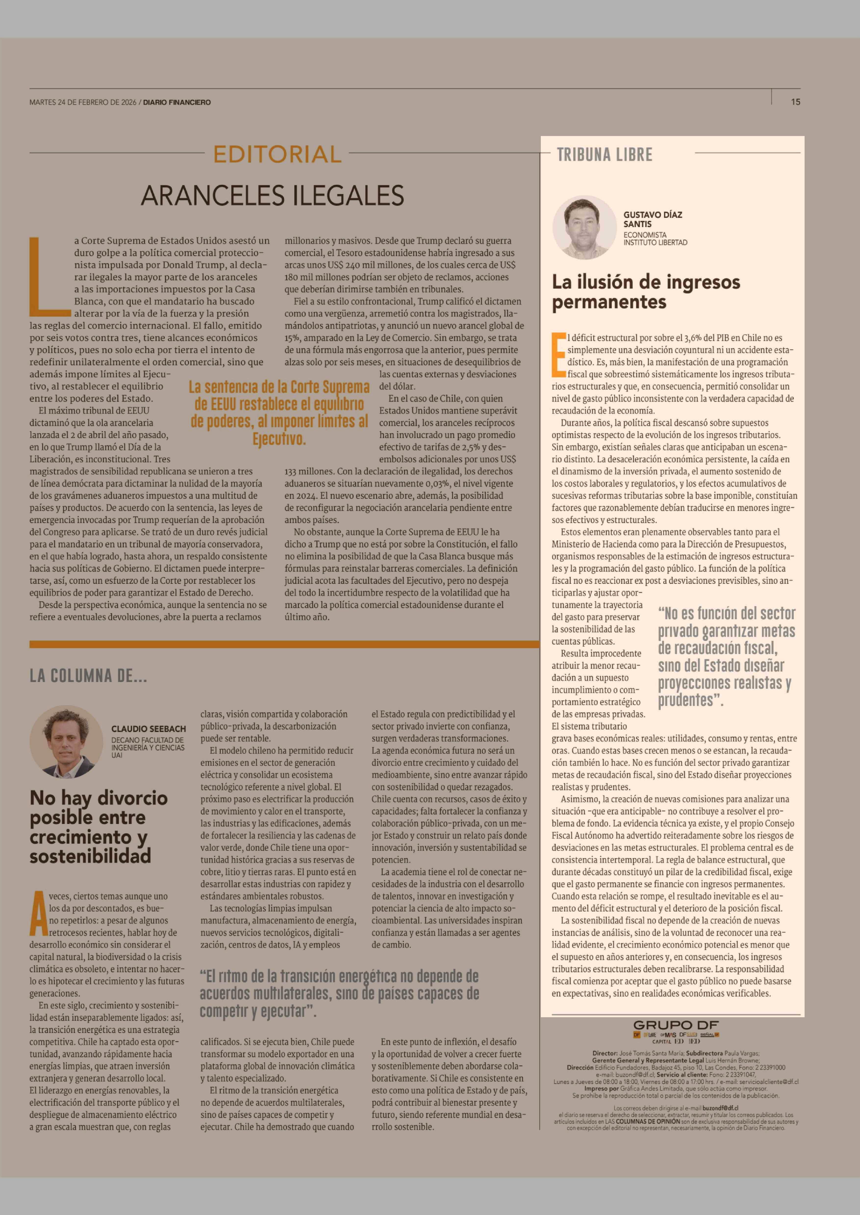 Columnas de Opinión: La ilusión de ingresos permanentes 24-02-2026 Diario Financiero |