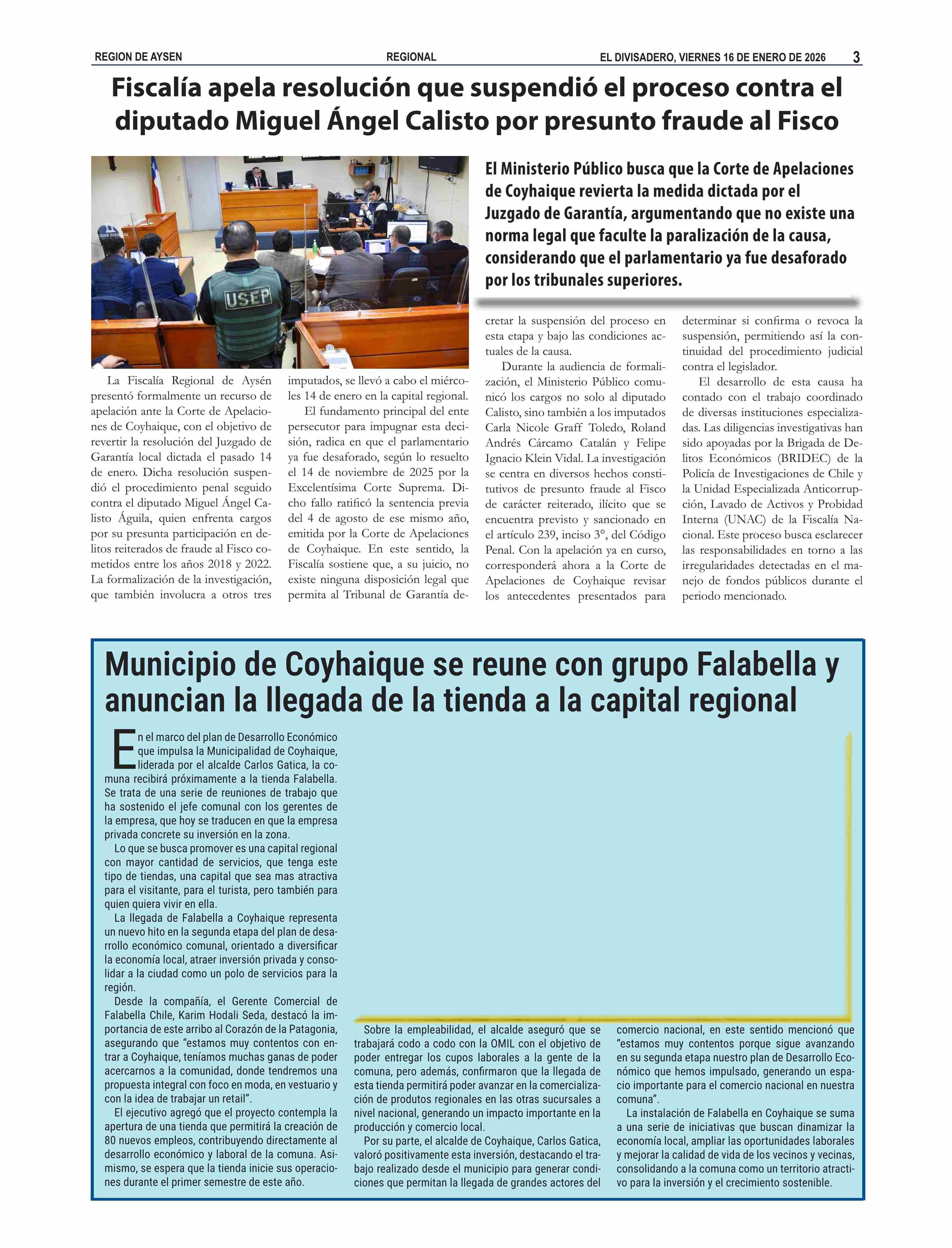 Fecha: 16-01-2026 Sector: Noticia general Región: Región Aysén del General Carlos Ibáñez del Campo