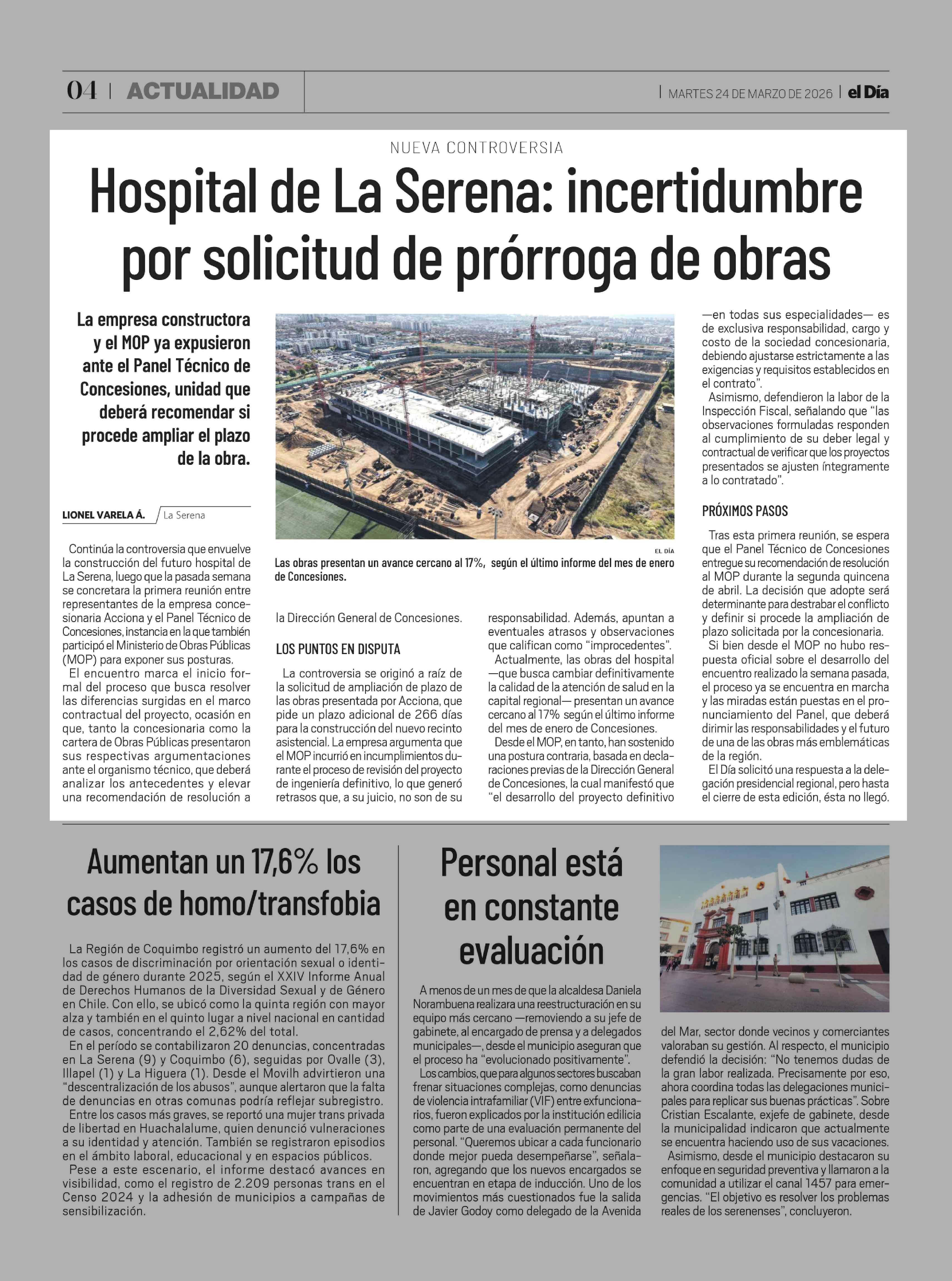 Hospital de La Serena: incertidumbre por solicitud de prórroga de obras 24-03-2026 El Día |