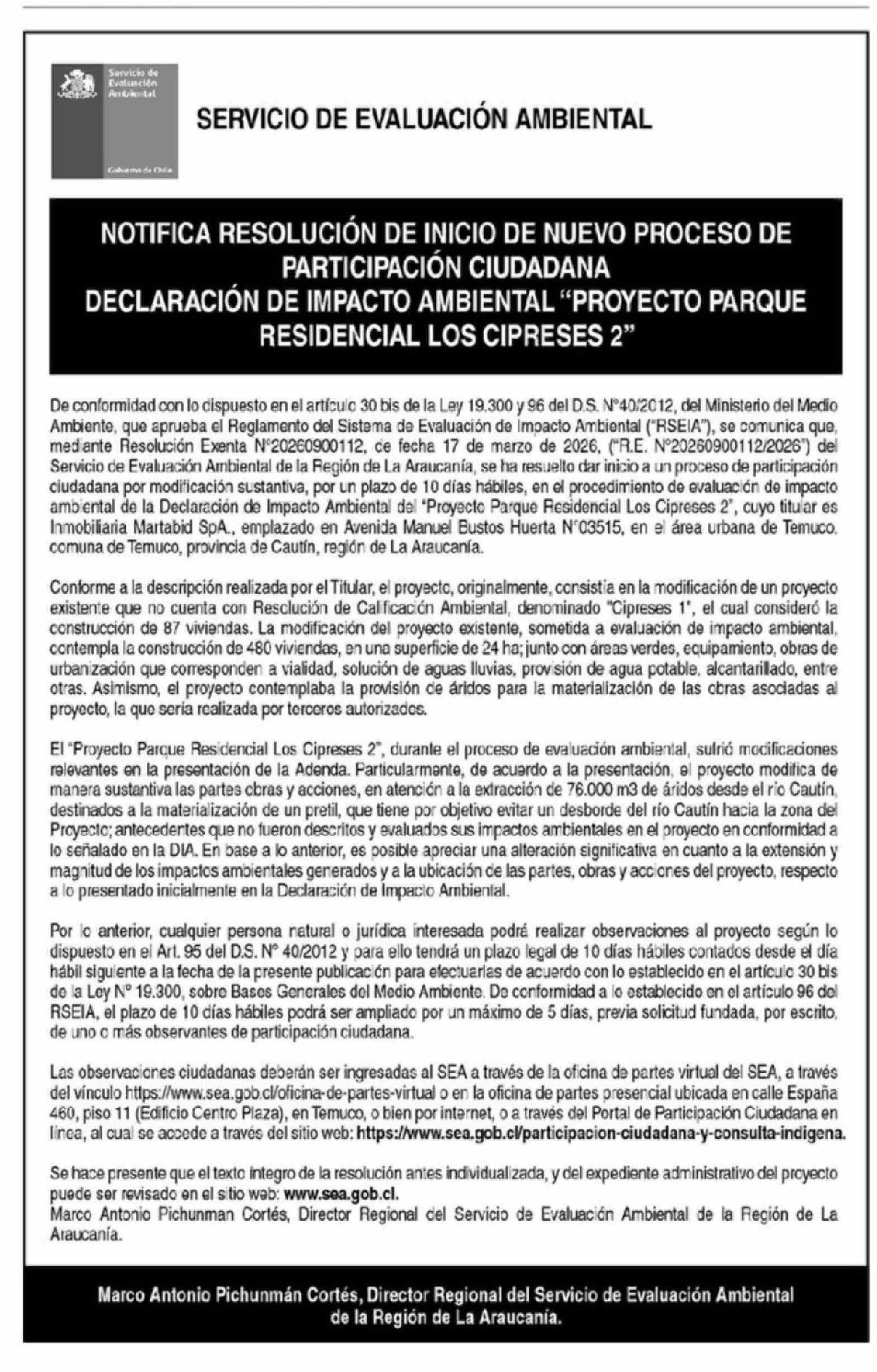 Fecha: 31-03-2026 Sector: Extractos Región: Región de la Araucanía