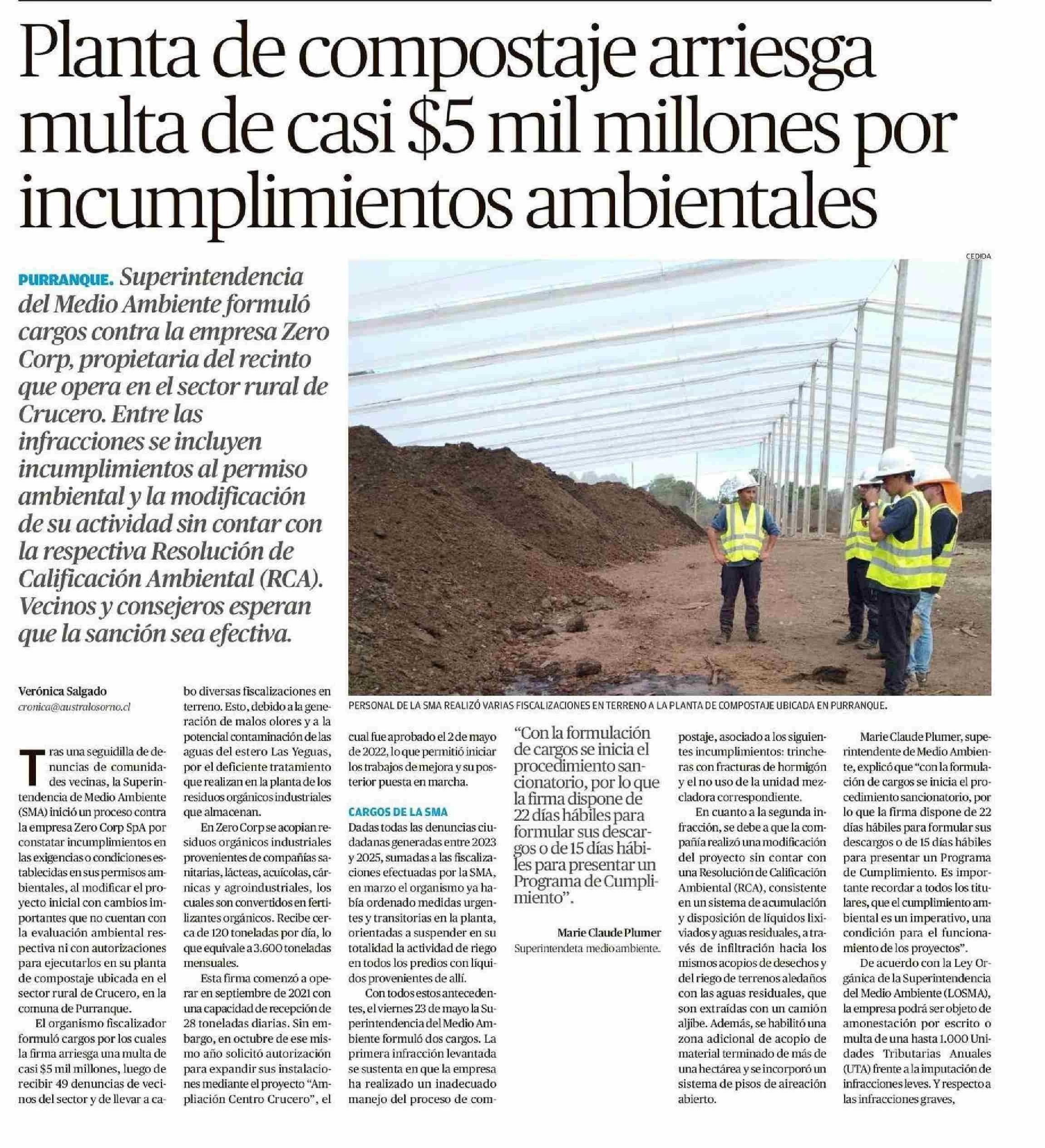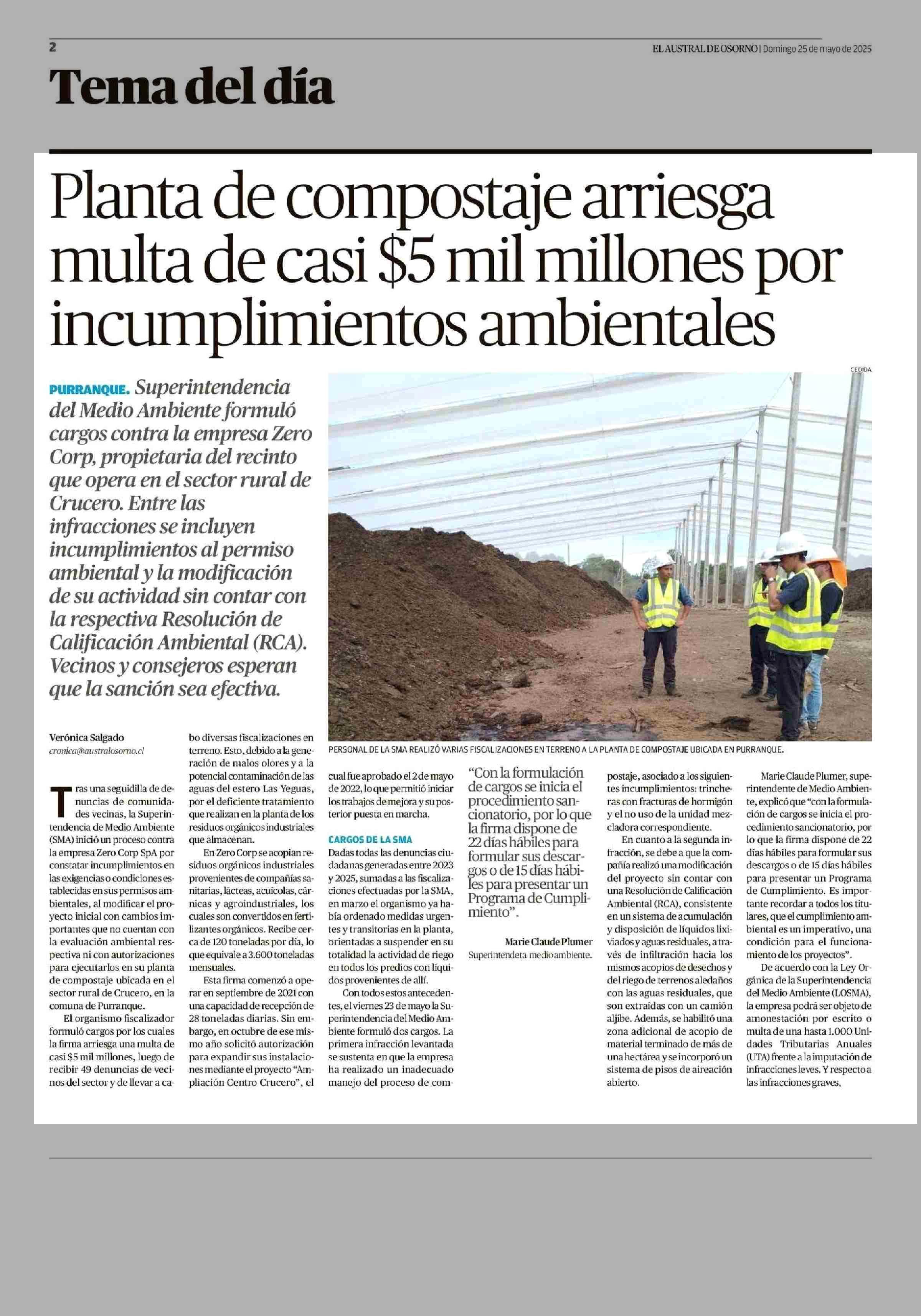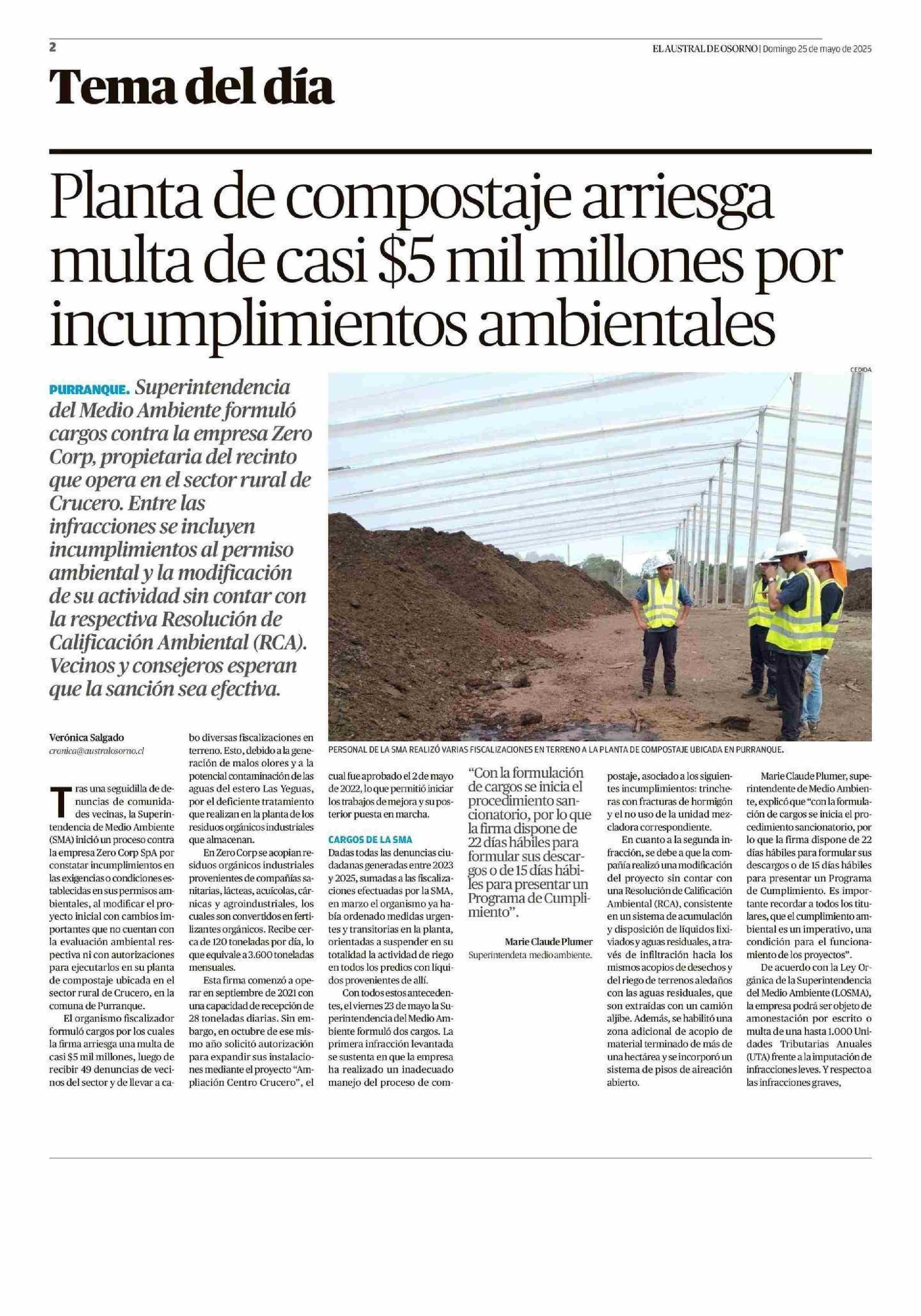 Planta de compostaje arriesga multa de casi $5 mil millones por 25-05-2025 El Austral de Osorno |
