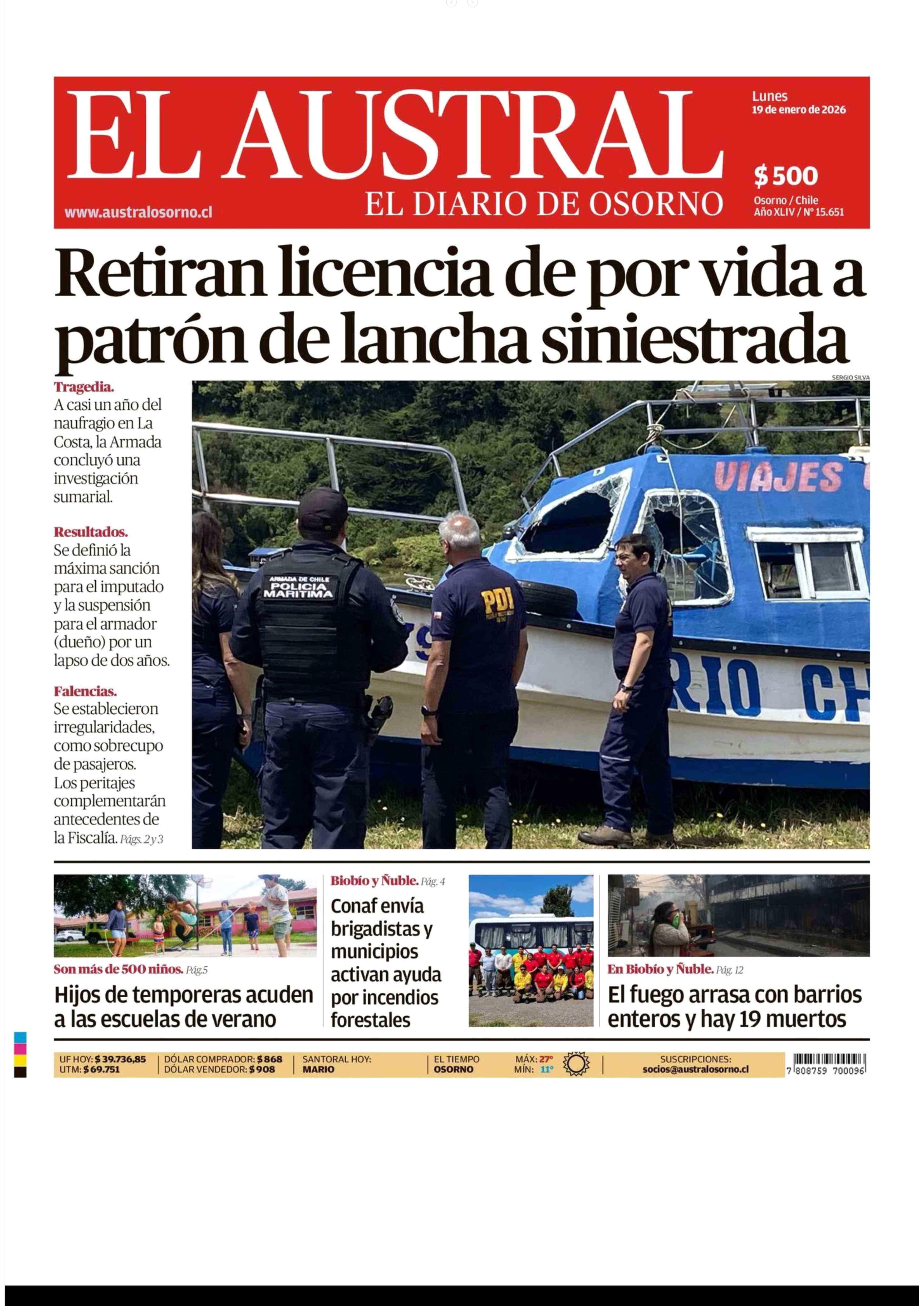 | Fecha: | 19-01-2026 | Sector: | Portada | Región: | Región de Los Lagos |