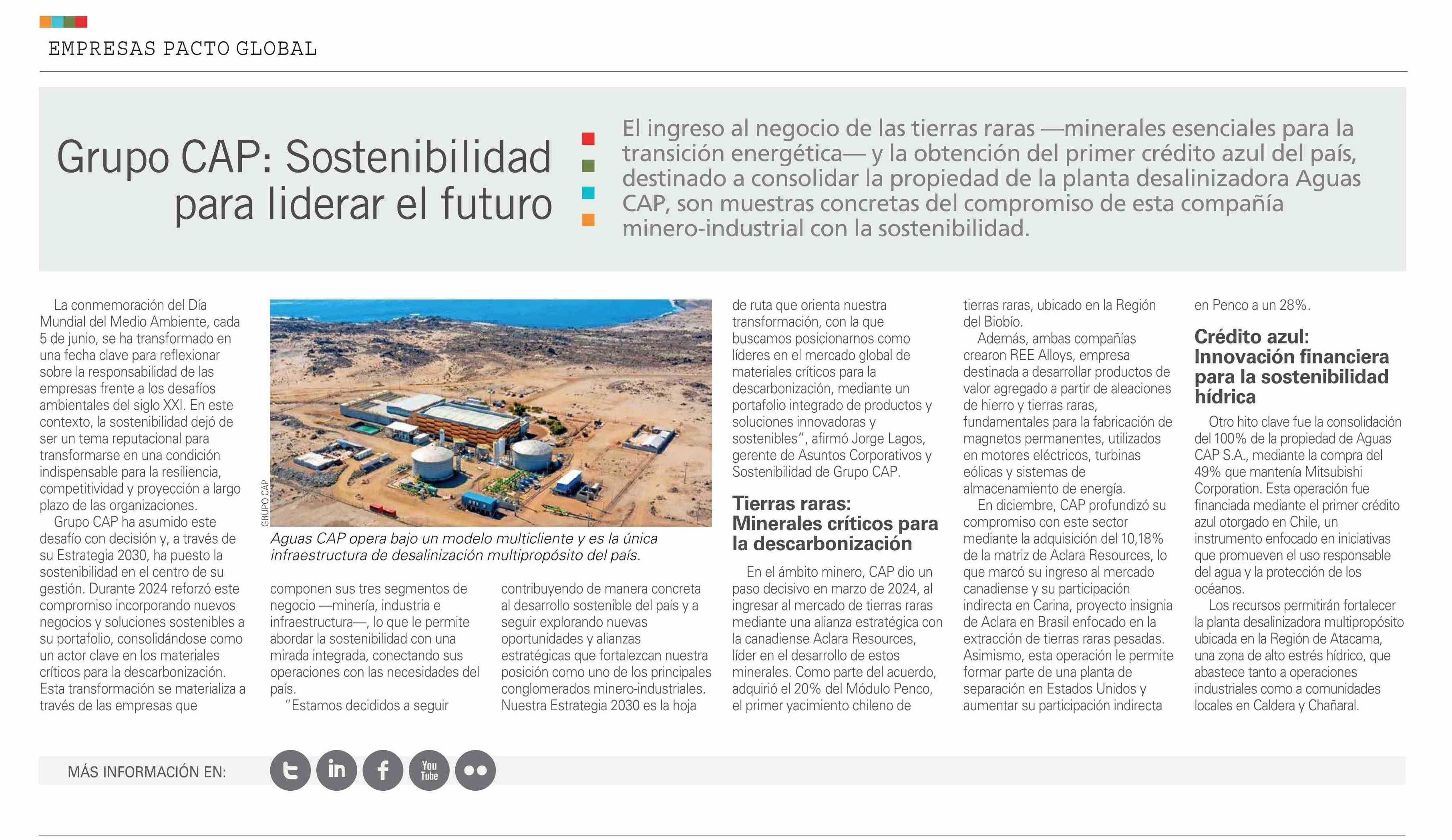 Grupo CAP: Sostenibilidad para liderar el futuro 05-06-2025 El Mercurio |