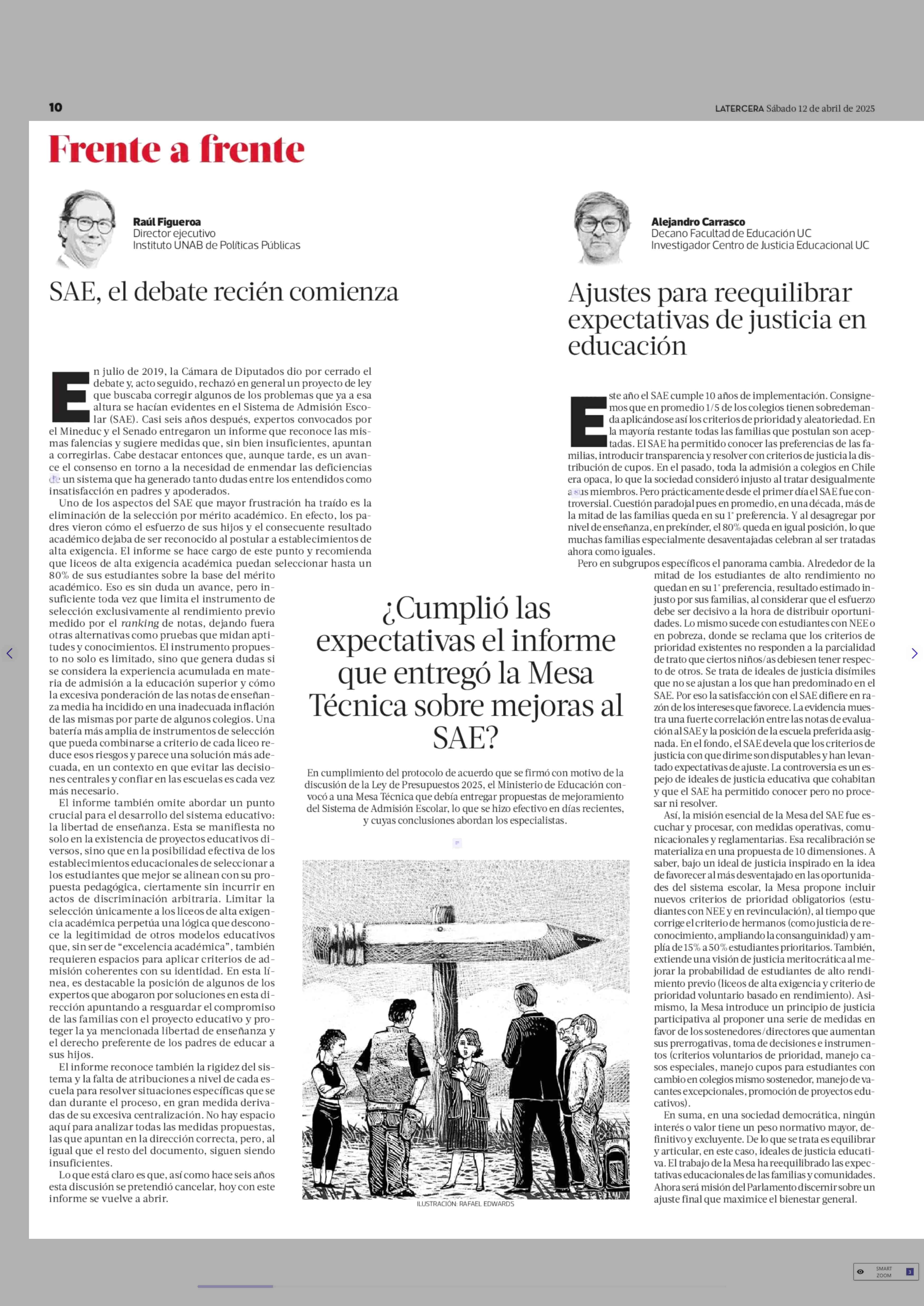 ¿Cumplió las expectativas el informe que entregó la Mesa Técnica sobre mejoras al SAE? 12-04-2025 La Tercera |
