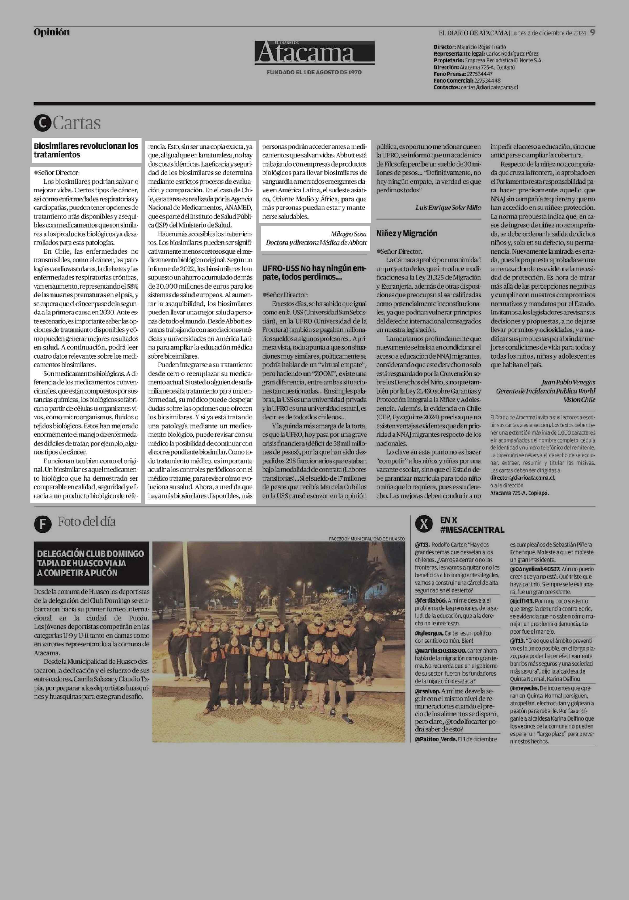 | Fecha: | 02-12-2024 | Sector: | Opinión - Cartas | Región: | Región de Atacama |