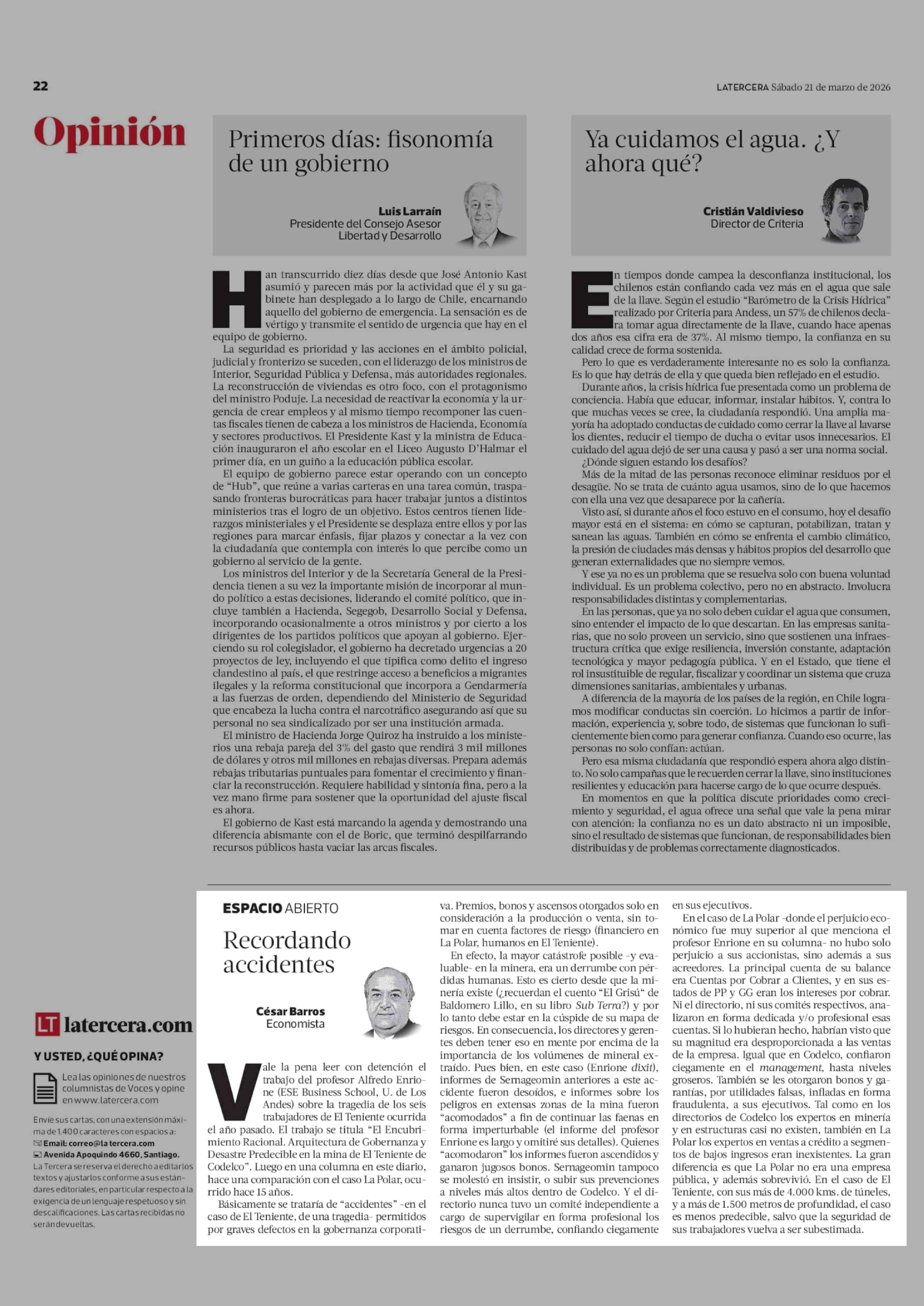 Columnas de Opinión: Recordando accidentes 21-03-2026 La Tercera |