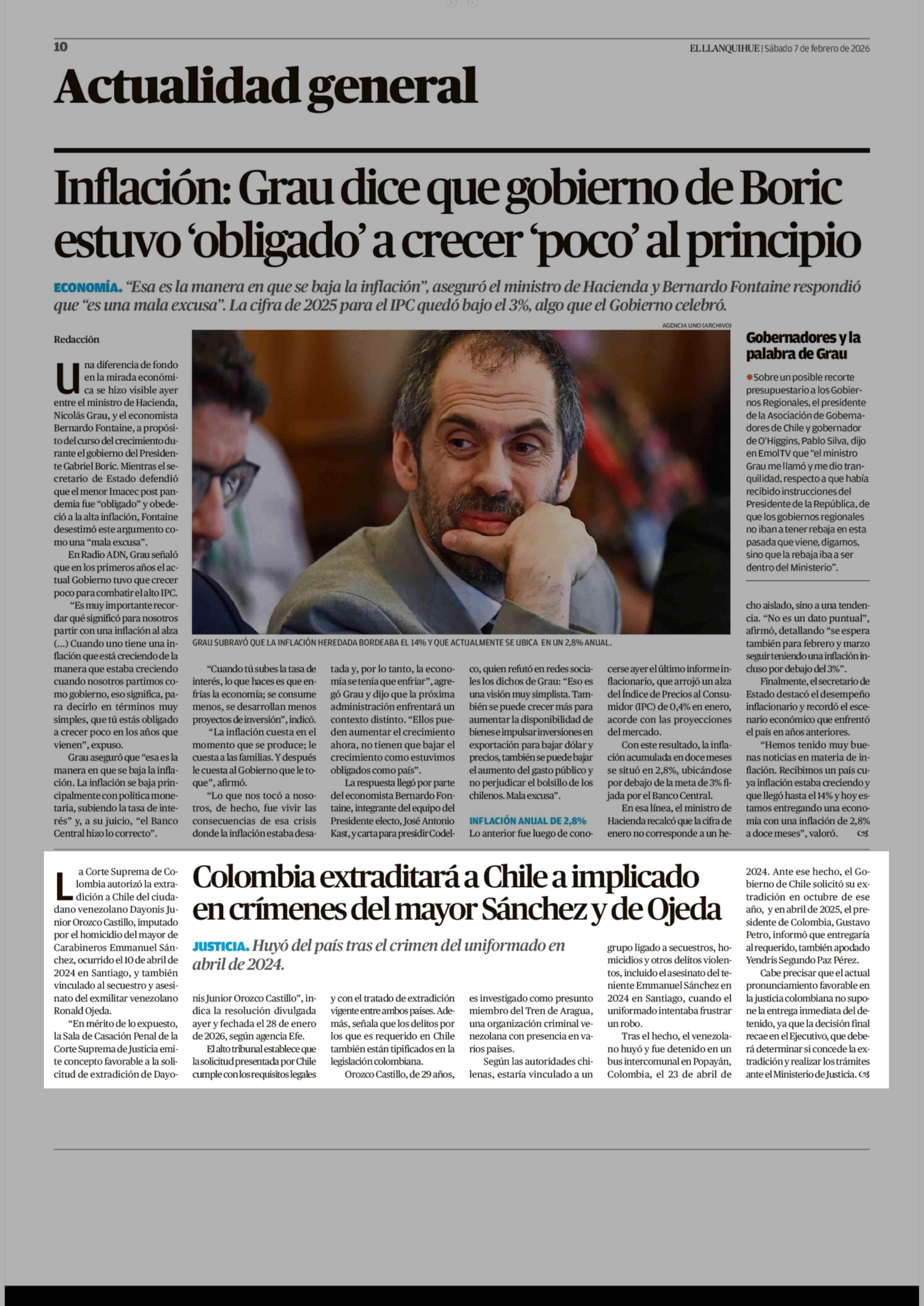 Colombia extraditará a Chile a implicado en crímenes del mayor Sánchez y de Ojeda 07-02-2026 El Llanquihue |