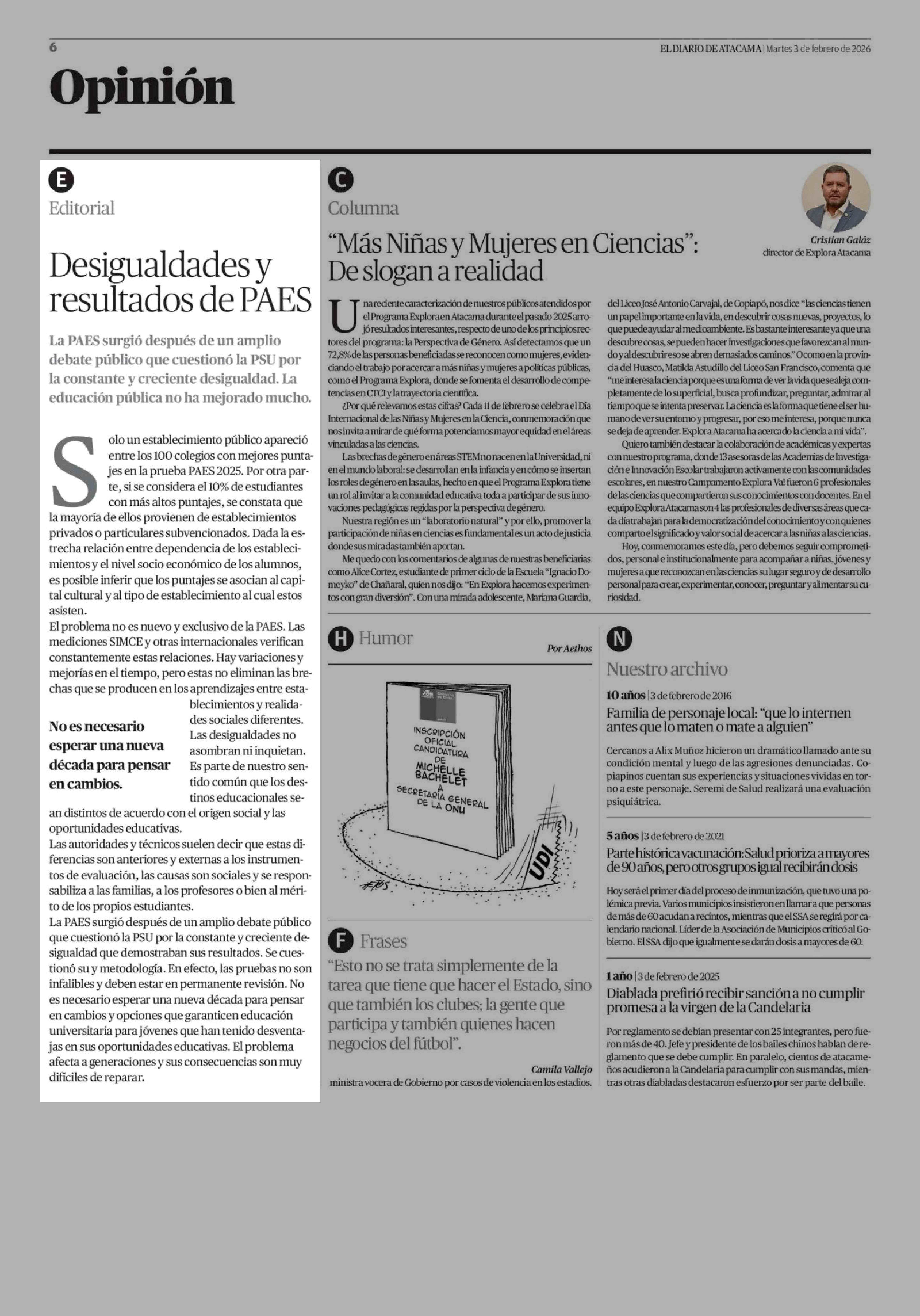 Editorial: Desigualdades y resultados de PAES 03-02-2026 El Diario de Atacama |