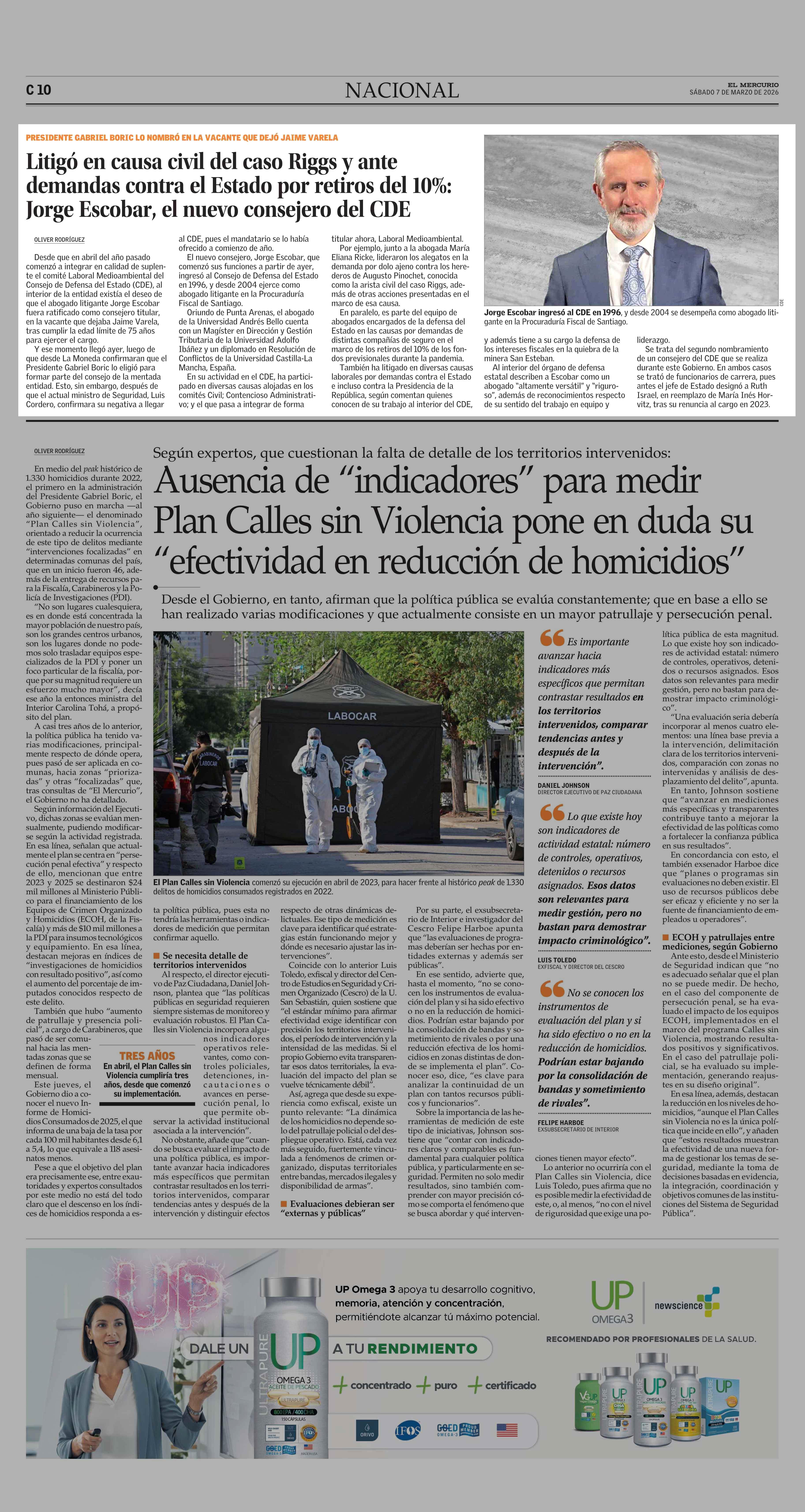 Litigó en causa civil del caso Riggs y ante demandas contra el Estado por retiros del 10%: Jorge Escobar, el nuevo consejero del CDE 07-03-2026 El Mercurio |