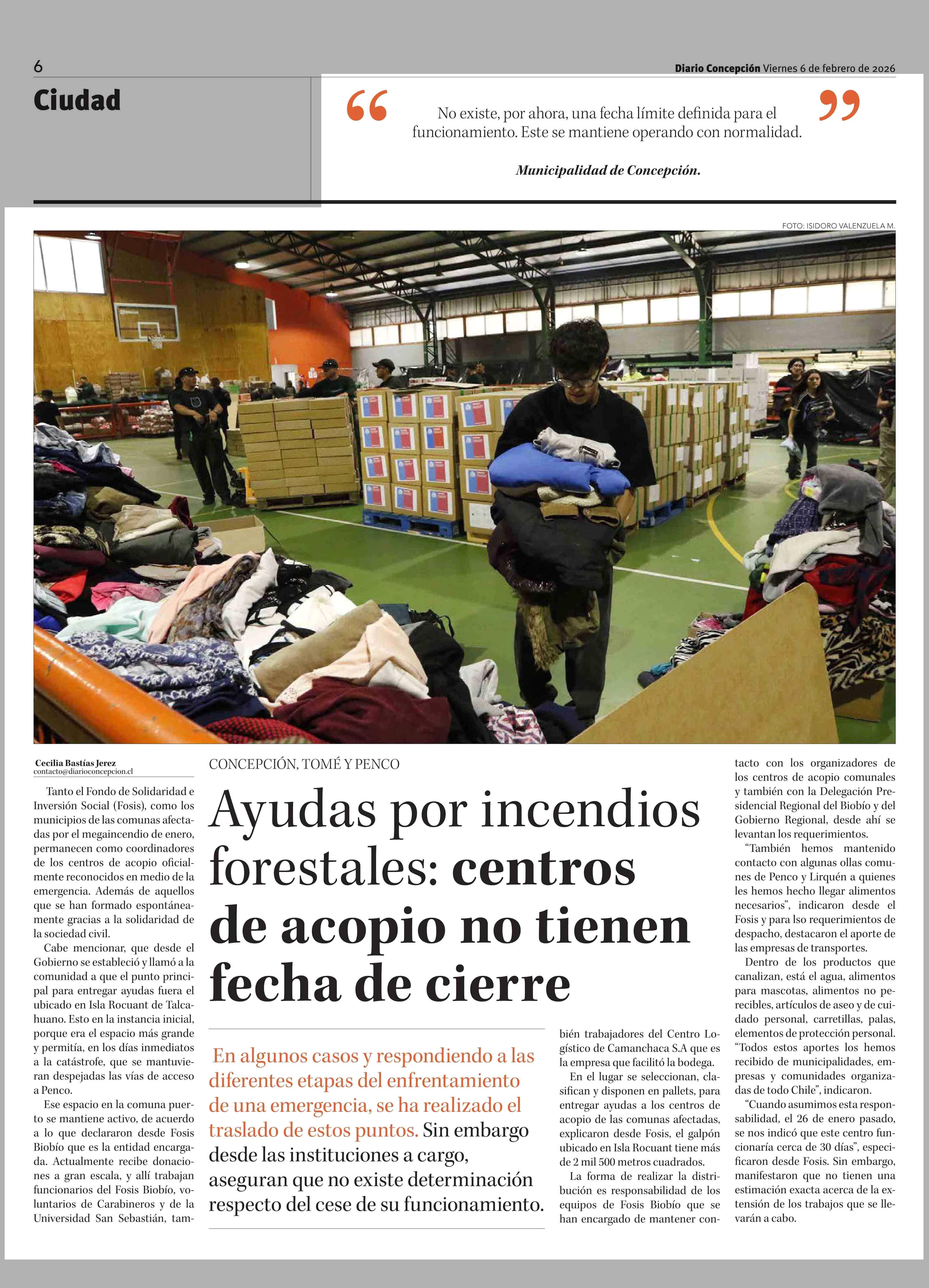 Ayudas por incendios forestales: centros de acopio no tienen fecha de cierre 06-02-2026 Diario Concepción |