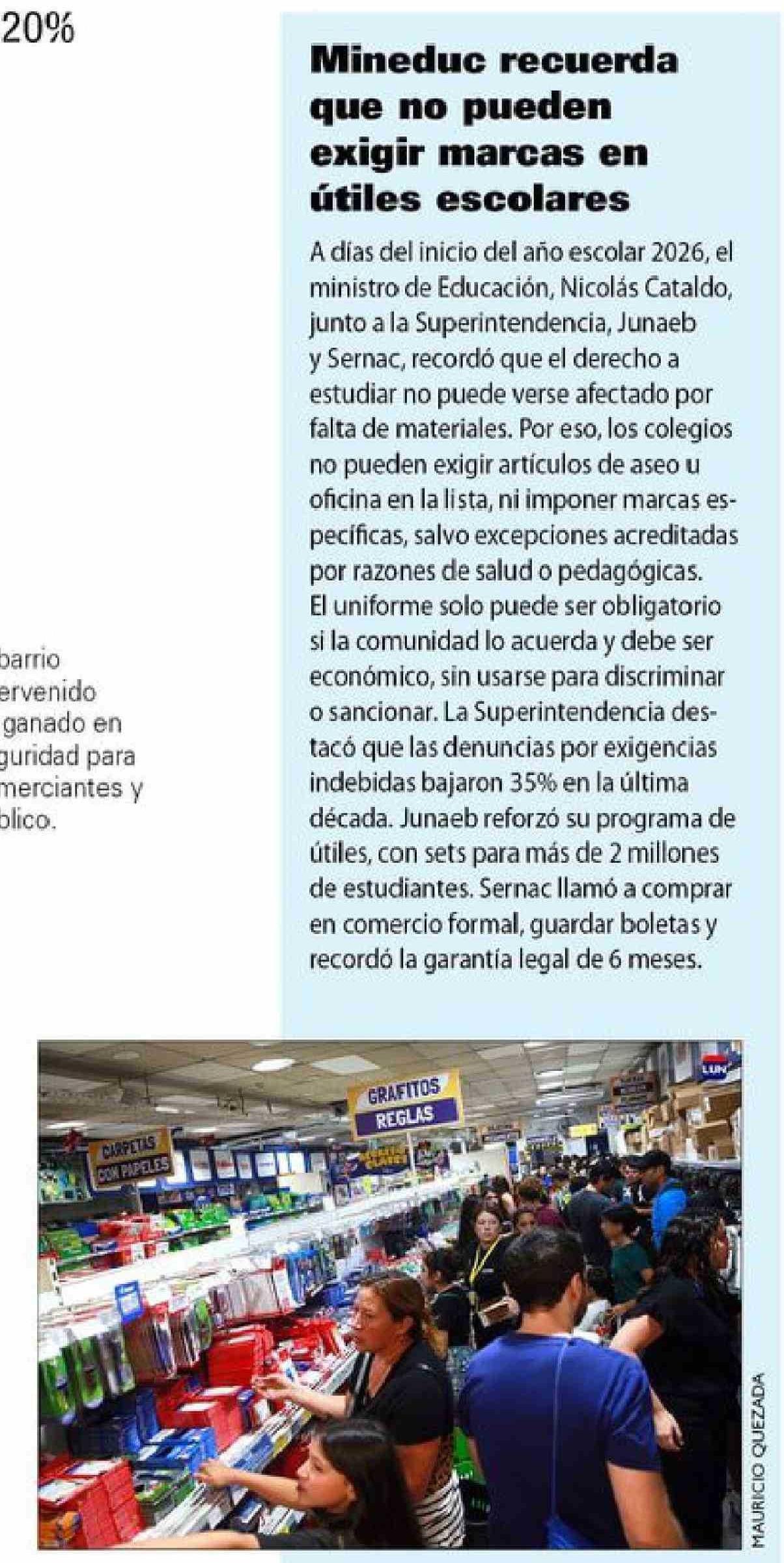Mineduc recuerda que no pueden exigir marcas en útiles escolares 23-02-2026 Las Últimas Noticias |