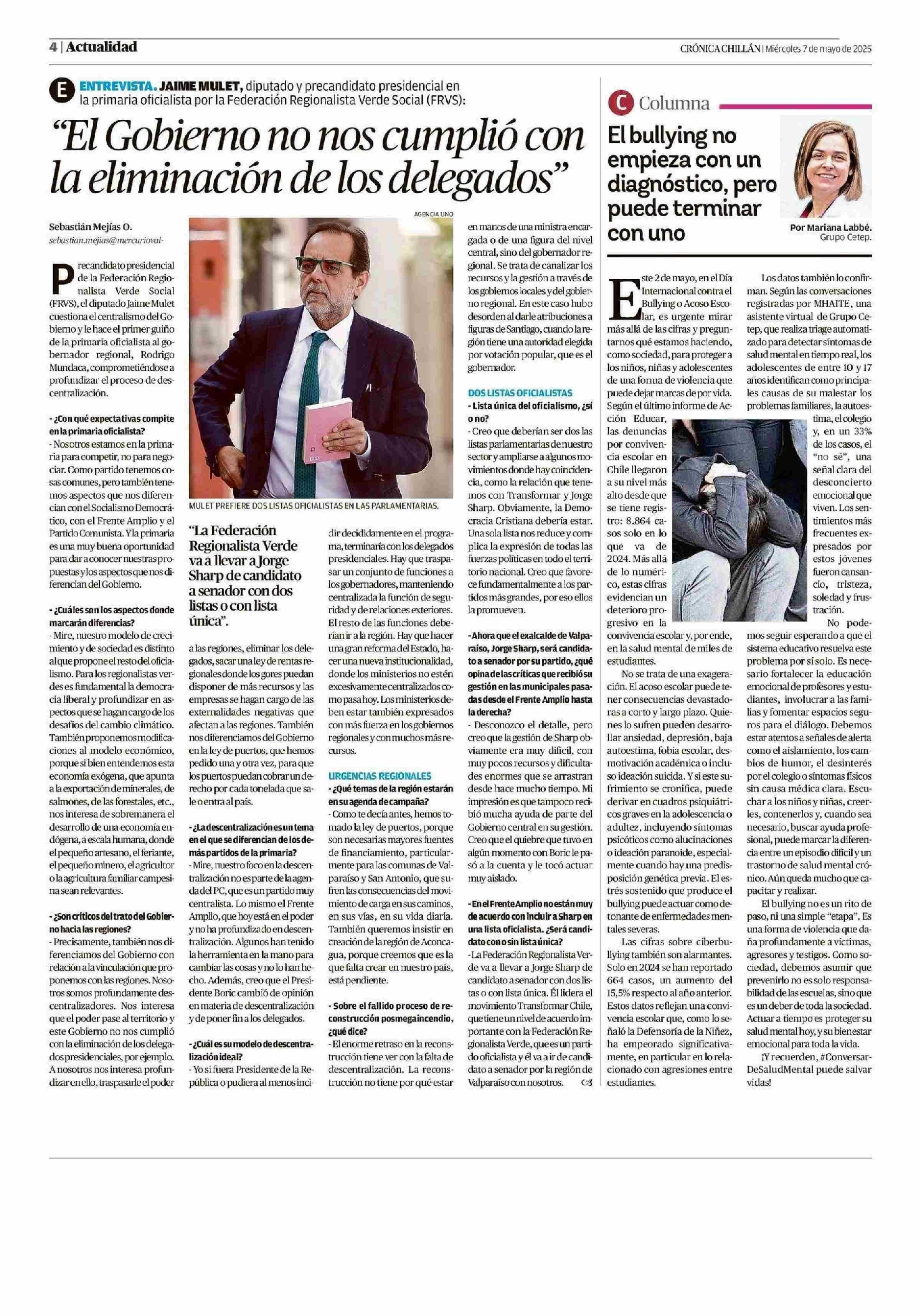 El bullying no empieza con un diagnóstico, pero puede terminar con uno 07-05-2025 Crónica de Chillán |