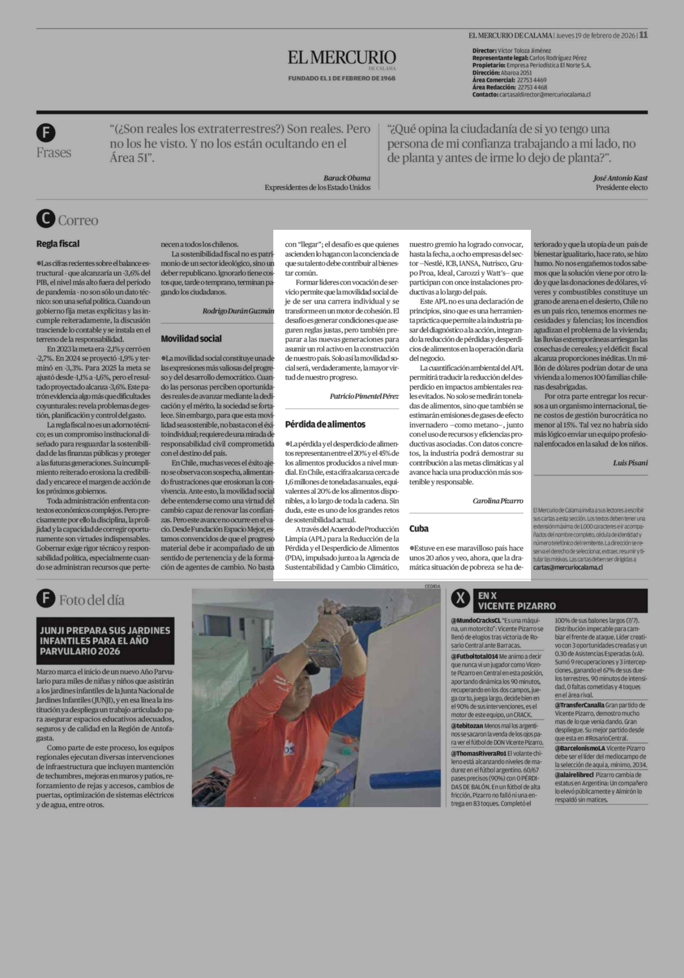 Fuente: El Mercurio de Calama (El Mercurio de Calama) Página(s): 11