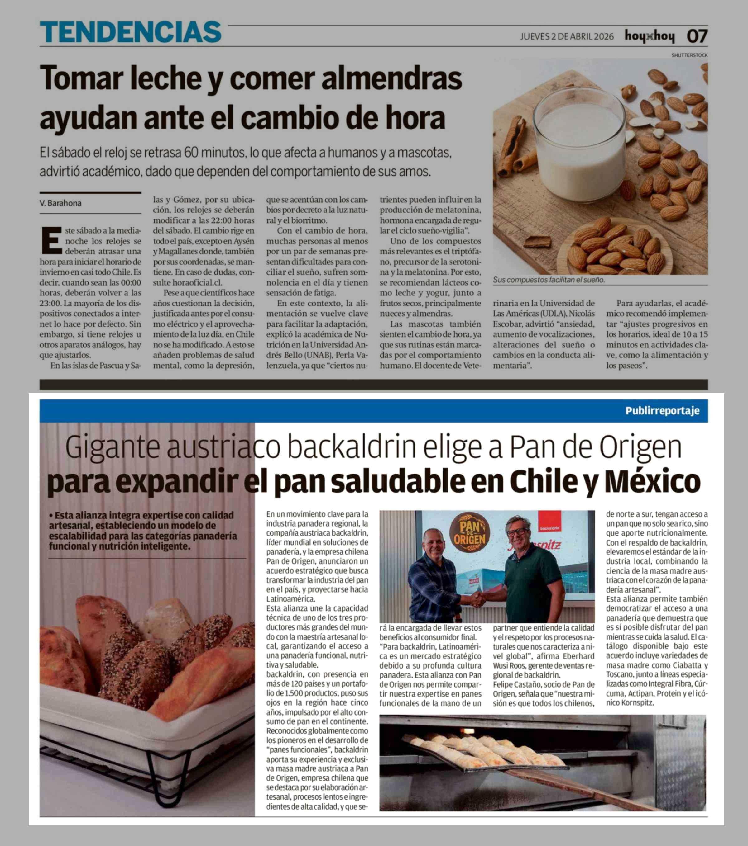 Gigante austriaco backaldrin elige a Pan de Origen para expandir el pan saludable en Chile y México 02-04-2026 Hoy x Hoy |