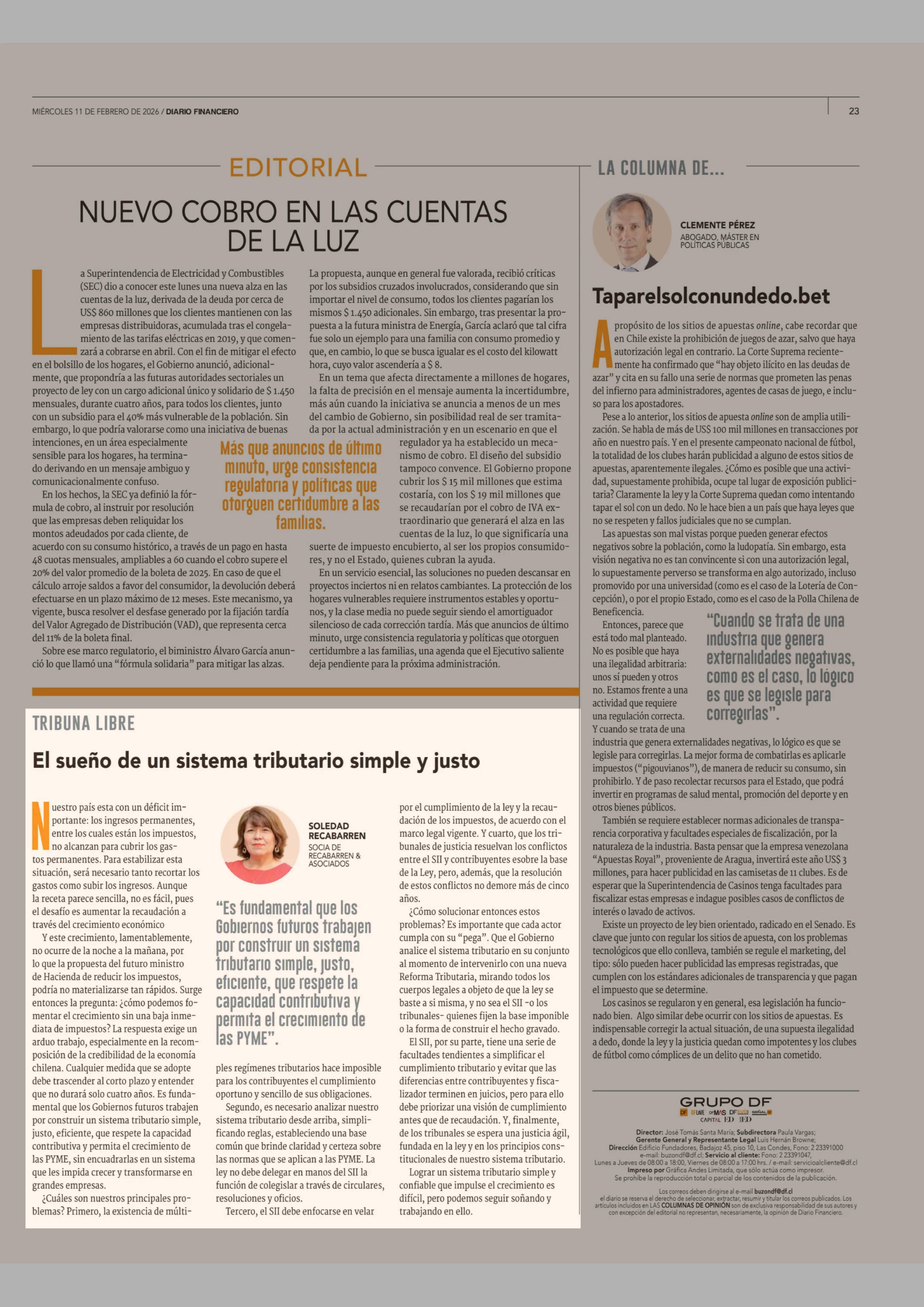 Columnas de Opinión: El sueño de un sistema tributario simple y justo 11-02-2026 Diario Financiero |
