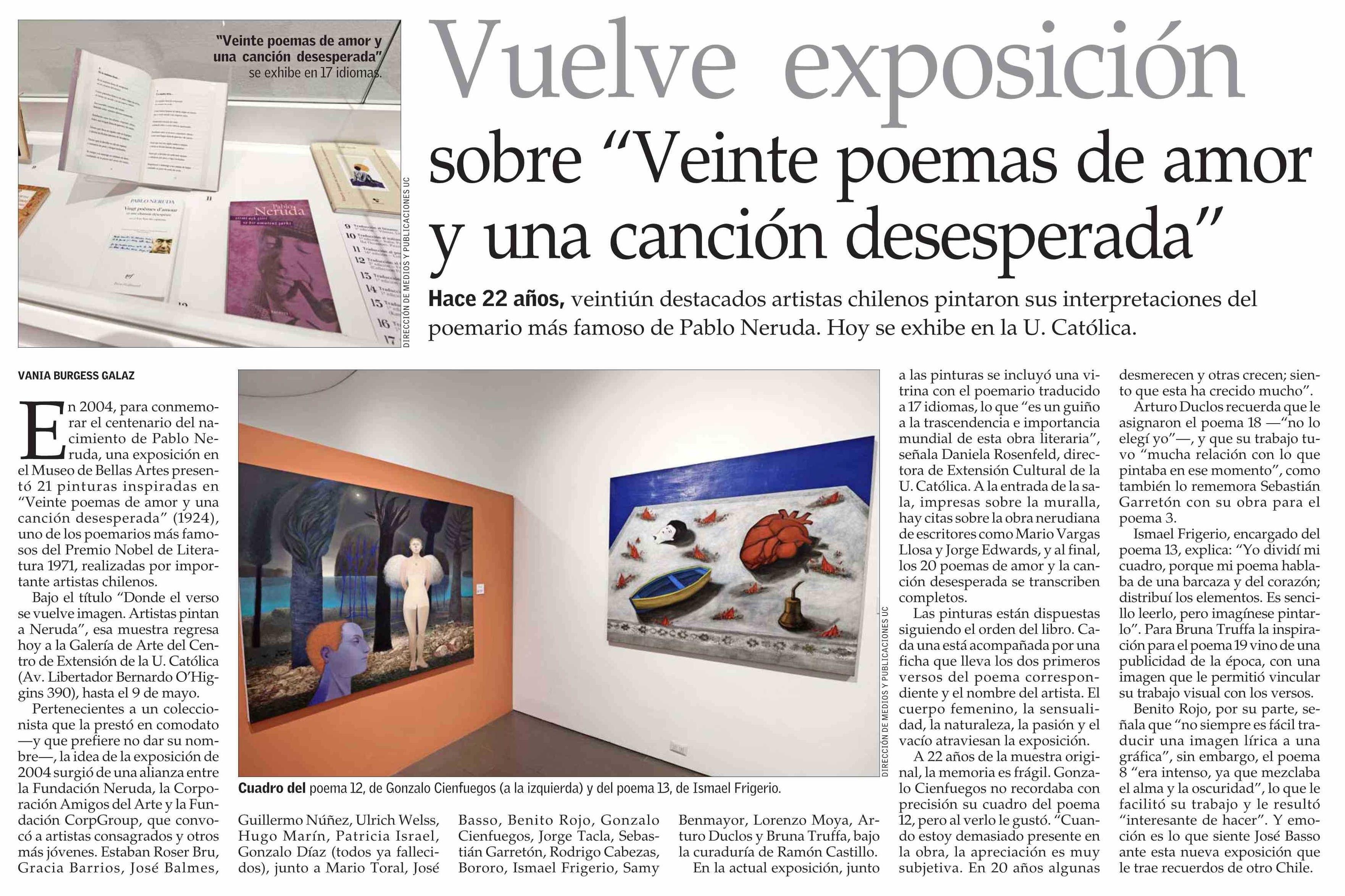 | Título: | Vuelve exposición sobre “Veinte poemas de amor y una canción desesperada” |