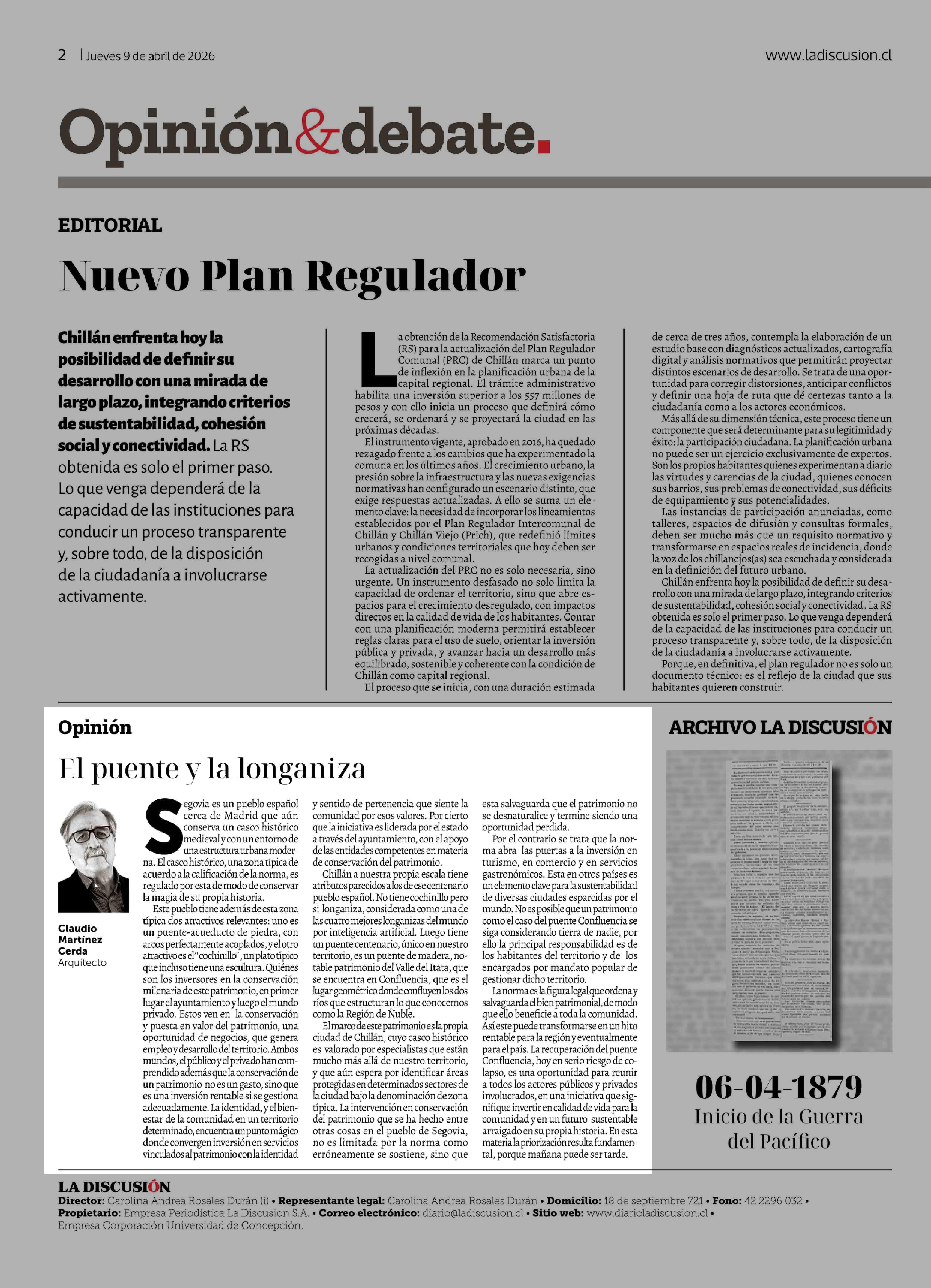 Fecha: 09-04-2026 Sector: Columnas de Opinión Región: Región del Ñuble