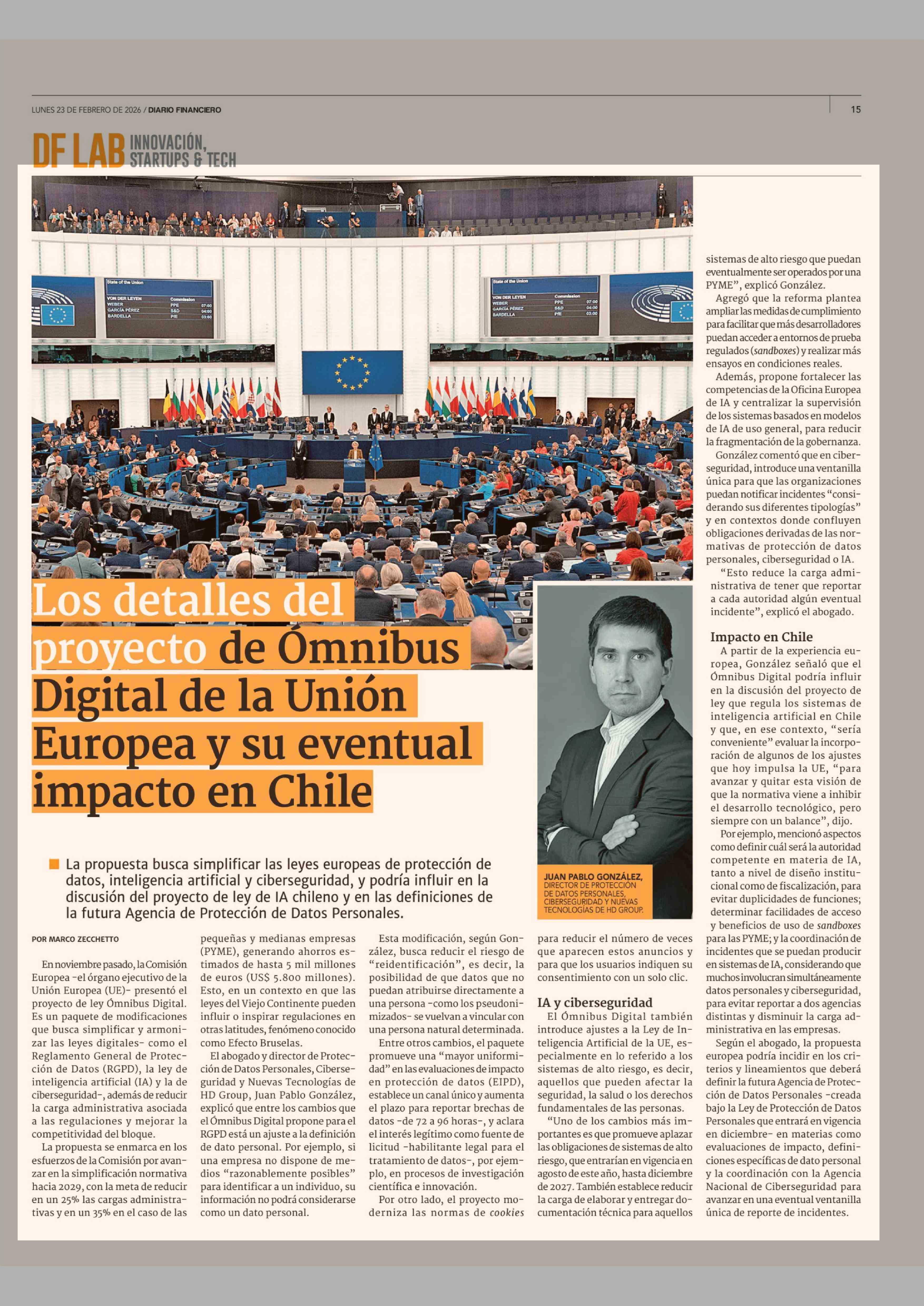 Los detalles del proyecto de Ómnibus Digital de la Unión Europea y su eventual impacto en Chile 23-02-2026 Diario Financiero |