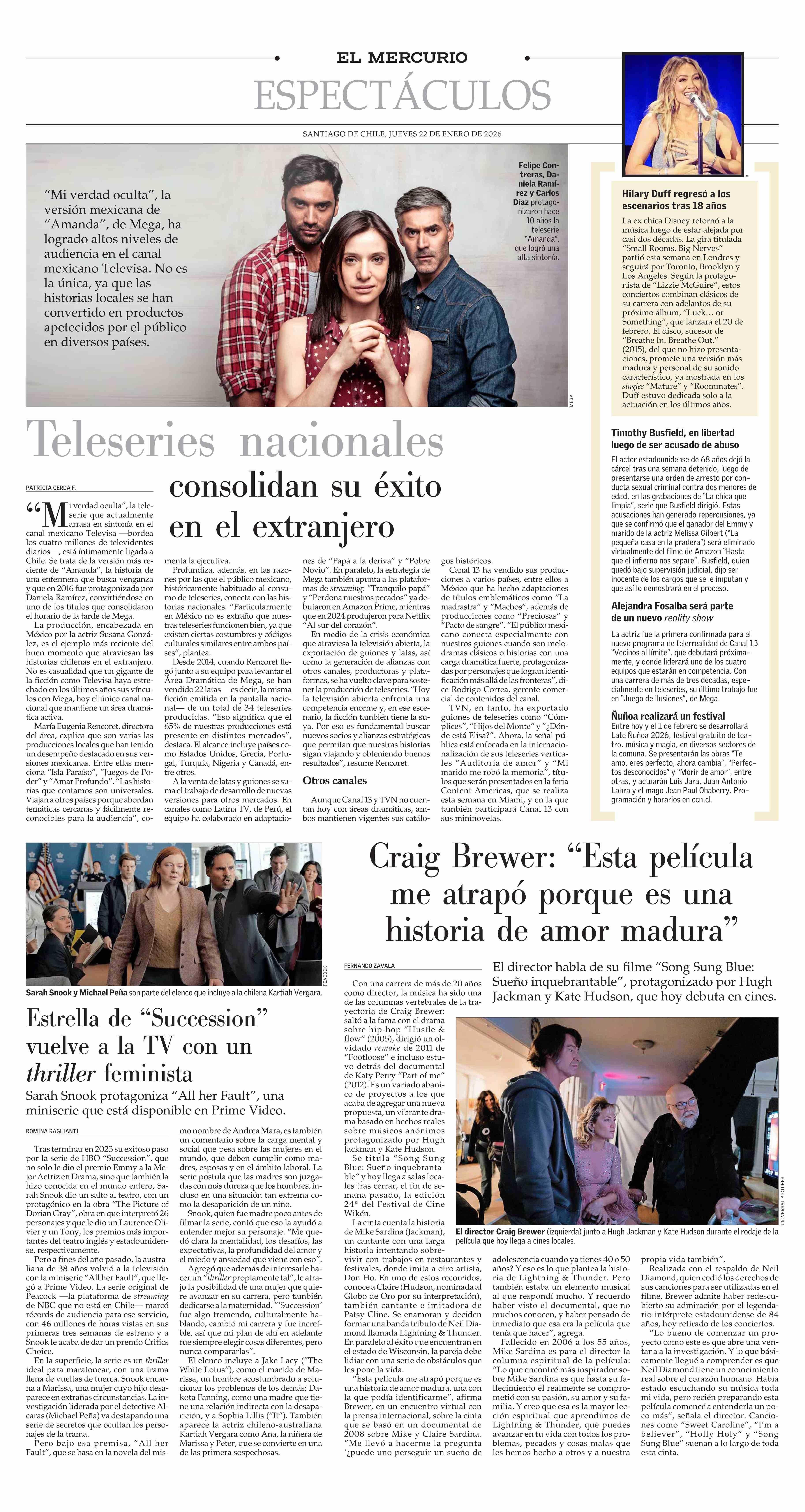 Teleseries nacionales consolidan su éxito en el extranjero 22-01-2026 El Mercurio |