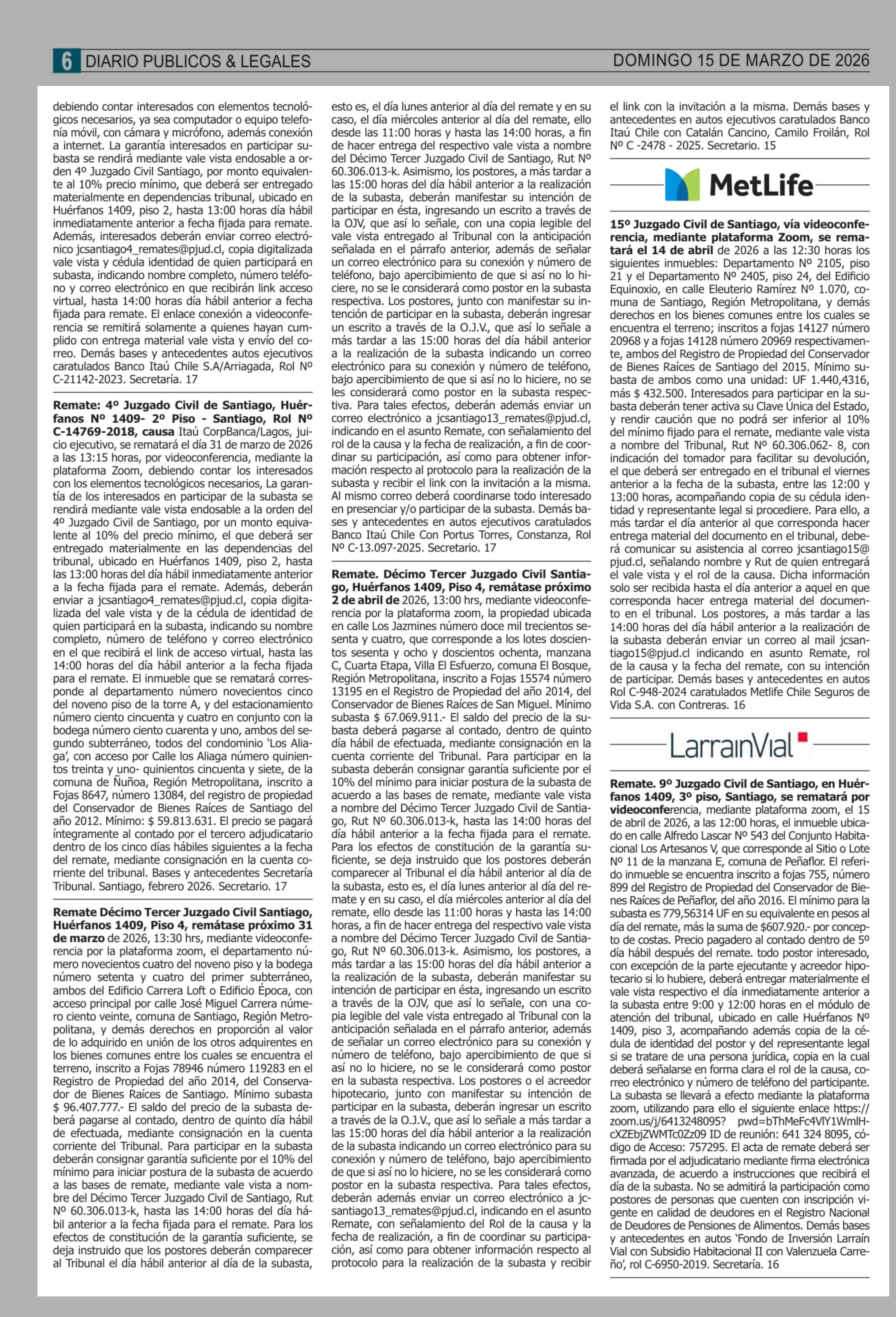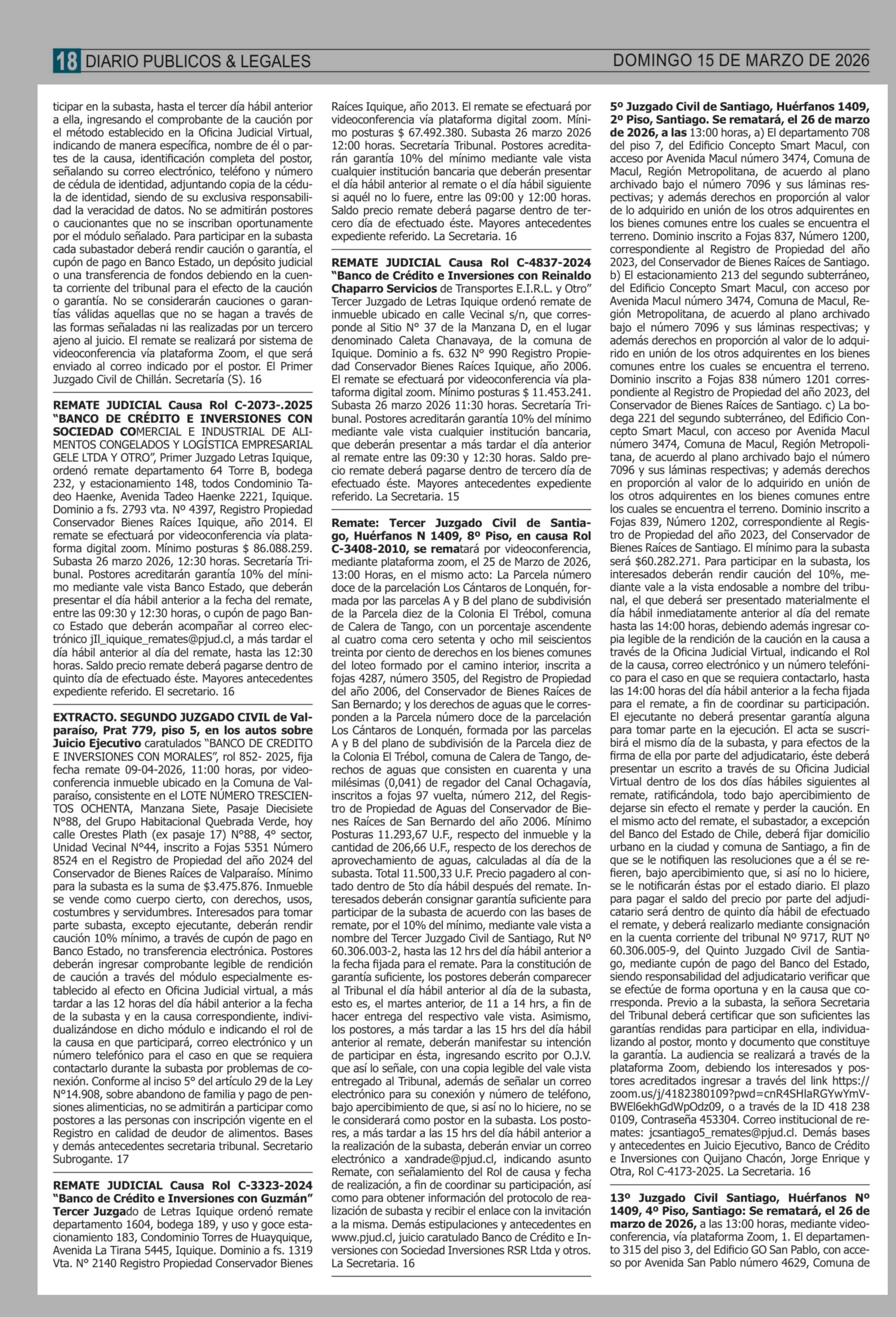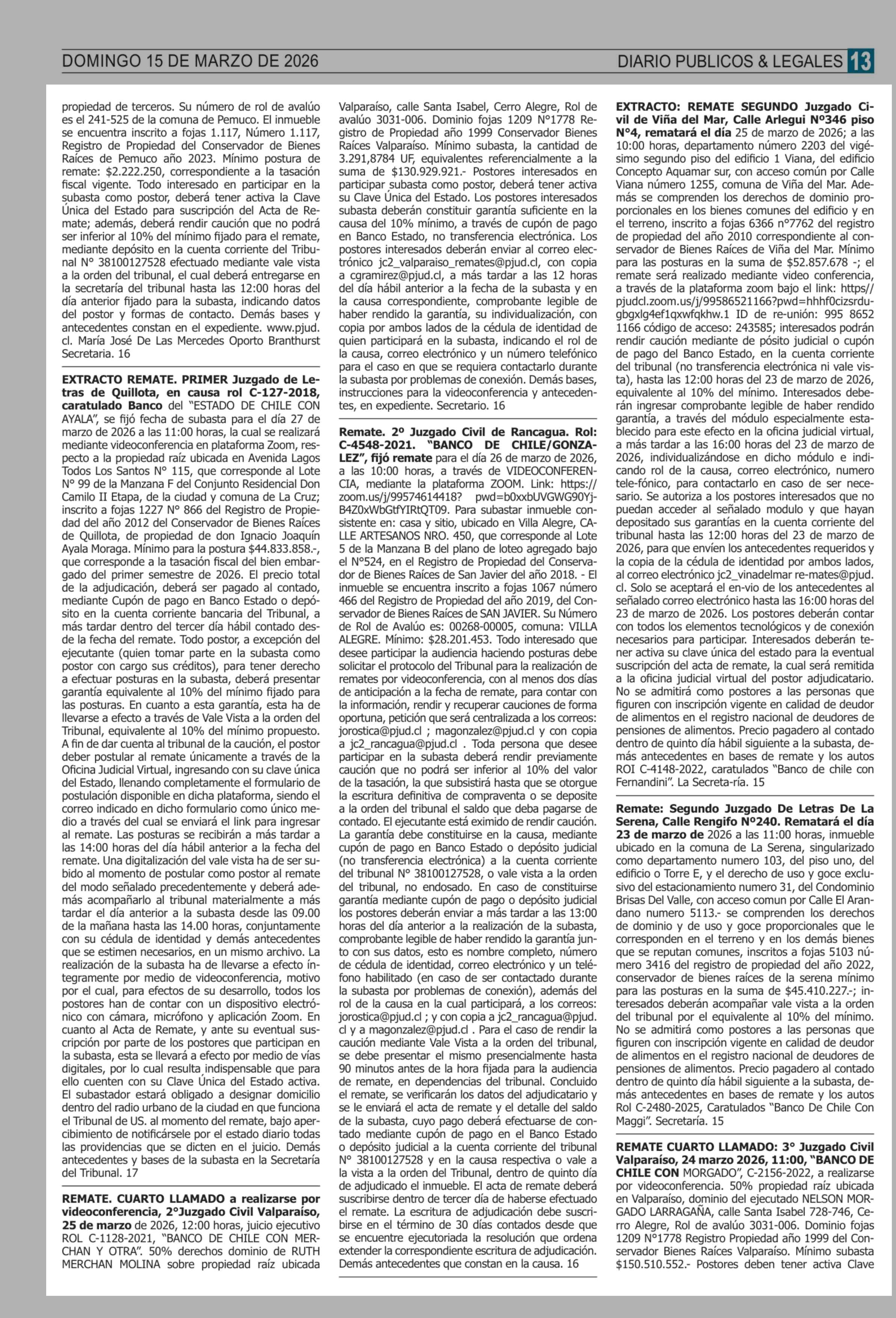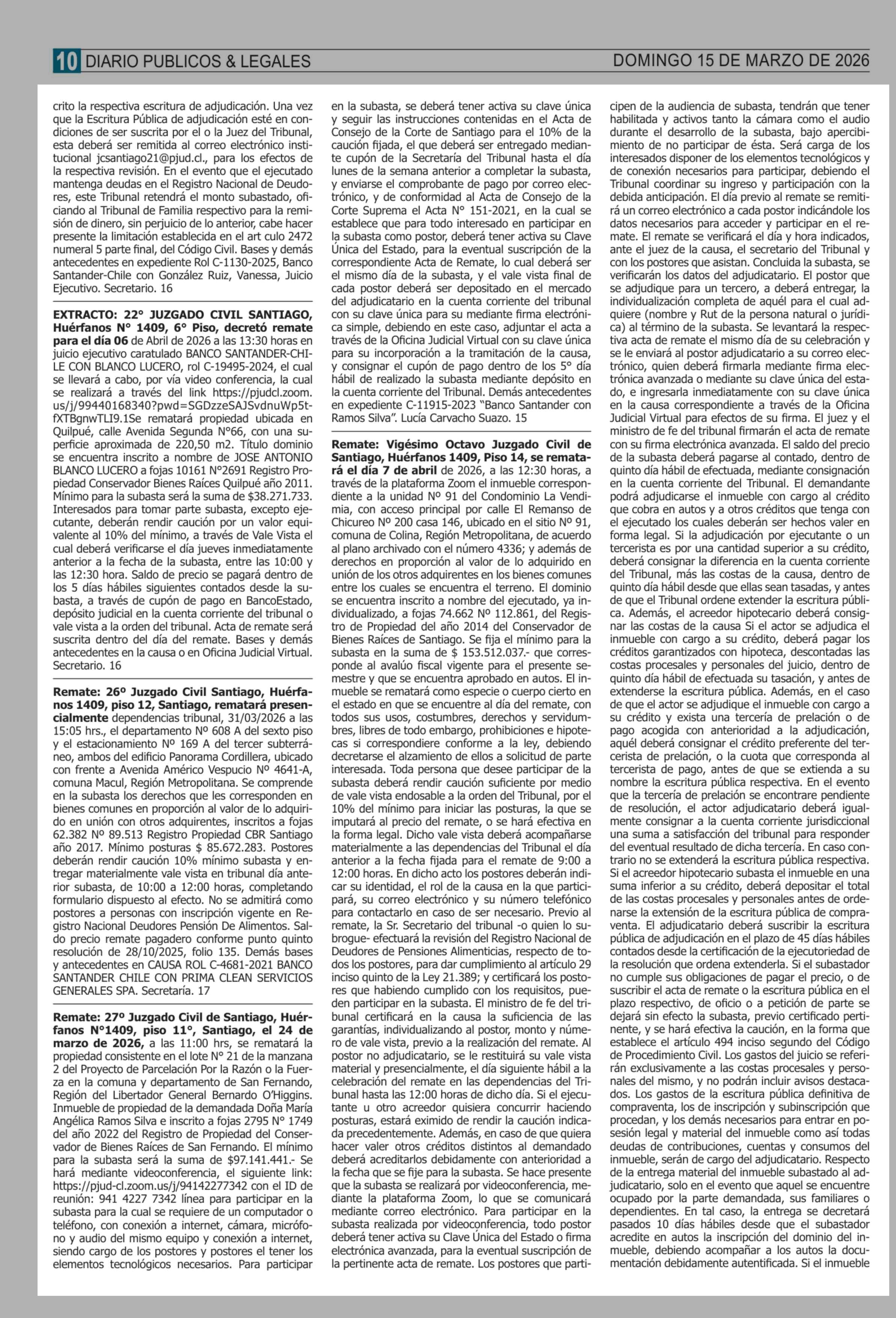 Remates: COMPENDIO REMATES de PROPIEDADES (NACIONAL) 15-03-2026 P&L Públicos y Legales |