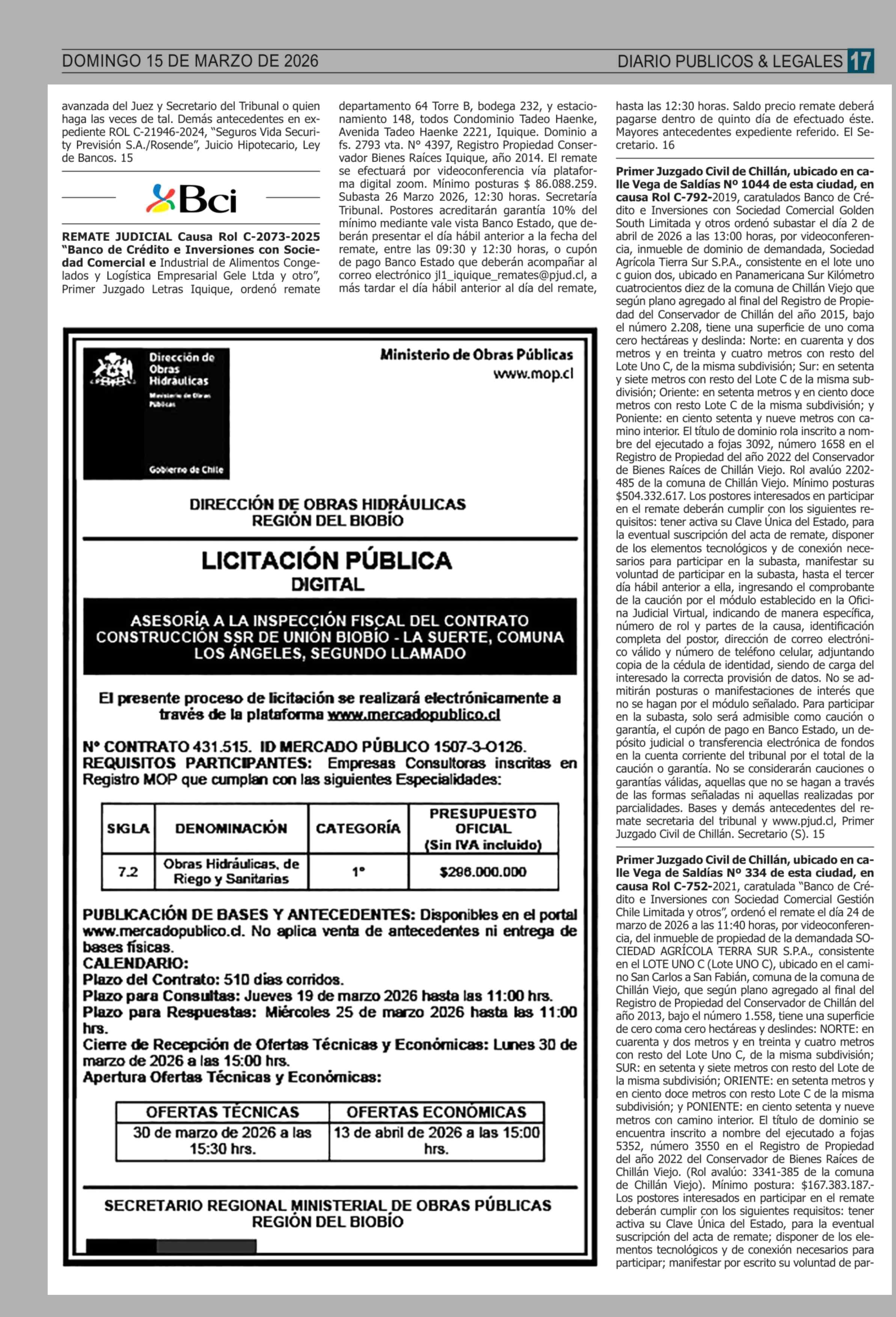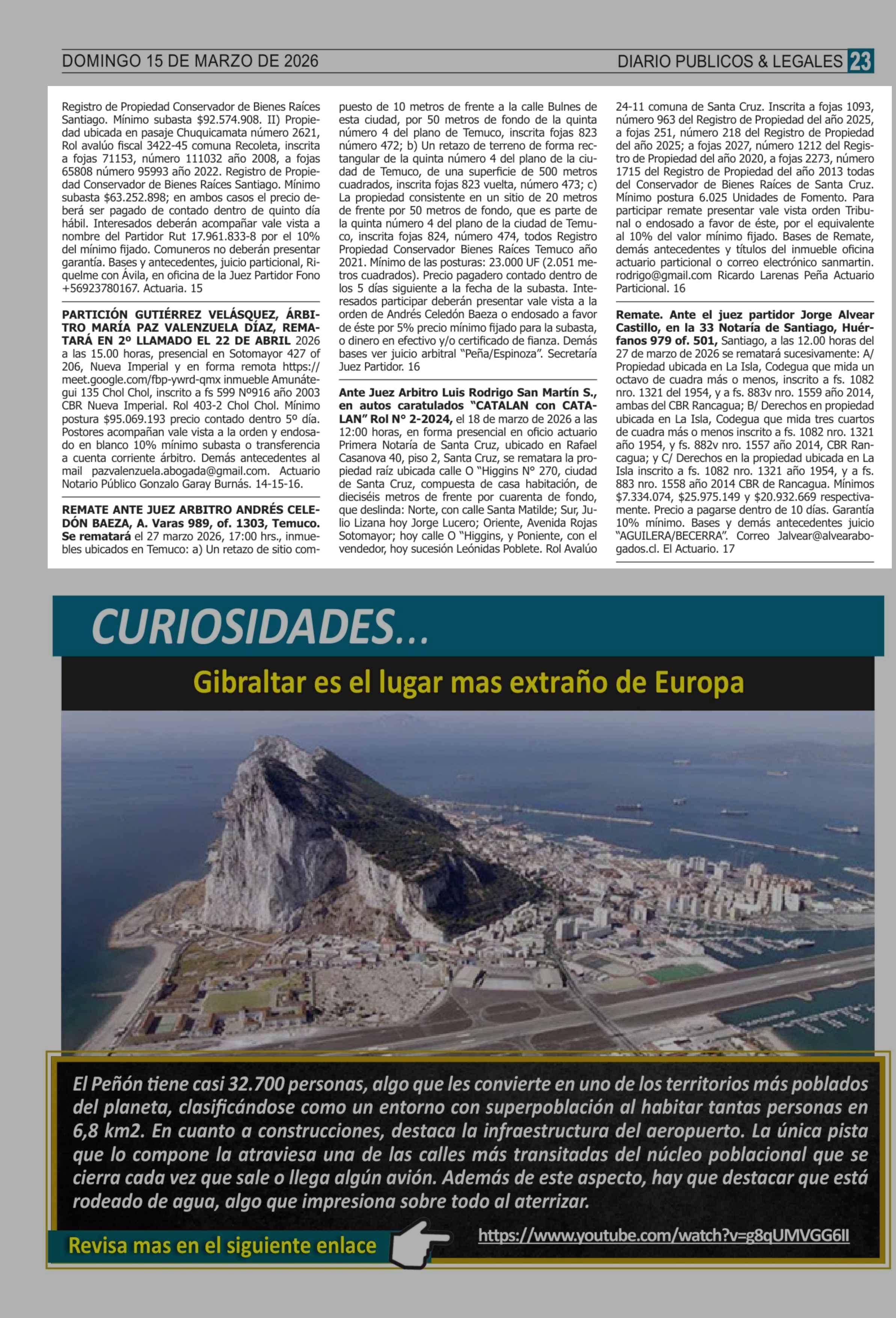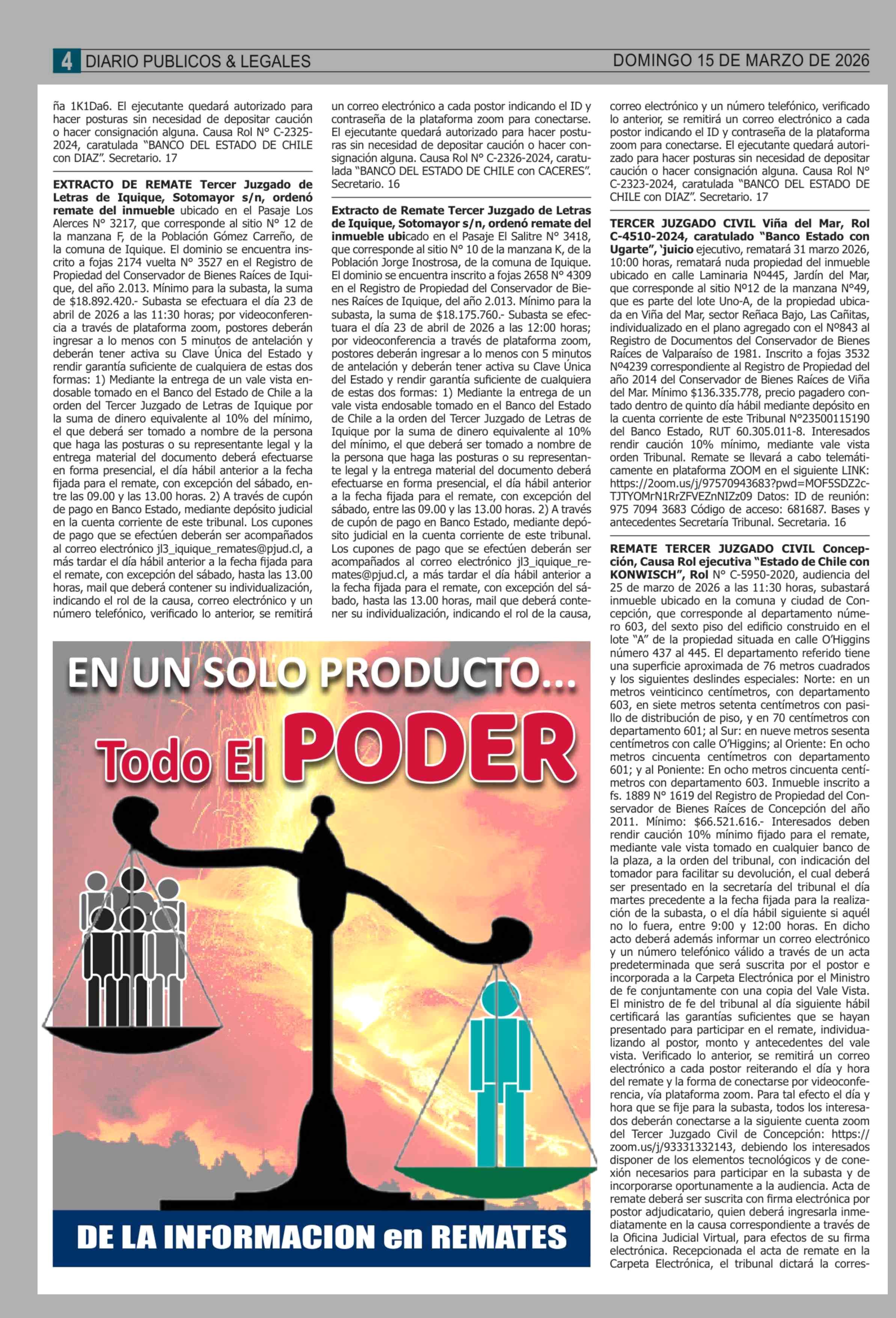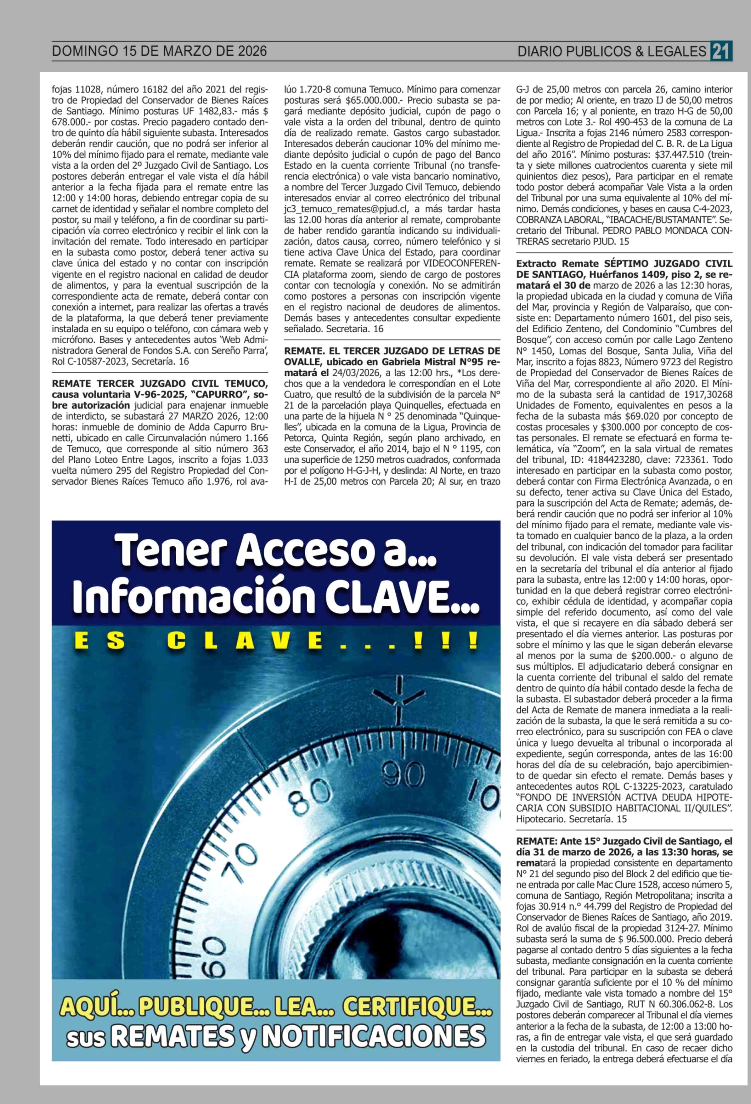 Remates: COMPENDIO REMATES de PROPIEDADES (NACIONAL) 15-03-2026 P&L Públicos y Legales |