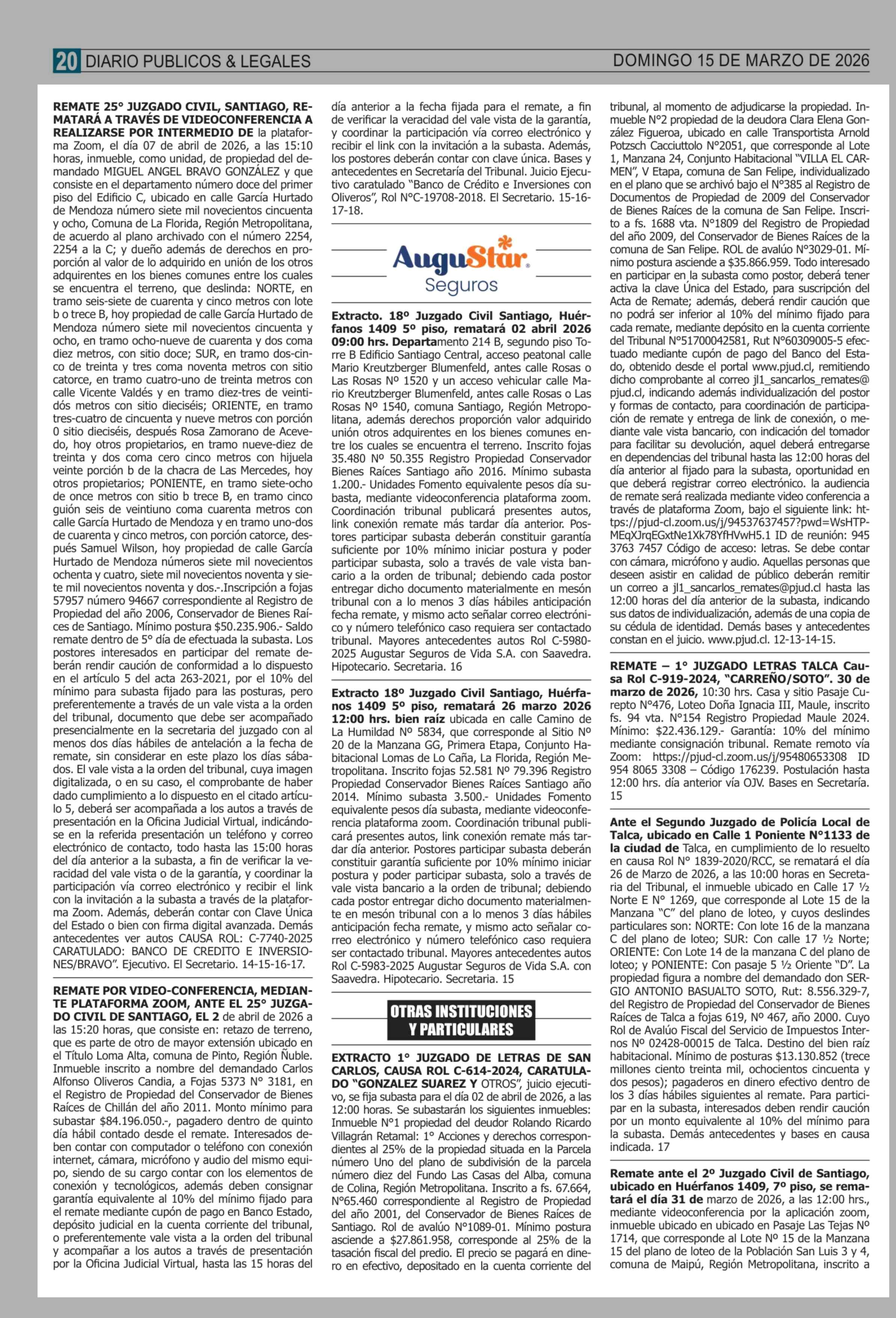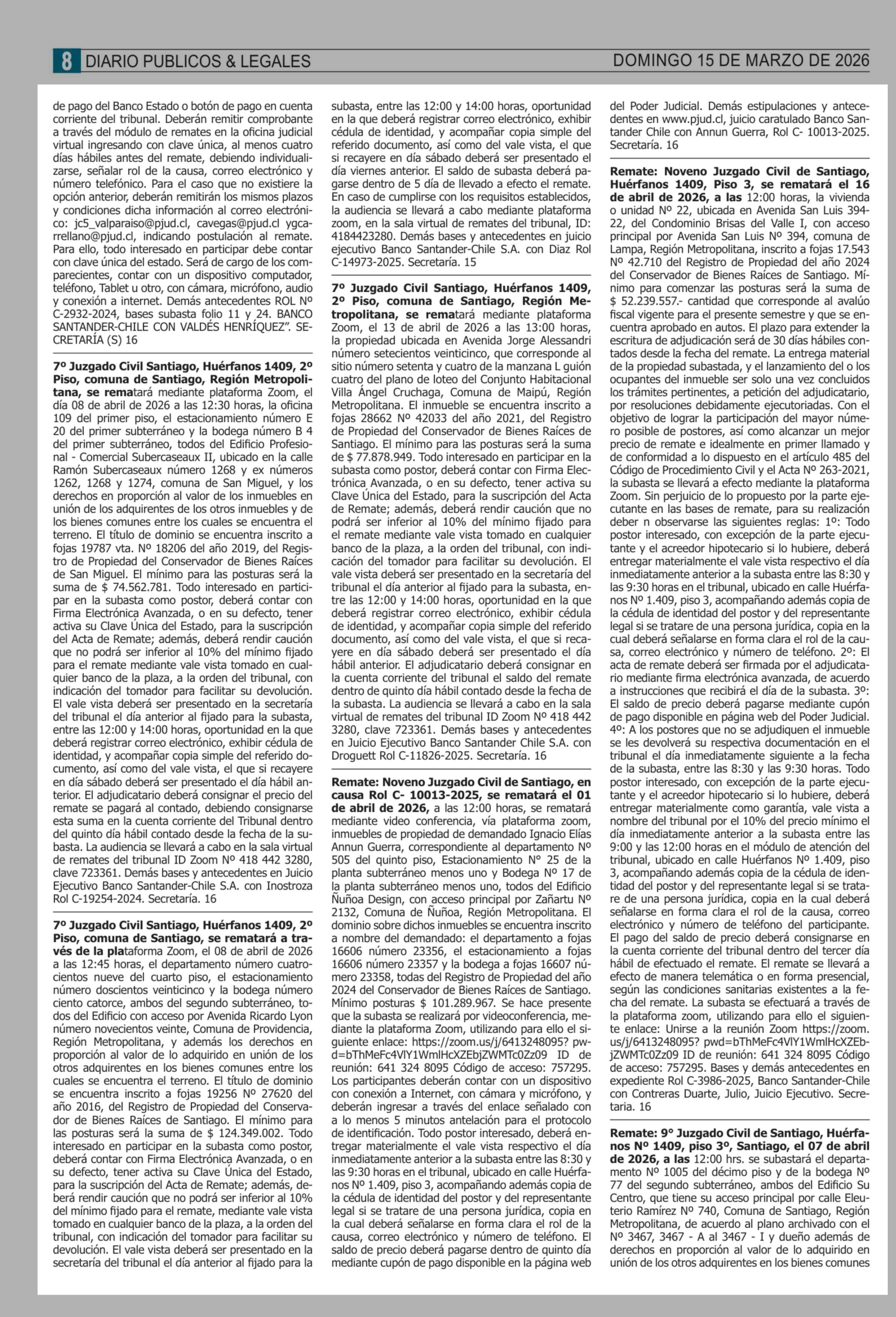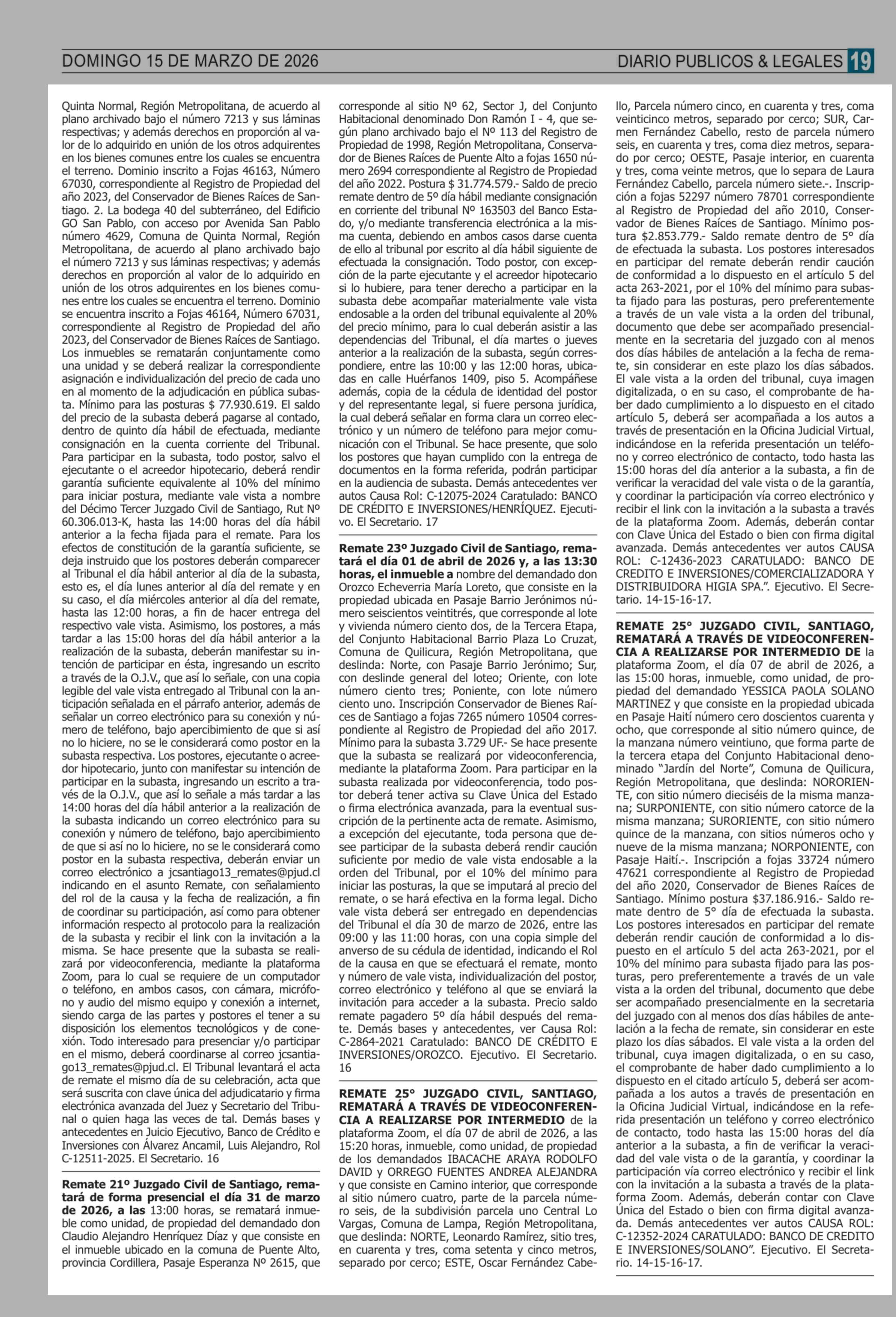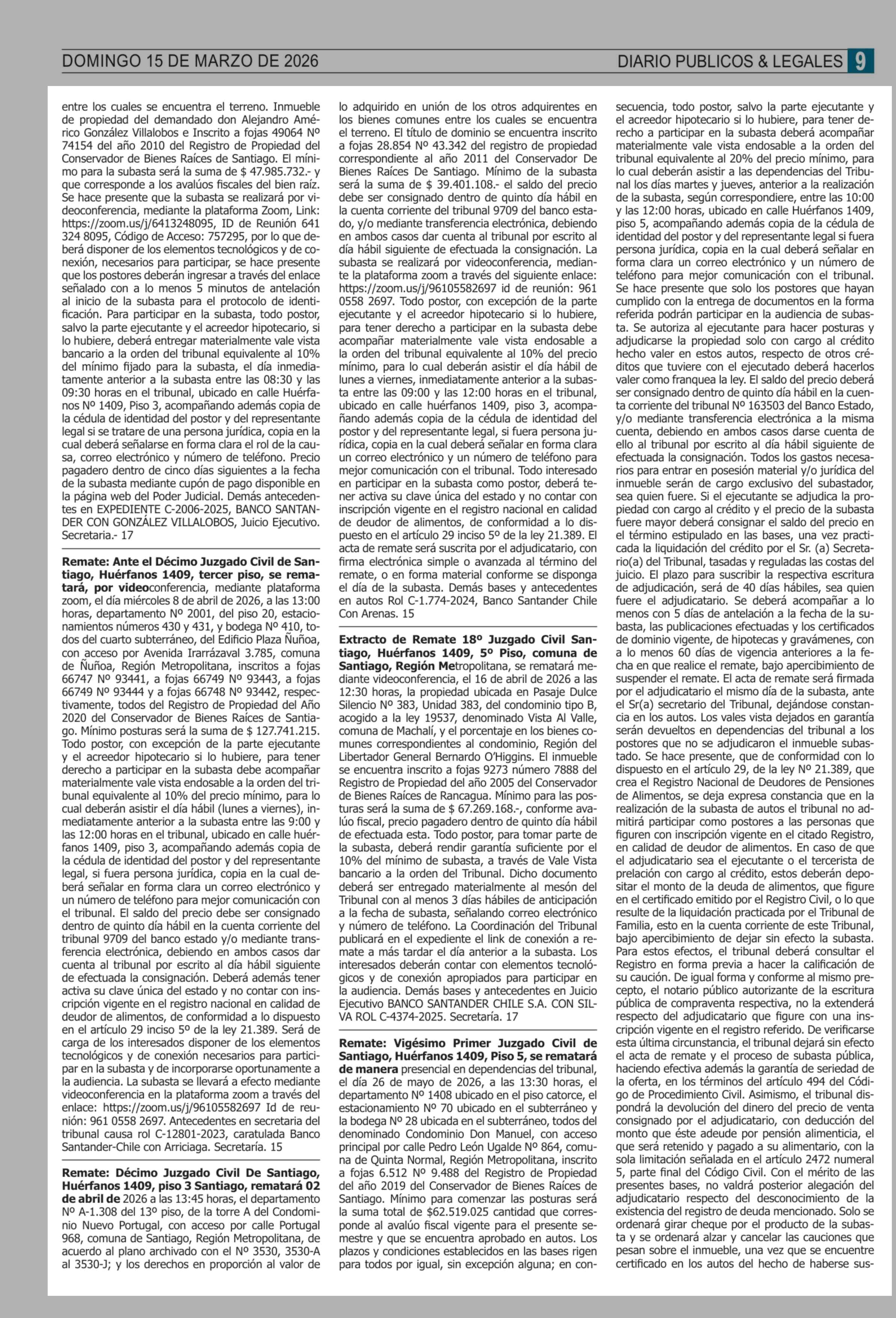 | Fecha: | 15-03-2026 | Sector: | Remates | Región: | Región Metropolitana de Santiago |