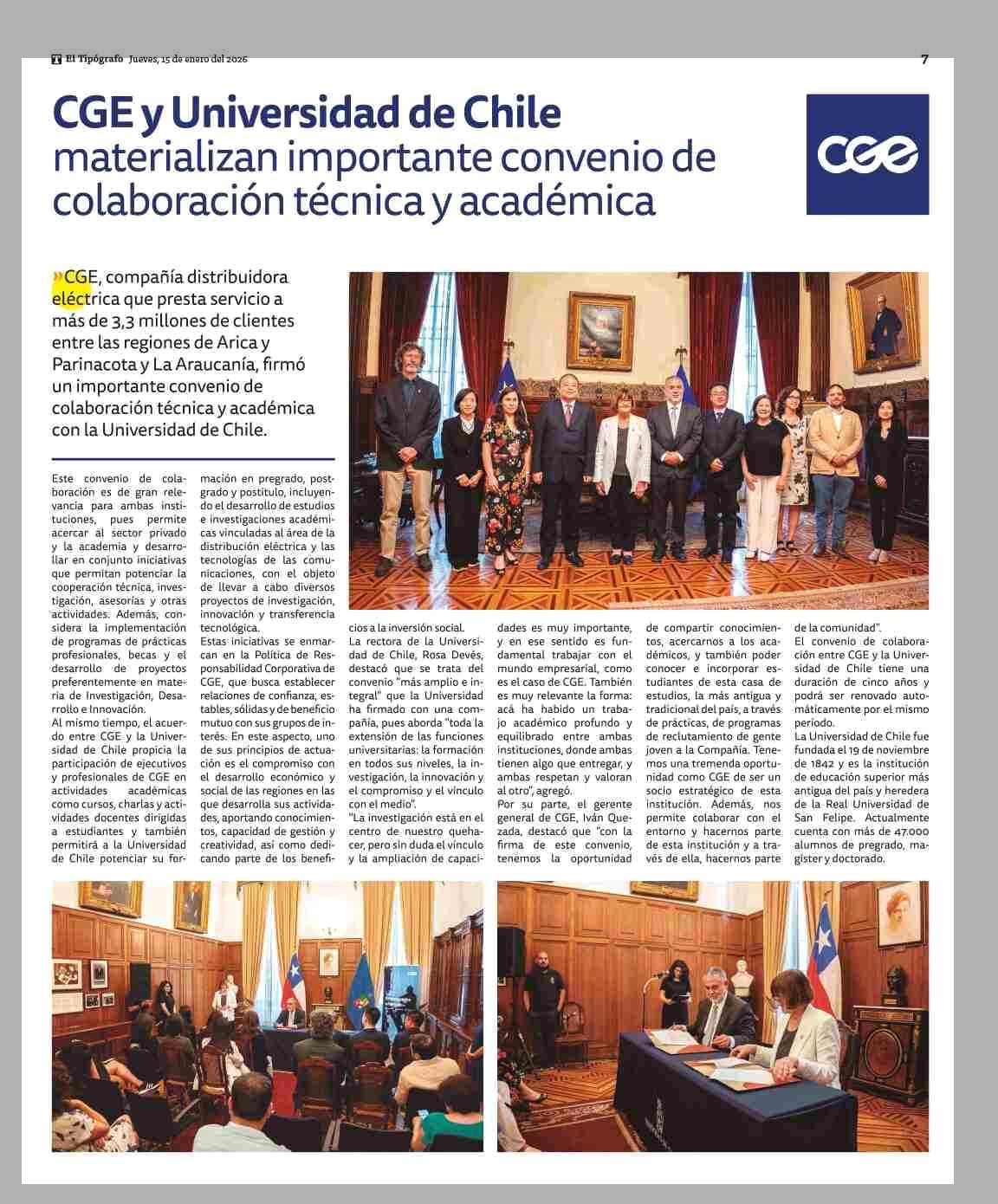 Título: CGE y Universidad de Chile materializan importante convenio de colaboración técnica y académica