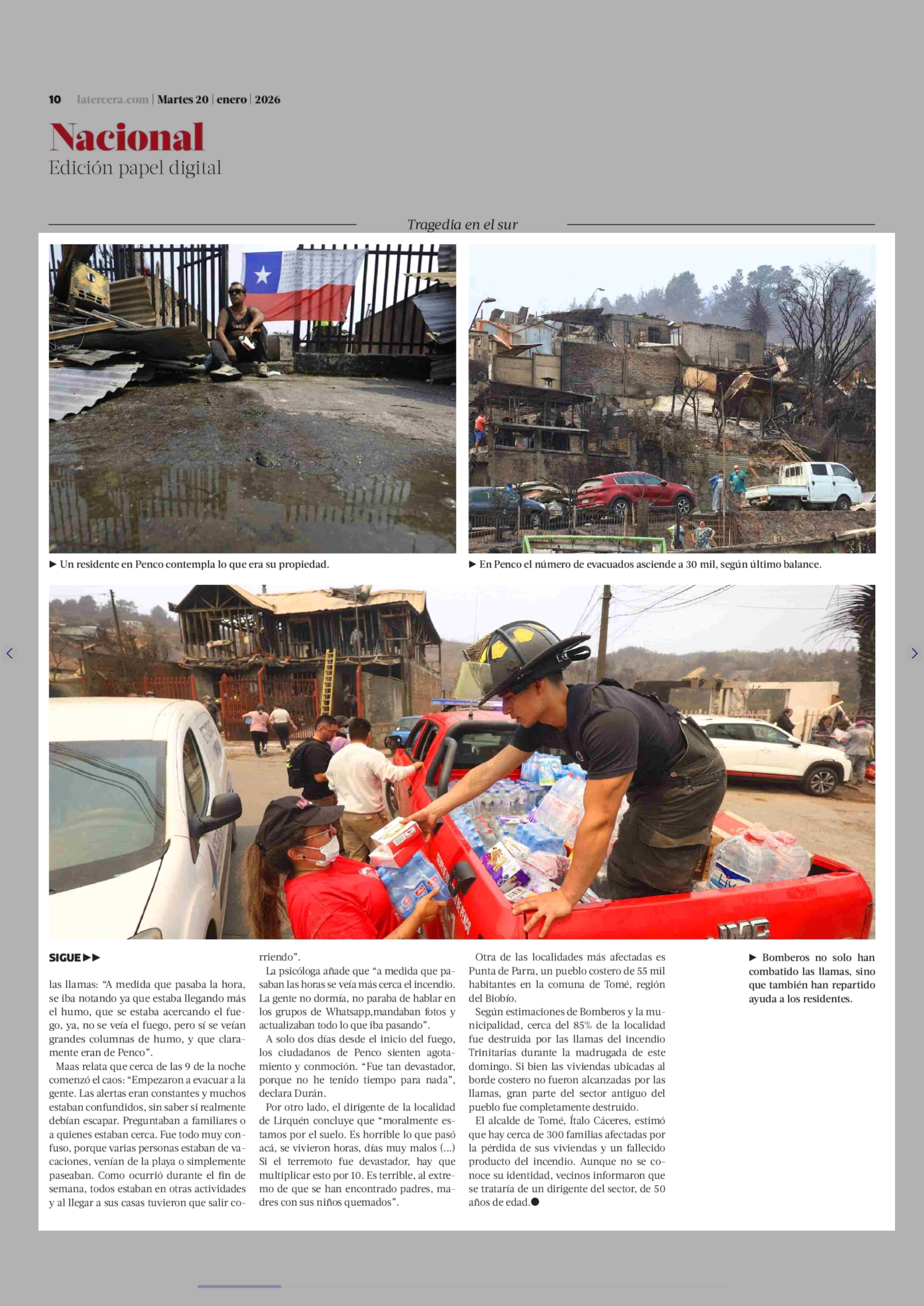 Lirquén, zona cero de los incendios: el golpe mortal de "Trinitarias" 20-01-2026 La Tercera |