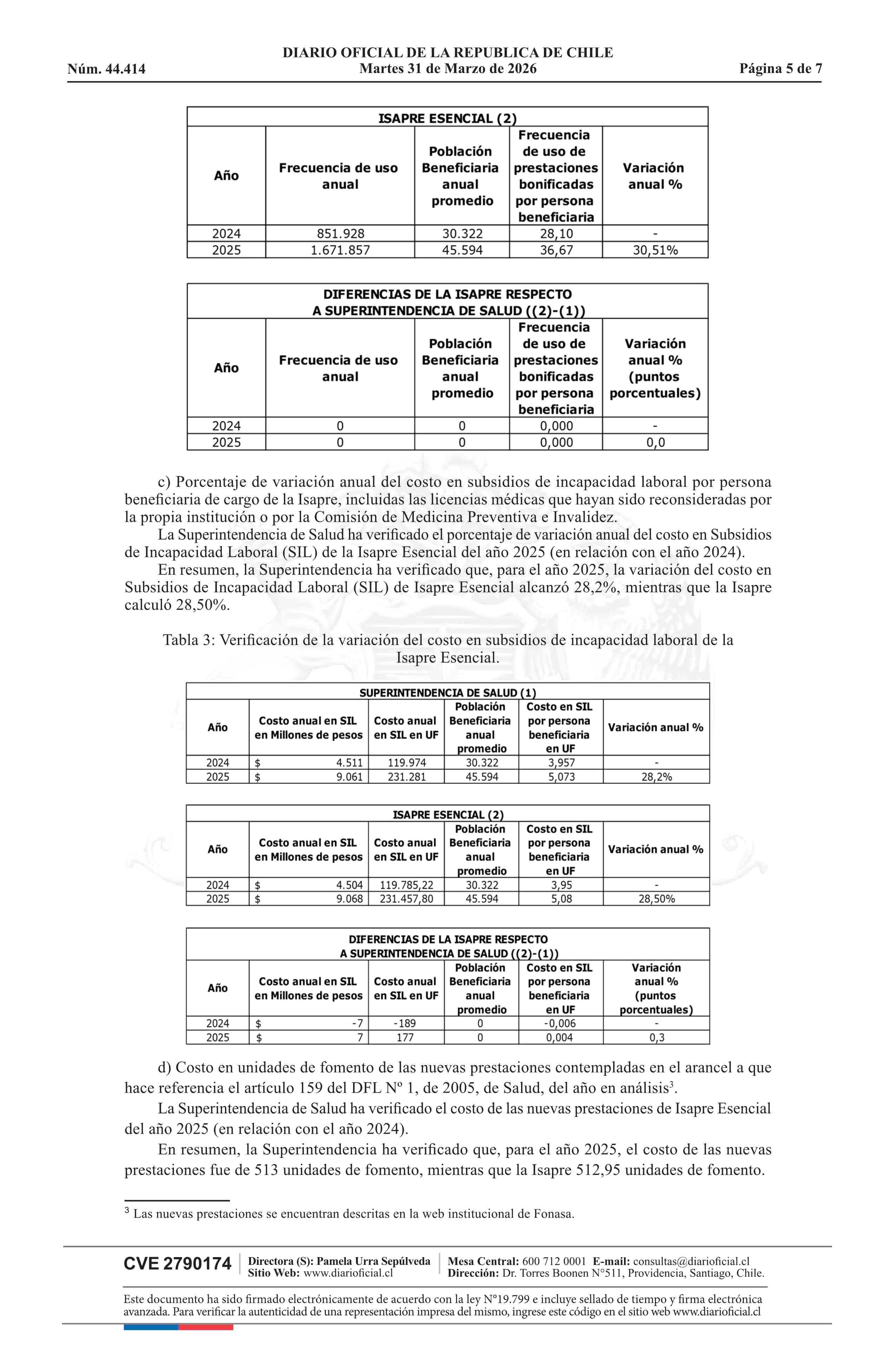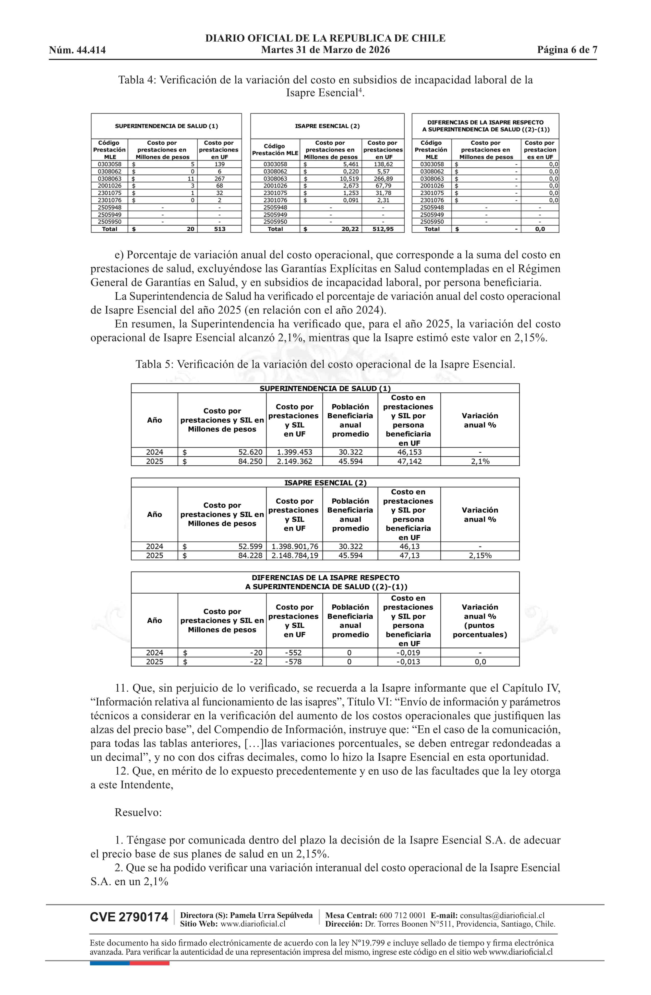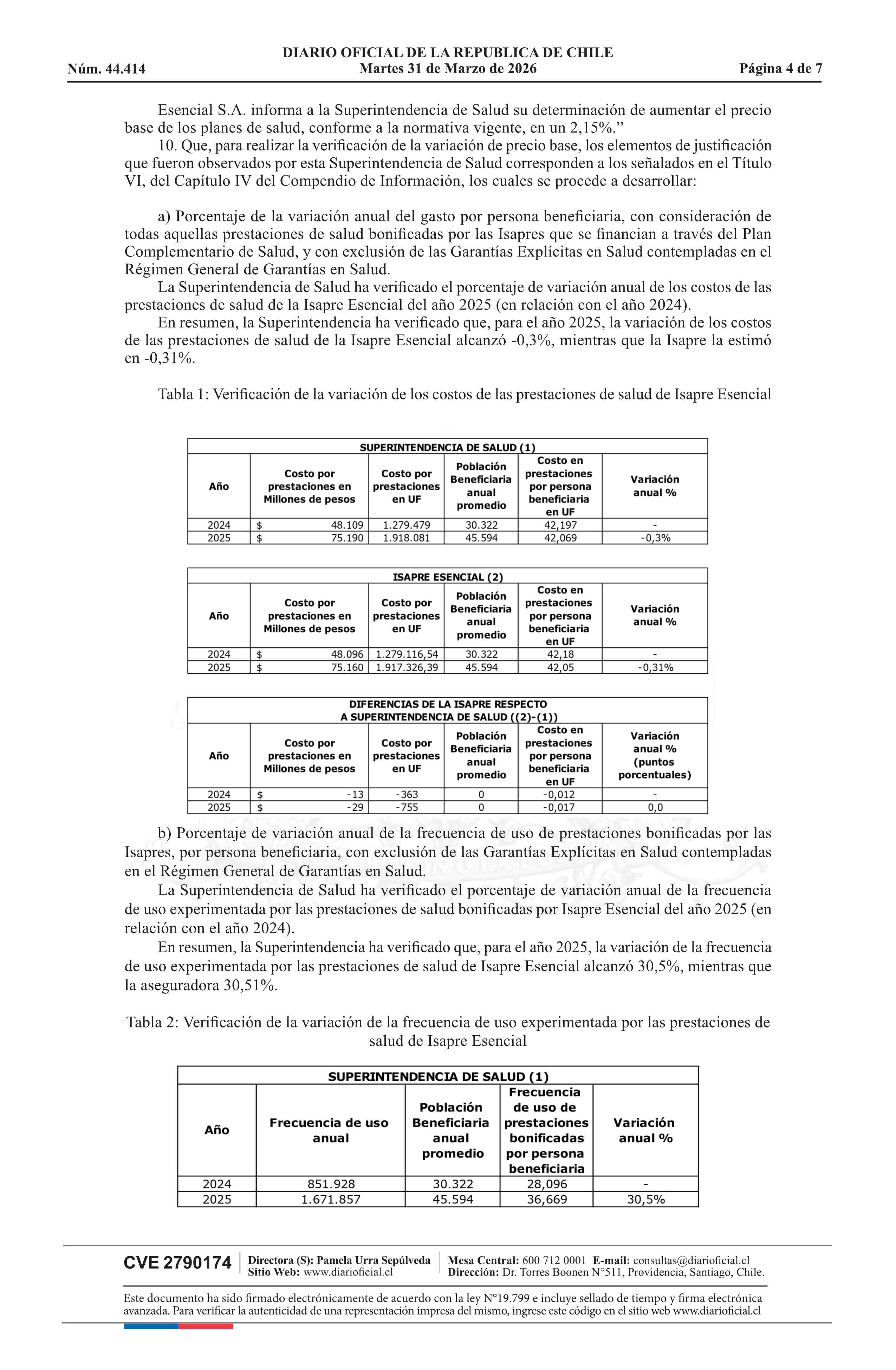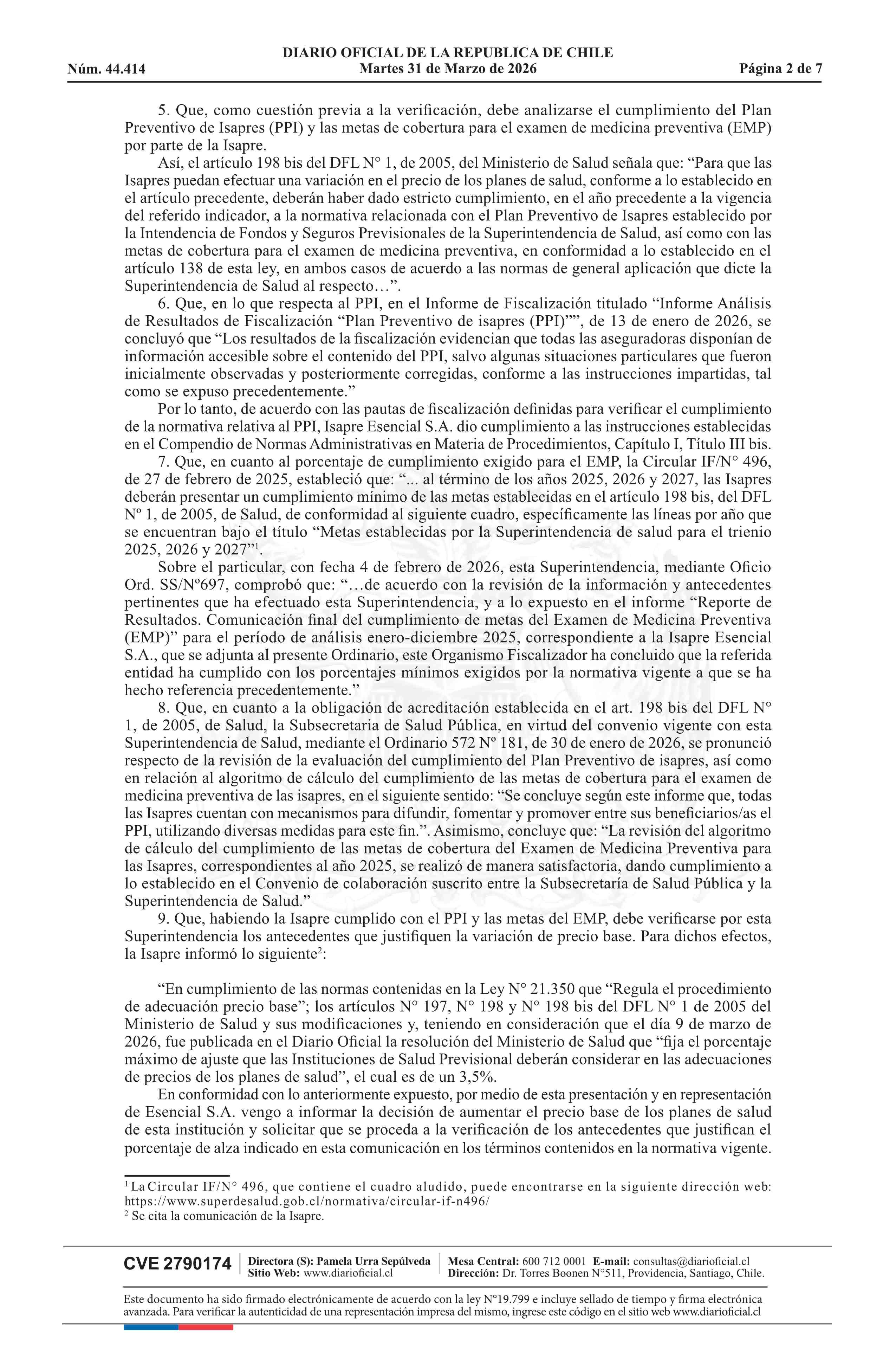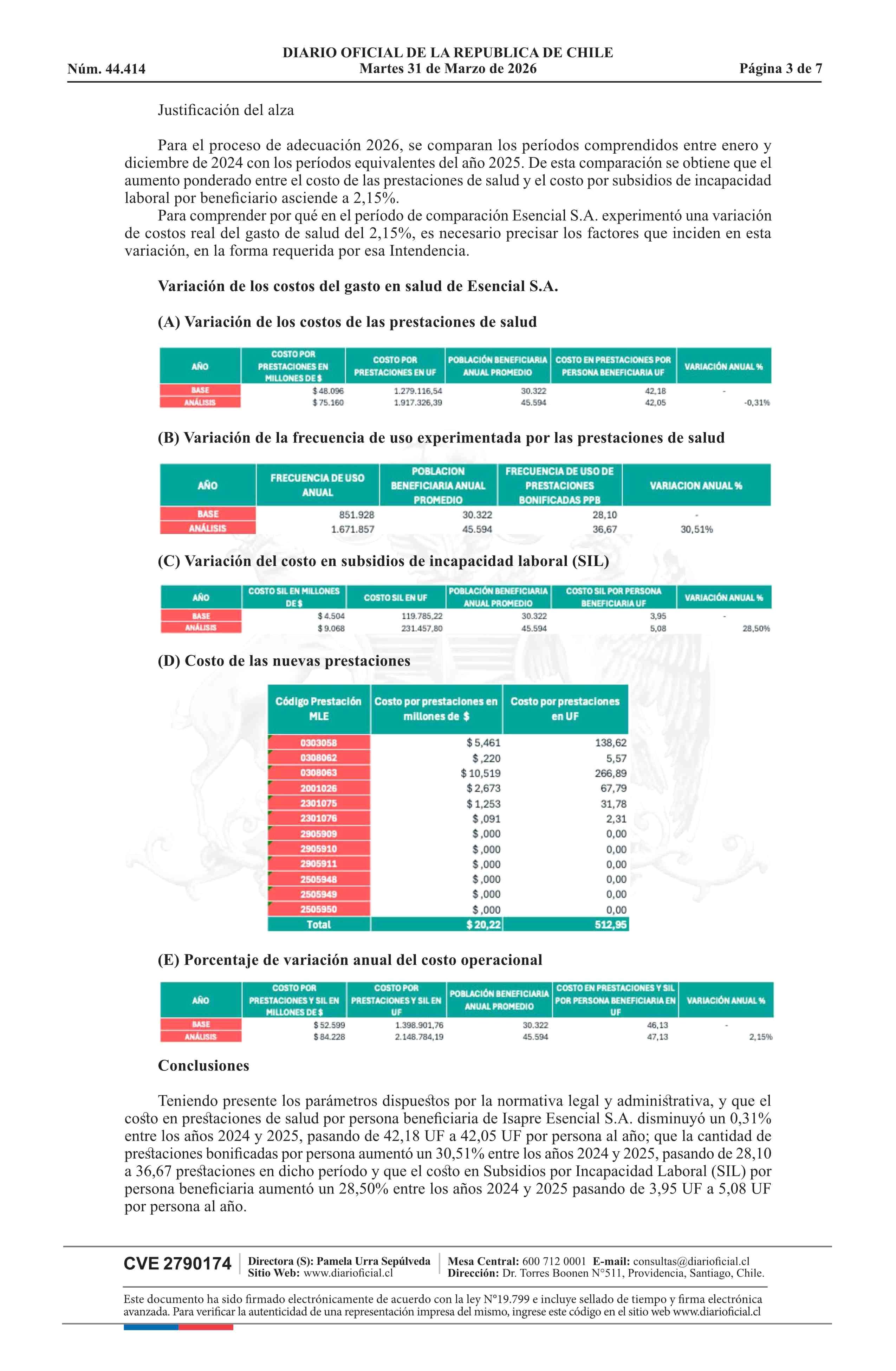 Resolución exenta número IF 3.162, de 2026.- Autoriza el ajuste de los precios base de los planes de salud de la Isapre Esencial S.A. 31-03-2026 Diario Oficial Edición Electrónica |