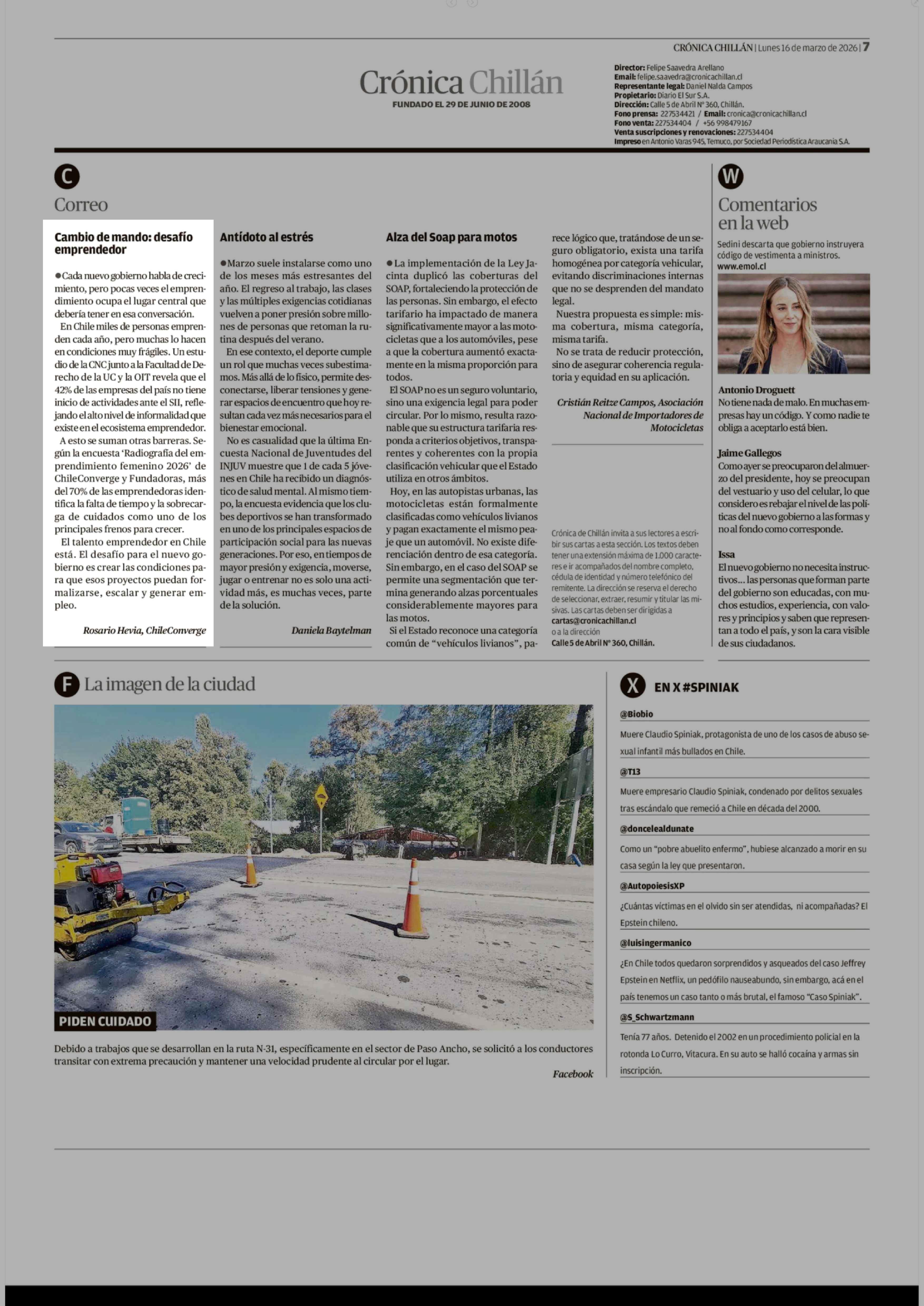 Fecha: 16-03-2026 Sector: Cartas Región: Región del Ñuble