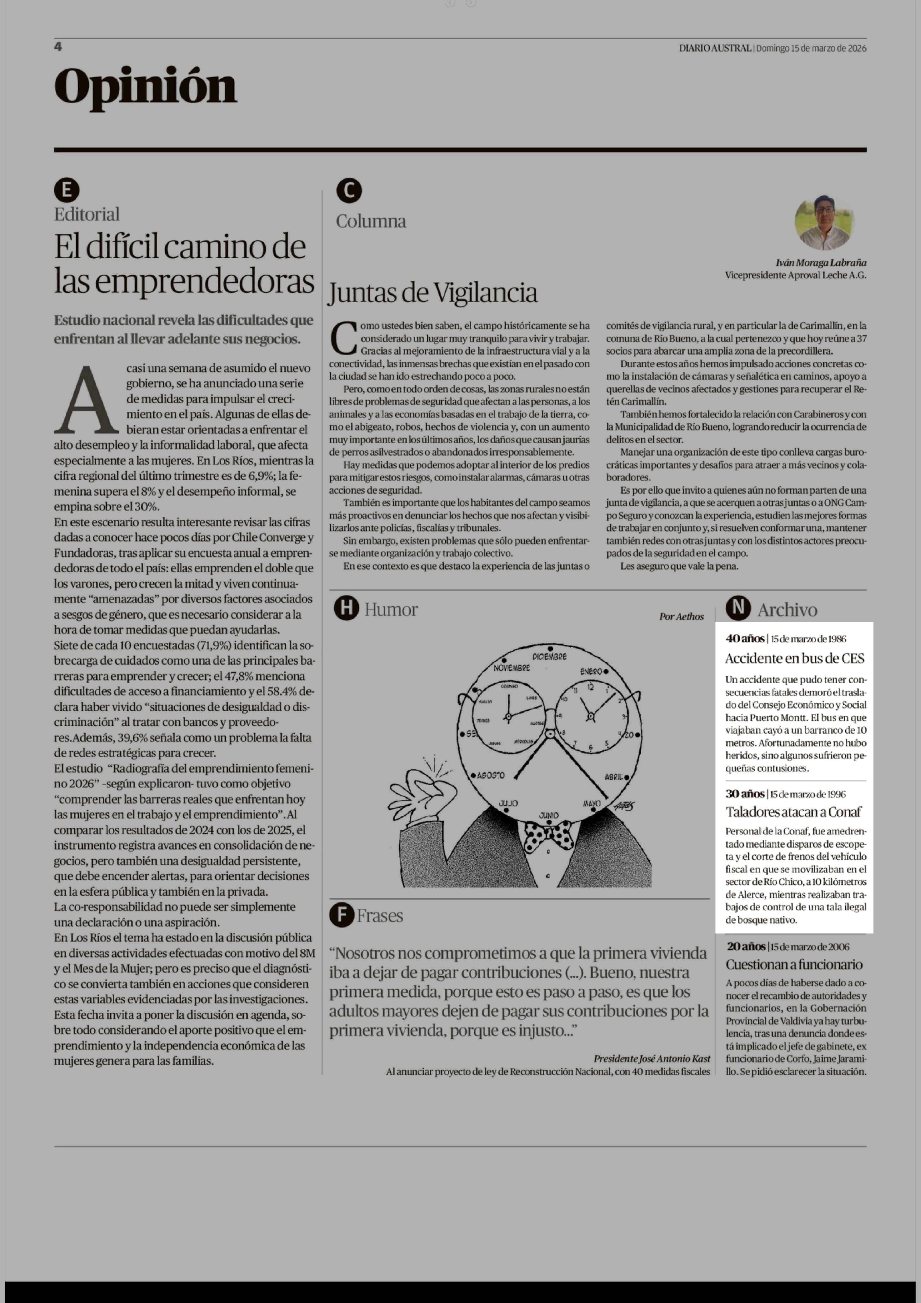 | Fecha: | 15-03-2026 | Sector: | Noticia general | Región: | Región de Los Ríos |