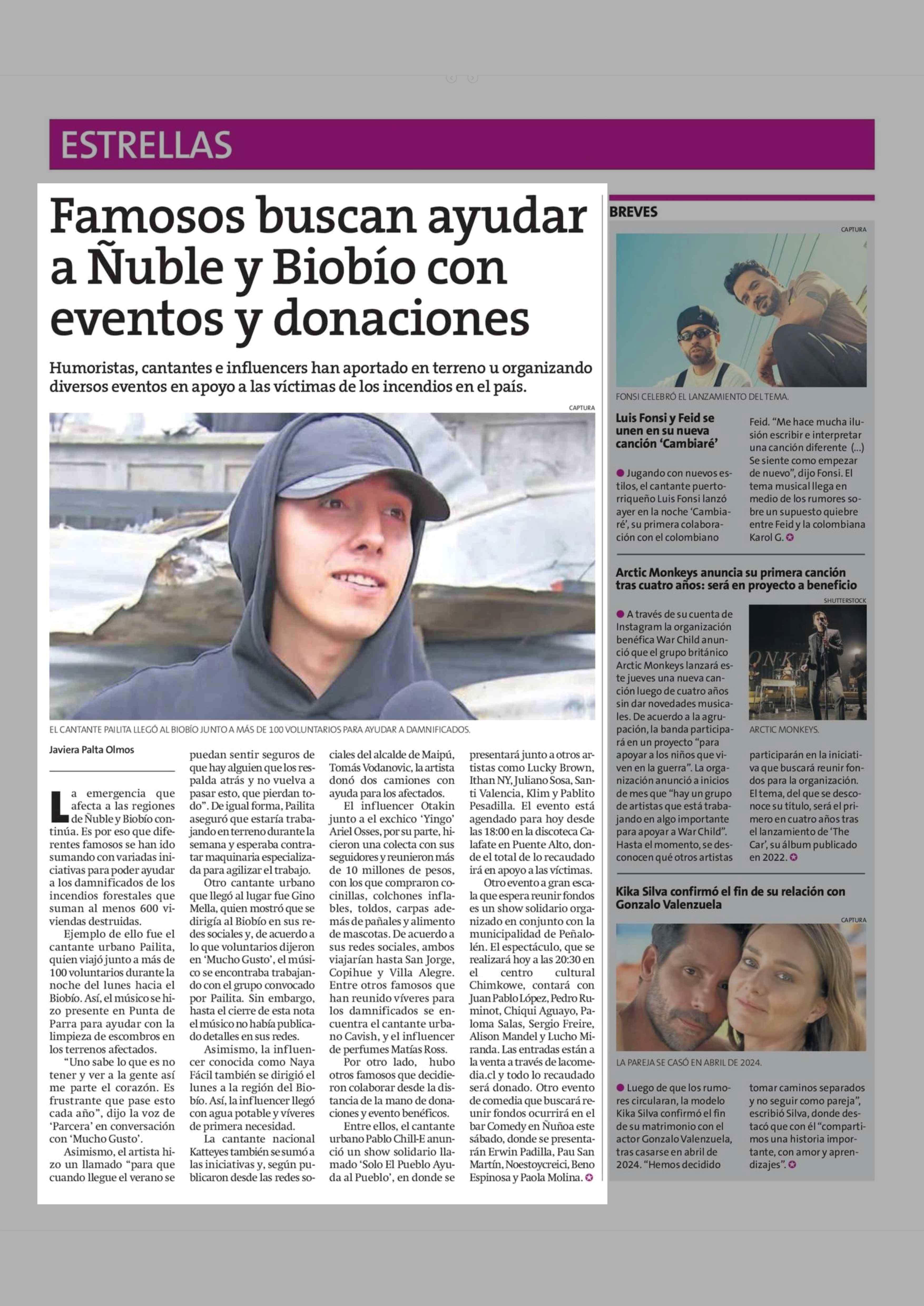 Famosos buscan ayudar a Ñuble y Biobio con eventos y donaciones 21-01-2026 La Estrella de Antofagasta |