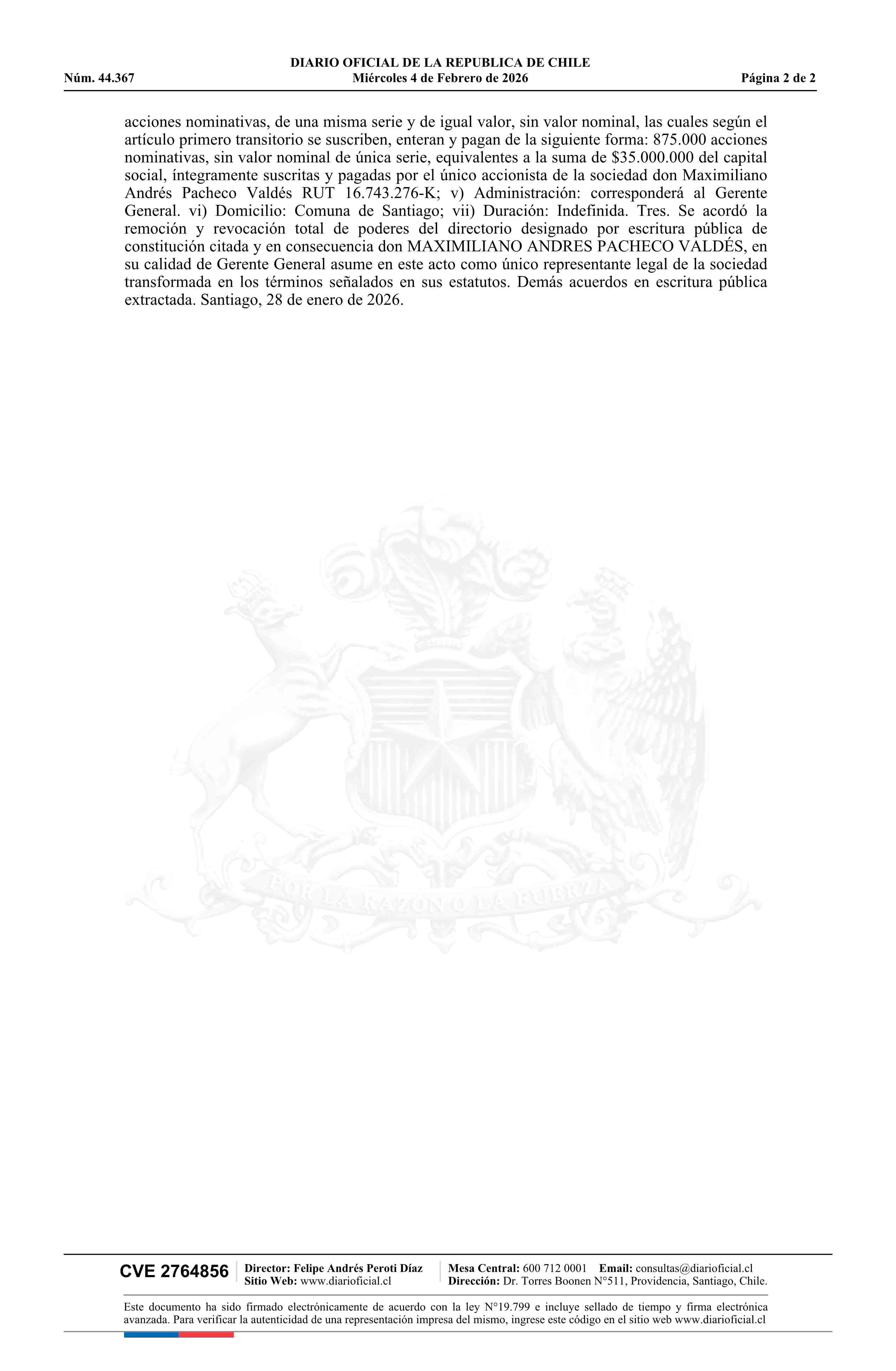 Compañía de Administradora Hermanos Valdés y Valdés S.A. 76.930.648-K* 04-02-2026 Diario Oficial Edición Electrónica |