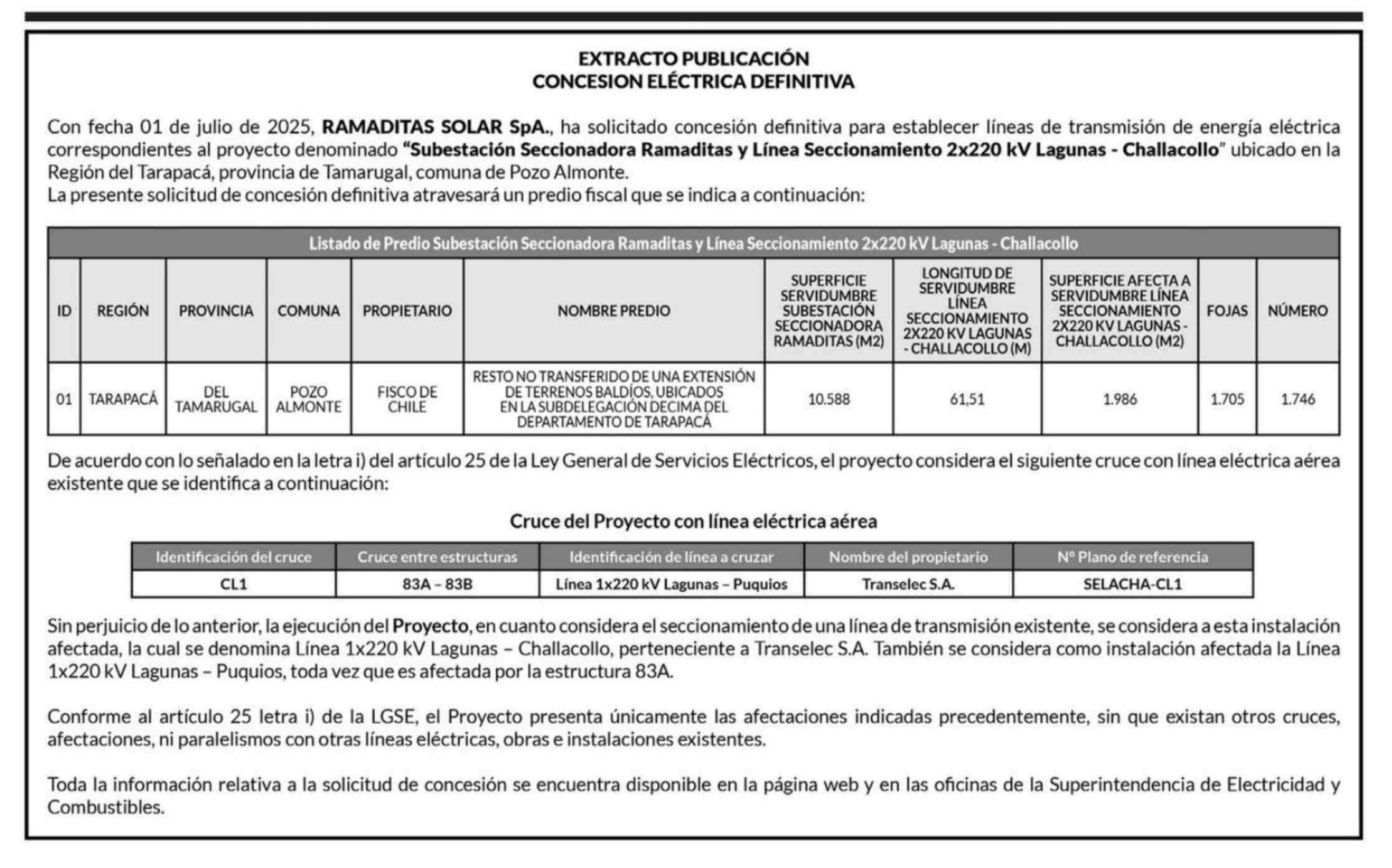 Extractos: EXTRACTO PUBLICACIÓN CONCESION ELÉCTRICA DEFINITIVA